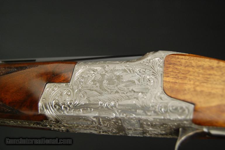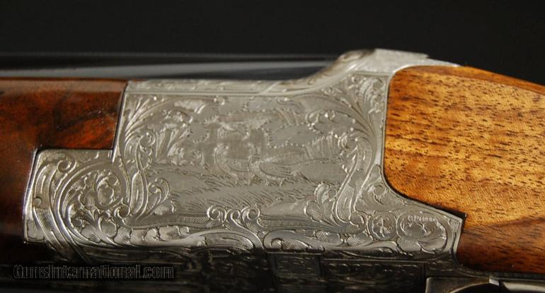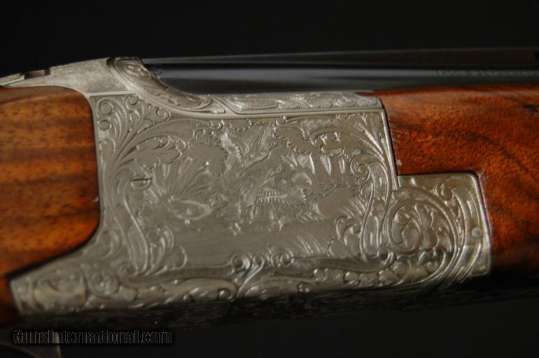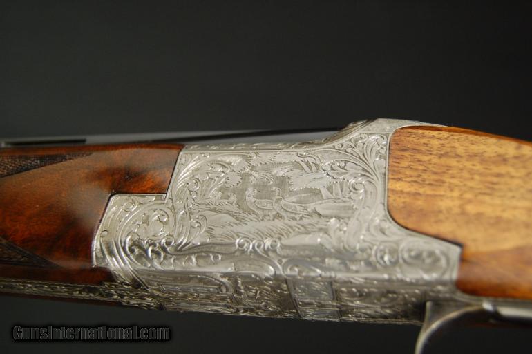 Browning - Diana, 28ga., 30" barrels, IC/IM choked, factory special order, round knob pistol grip stock, Long tang trigger guard, factory Browning butt plate, stunning marble cake French walnut, special order oil with English teardrops, engraved by the Master Perfido, 100% Belgian custom shop gun that is new, unfired in original case, the very highest quality workmanship, priced far below cost of new gun.