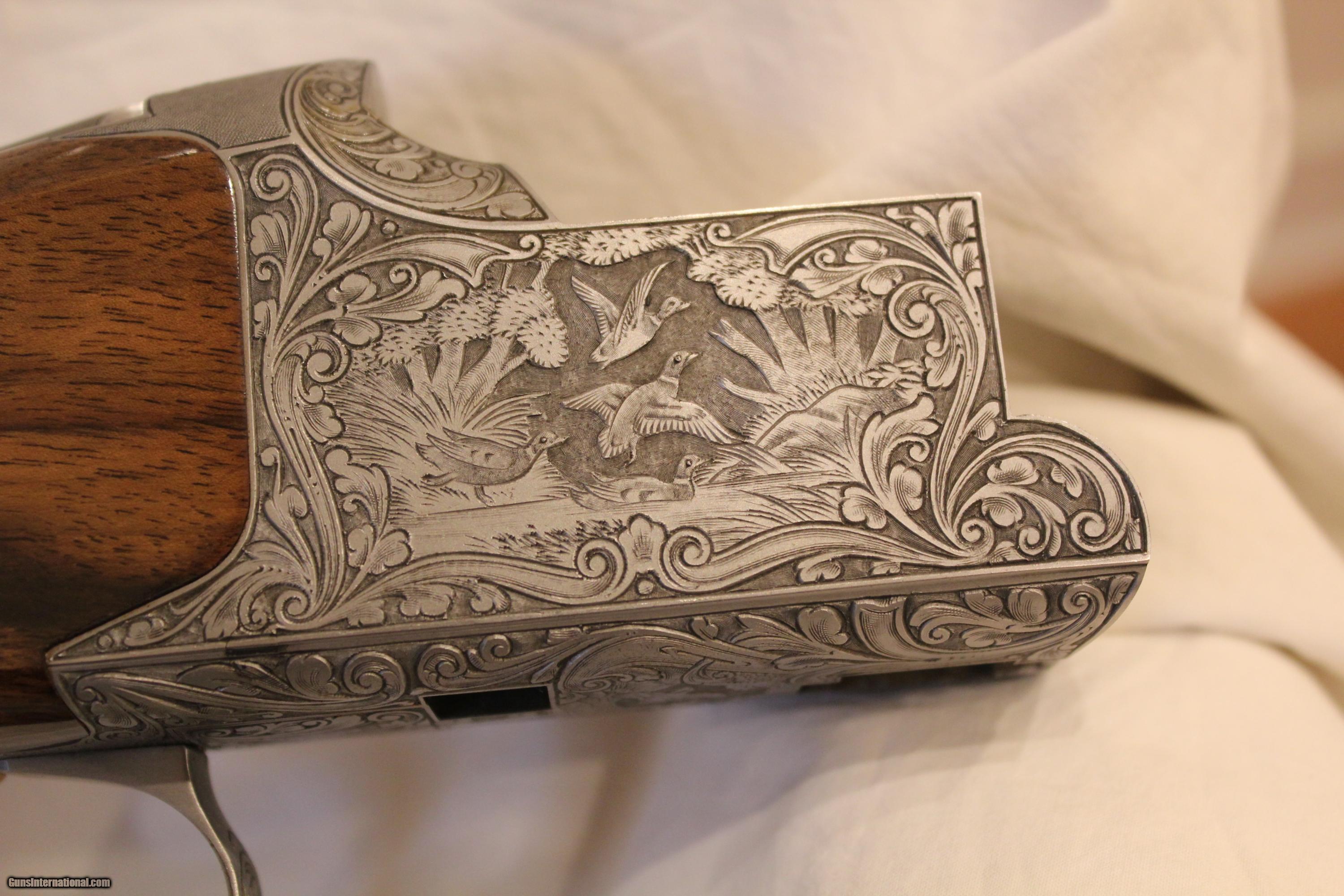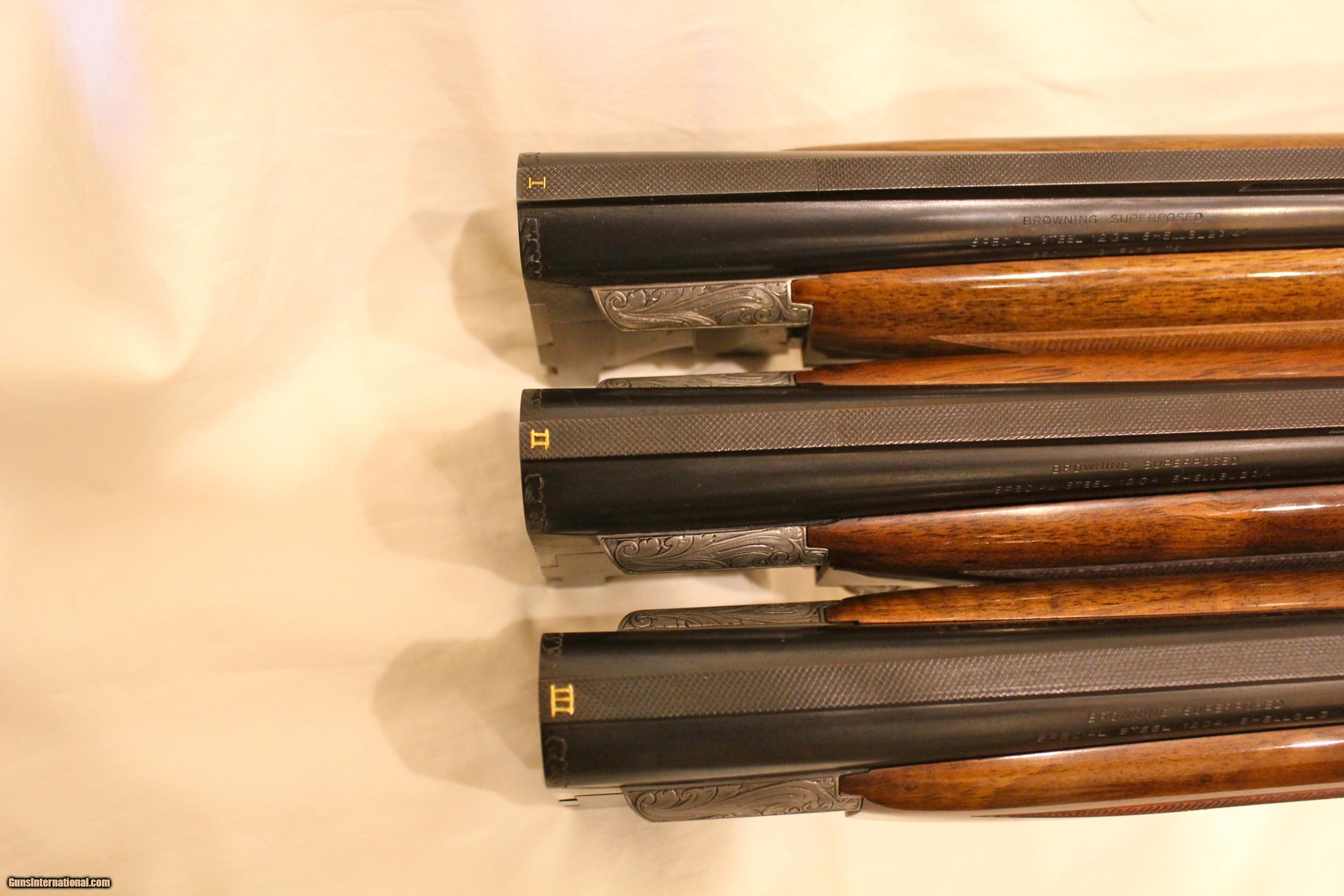 Description: A very beautiful special order gun Per Browning Records # P14RR1468 Presentation era All barrels marked in gold I,II,III Roman Numerals 26in IC/M 28in M/F 30in F/F 3in All Field Forearms High Grade wood 14 3/8 LOP Round Knob Long Tang To be Watrin Engraved Gold Oval in stock No Engraving Ship to Eddie Bauer Inc. Redmond Va This is all per Browning records SOLD |