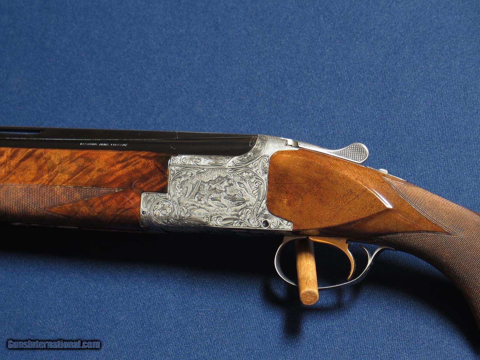 Description: Browning Superposed Diana Broadway Trap 12ga. 32 inch Imp Mod & Full. Gino Cargnel engraved. 14 3/8 LOP factory pad. S.S.T. A.E. Beautiful grain in wood. Excellent condition. 1969. No salt. SOLD |