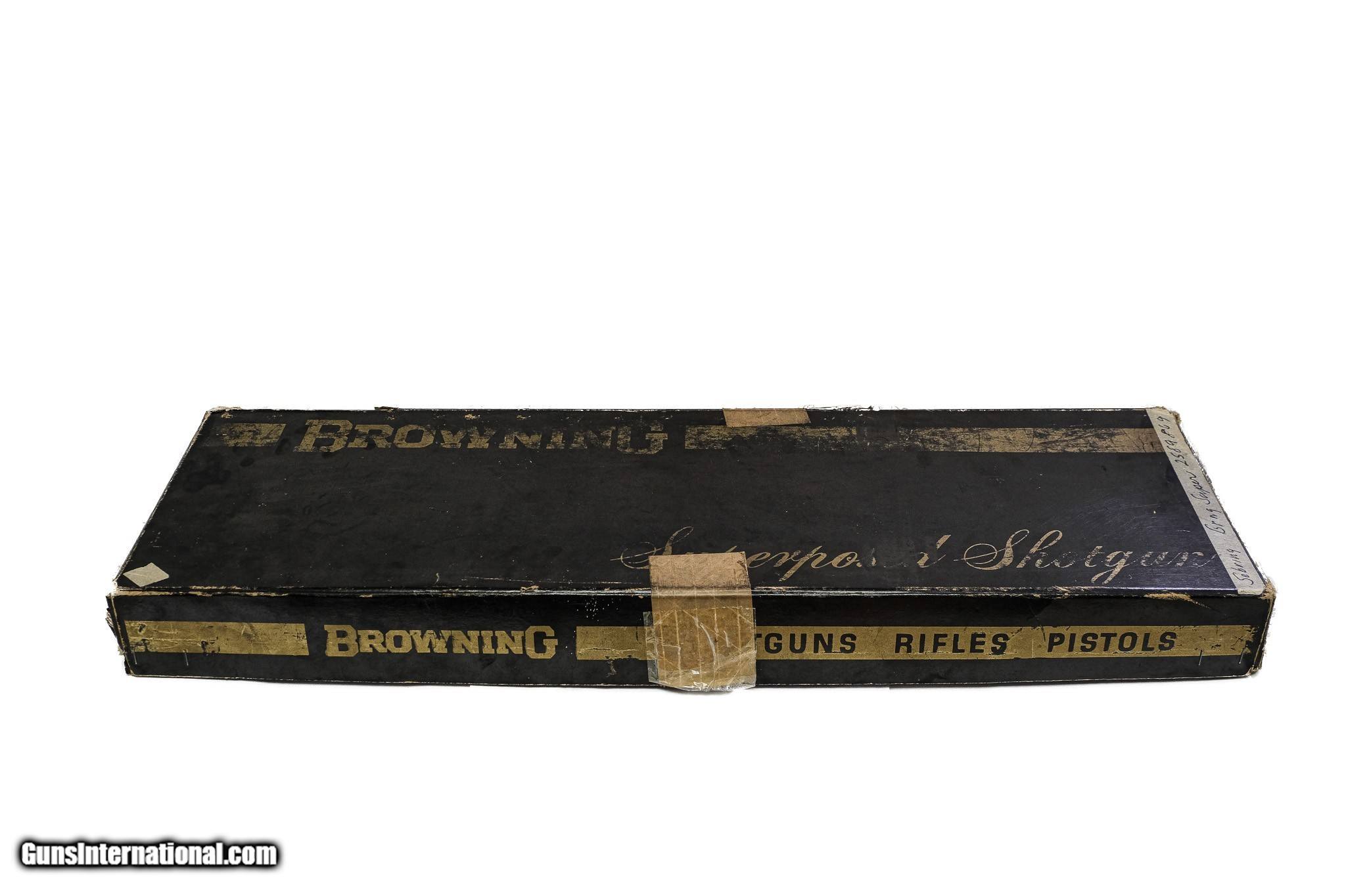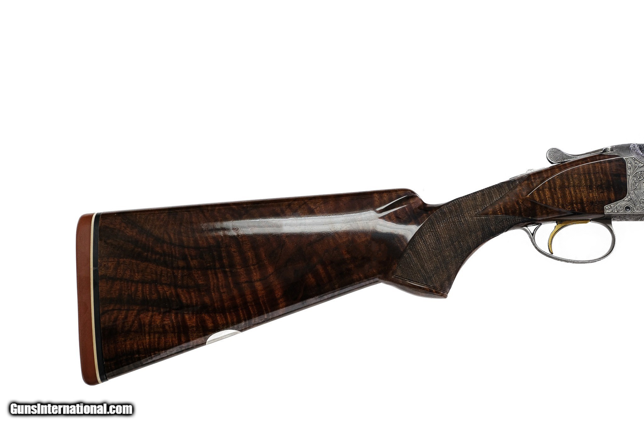 Description: Browning - Diana Grade, O/U, Made In Belgium, Two Barrel Set, 20ga/.410ga. 26 ½” Barrels Choked IC/M. Both sets of barrels are 26 ½” and are choked IC/Mod, highest quality 1970 Belgian manufacture, square knob short tang, new skeet style forends, Pachmayr pad, marvelous Diana engraving pattern double signed by Kowalski, nicely figured wood, gun remains in very good condition, available for immediate delivery. Inv: 77677 6 lbs. 4 oz. 14 ¾” x 1 ½” x 2 ¼” $11,799.00 SOLD |