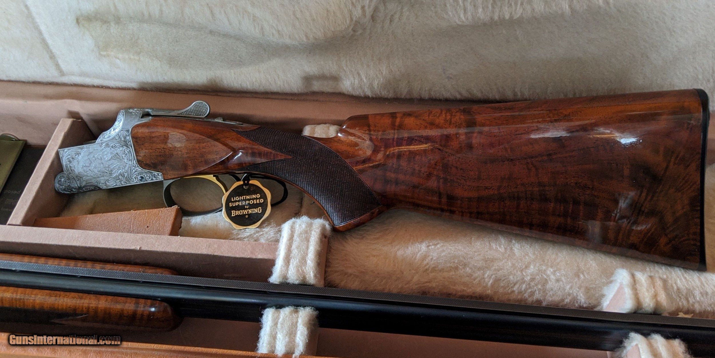 Description: *SOLD*1970 Browning Superposed 20 ga O/U MIC.28"bbl choked IC/M. This gorgeous little twenty was engraved by Marechal. It has been very lighty used by the original owner and comes with Browning booklet in a Hartman case and Superposed Lifetime Guarantee with the orginal Hang tag. The pictures do a better job of showing the gun than I can describe. The Gun's LOP is 141/4 over original Brg. butt plate. Please feel free to call or e-mail(notexts) with any questions you may have about this beautiful piece. We accept USPS Money Orders for payment or your personal check. All checks take 10 days to clear before we can ship. We ship USPS Priority insured to your FFL Dealer. NO CA. SALES. SOLD |