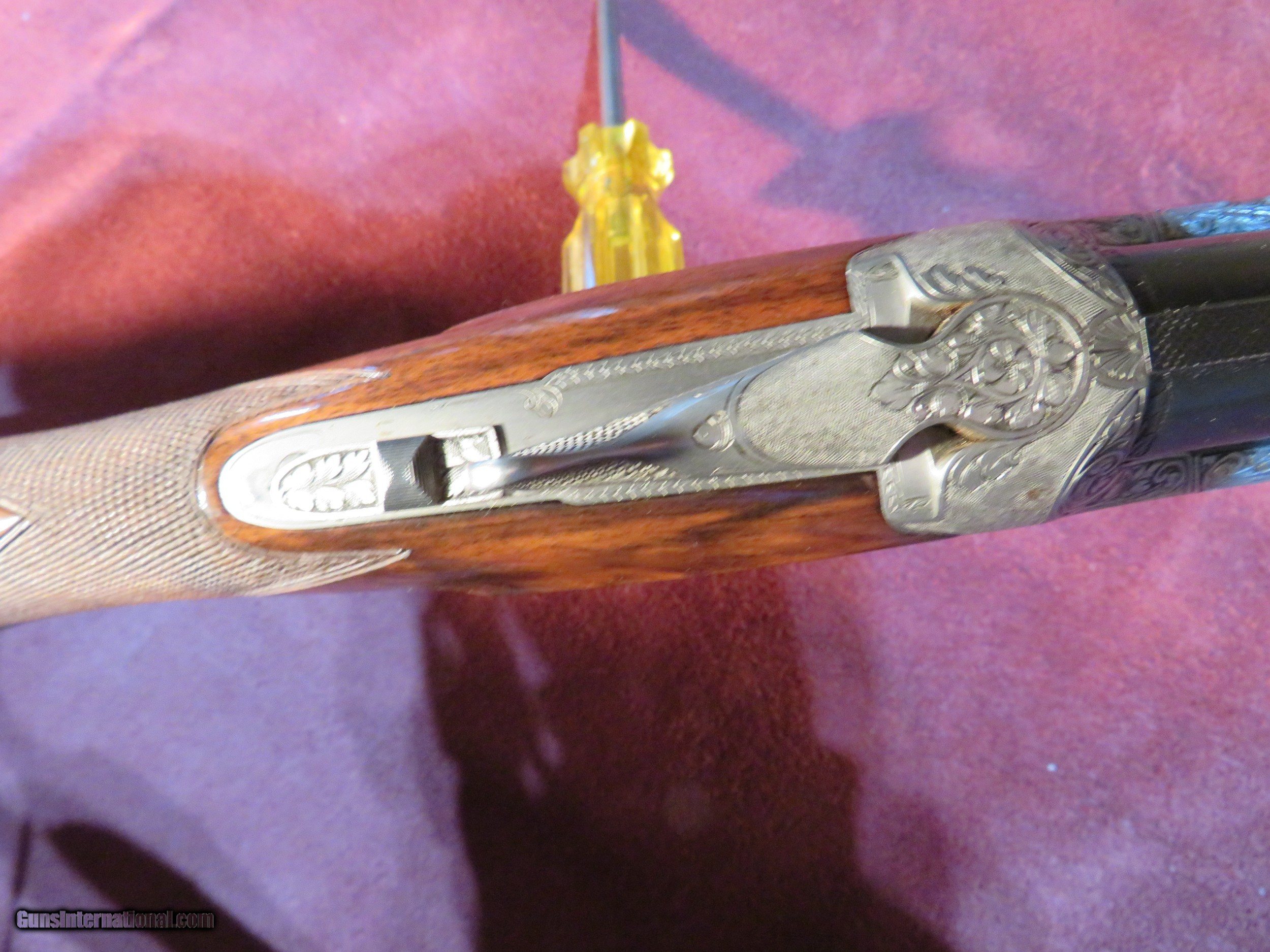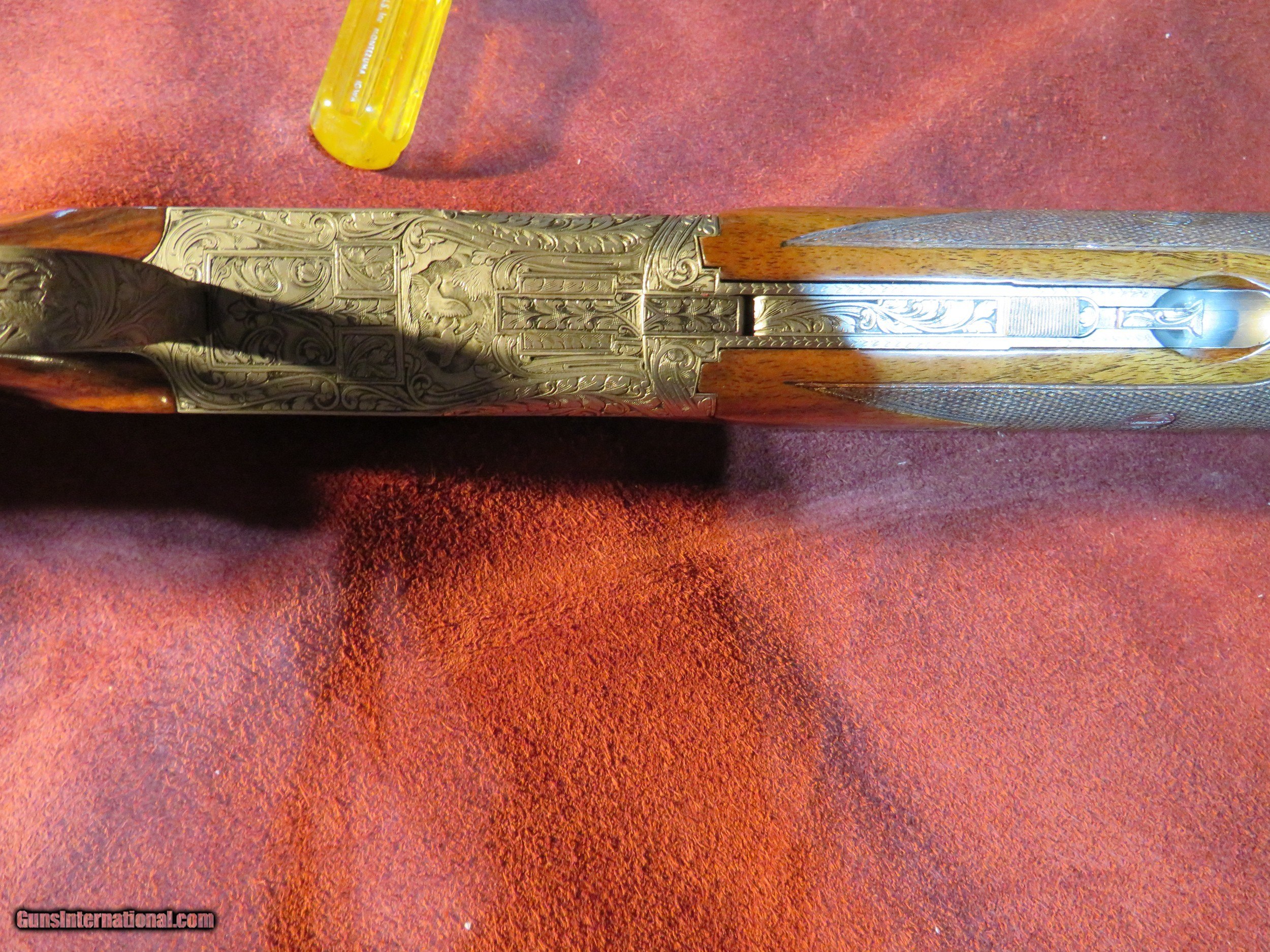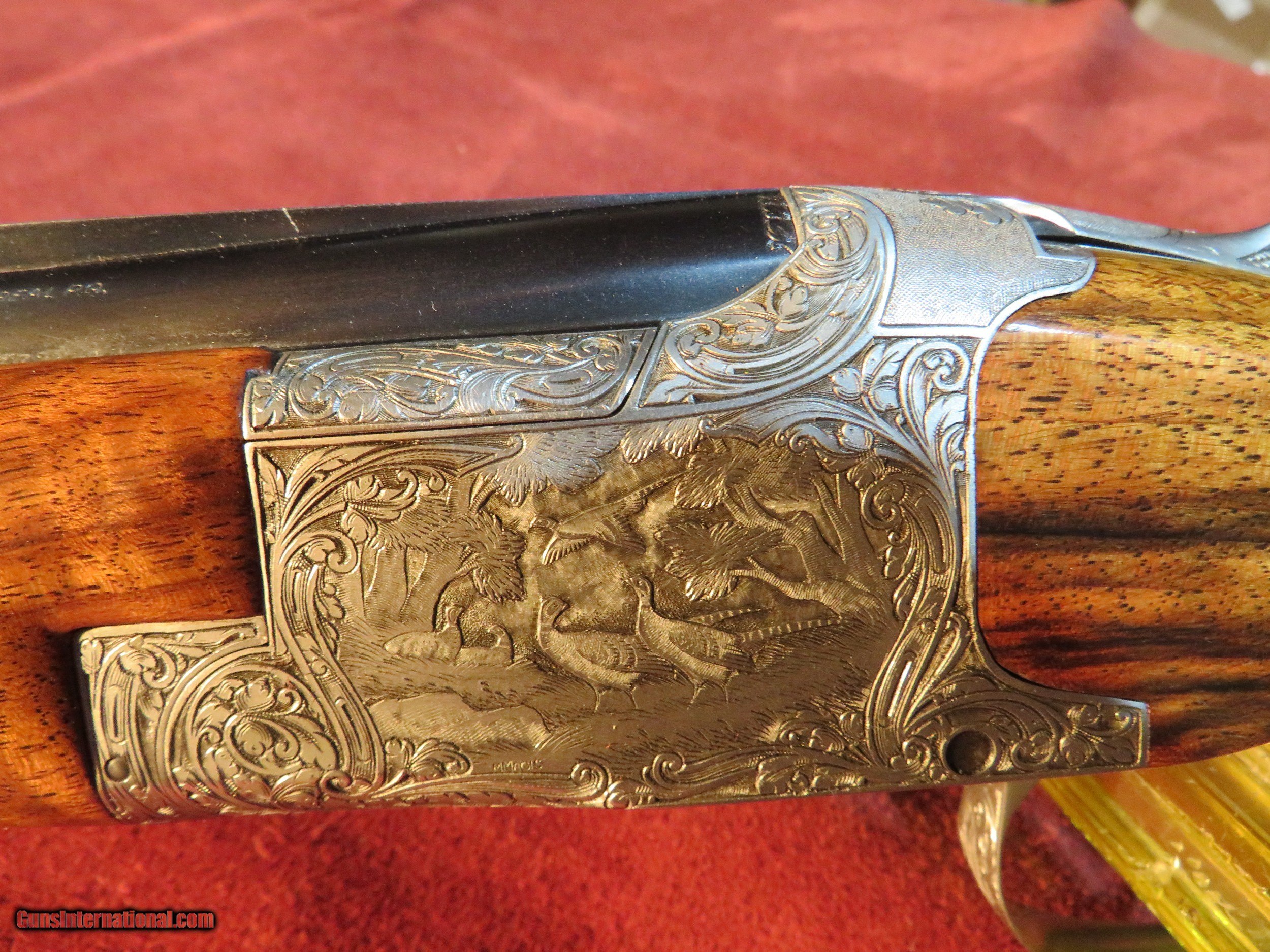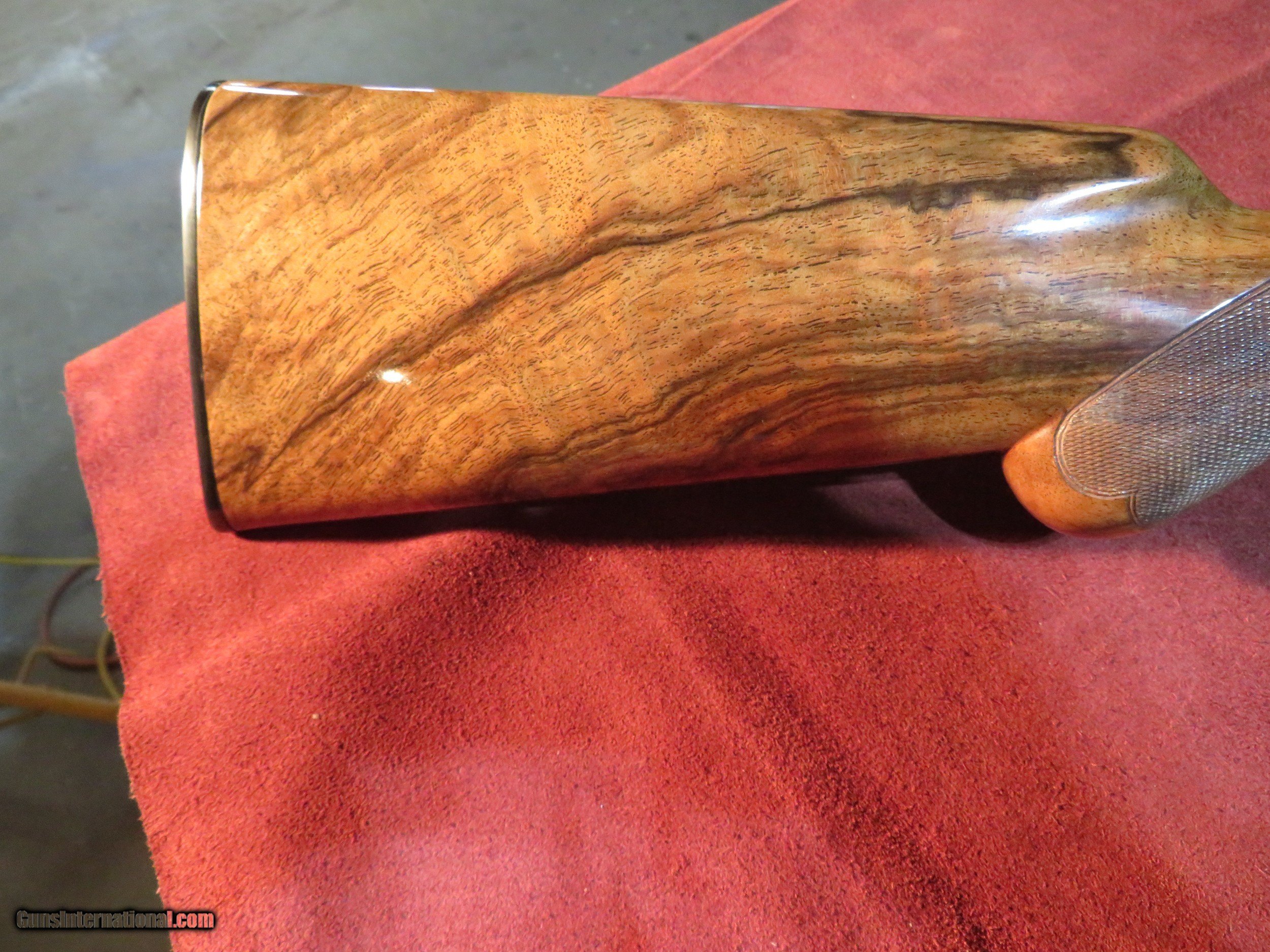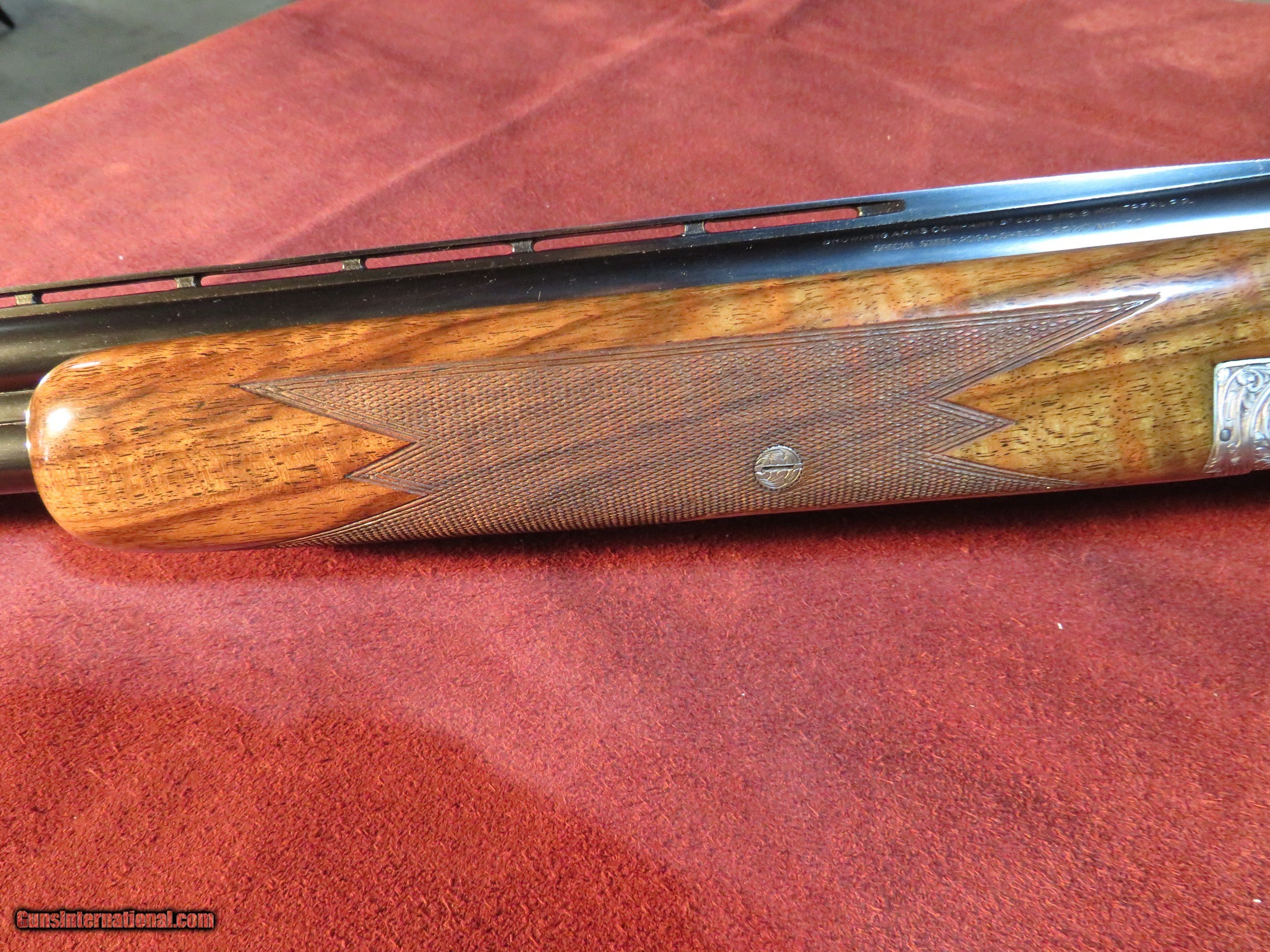 Description: A very nice 2 owner Diana grade 20 ga superposed. 1962 gun beautifully engraved by M Magis. I was going to write a flowery superfluous ad and blow smoke up your backside with a bs backstory like some of these sellers that are killing the market with fakes and phonies. Instead how about the facts only. Chokes are sk/sk ic/ic on the brass slip in gauge. 14 1/8 " lop maybe 14 1/16 "Don't let your spouse tell you 1/4" makes a difference. Little blue wear at muzzle and where forend slides .Minor handling marks in a couple places. Slight gold wear on trigger. Original horn butt plate. Last year of those And finished with 26 1/2" barrels. Purchased from original owner about 12 years back. SOLD |