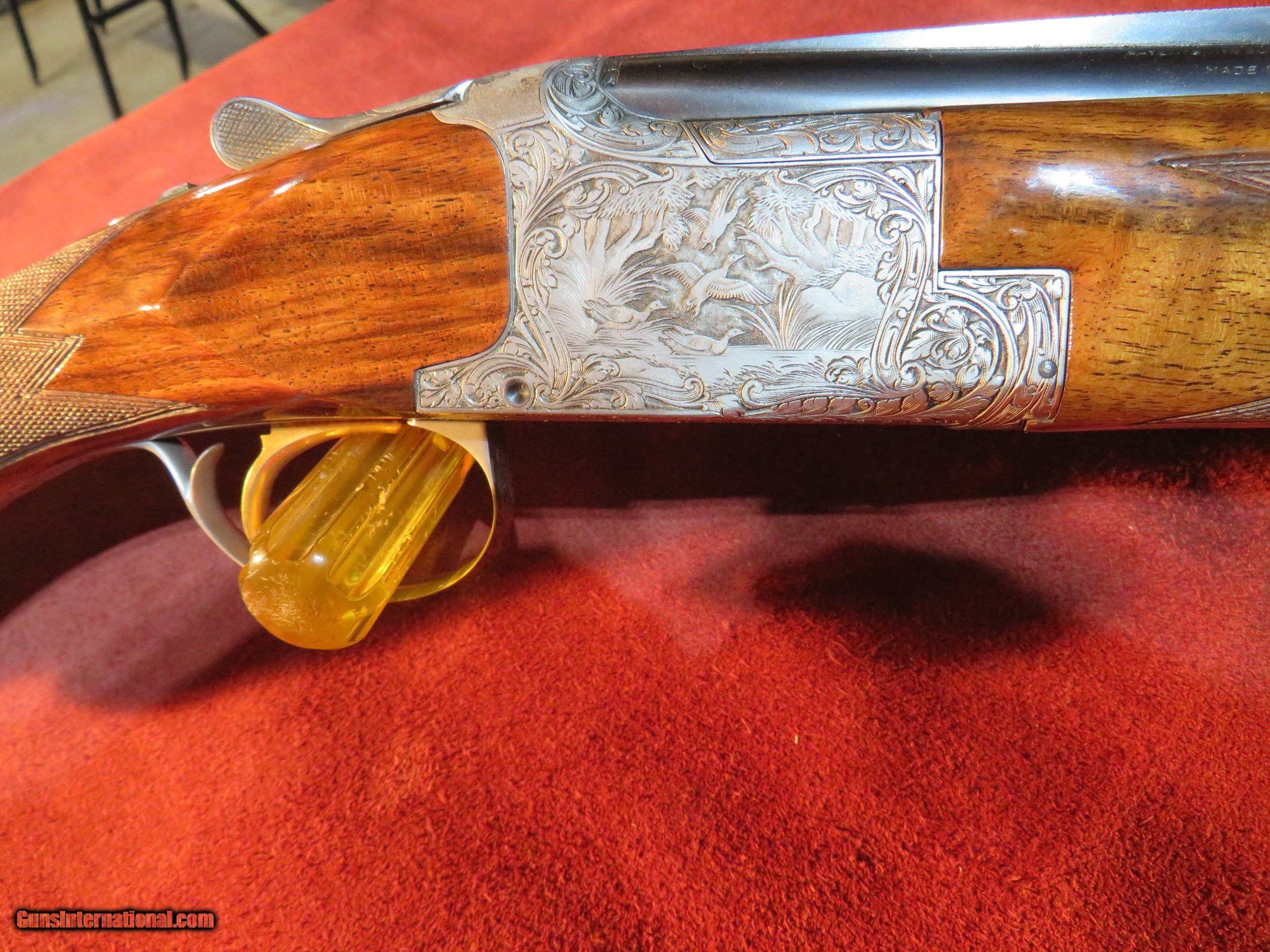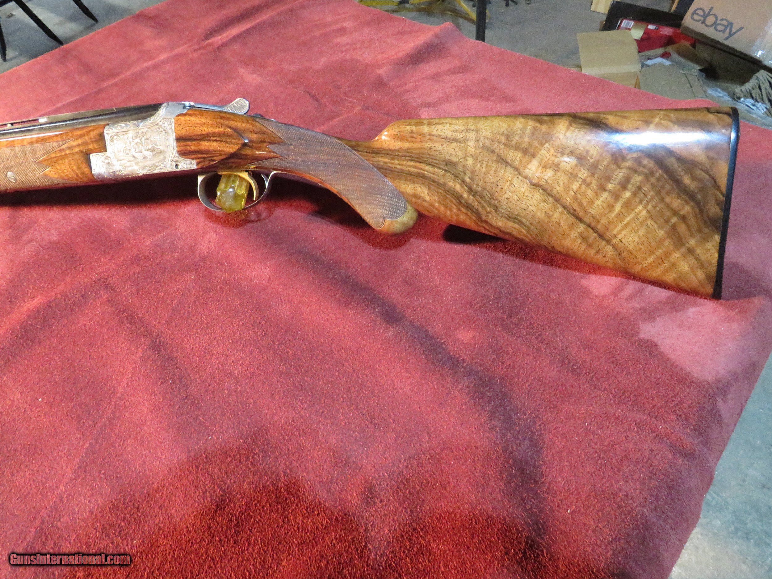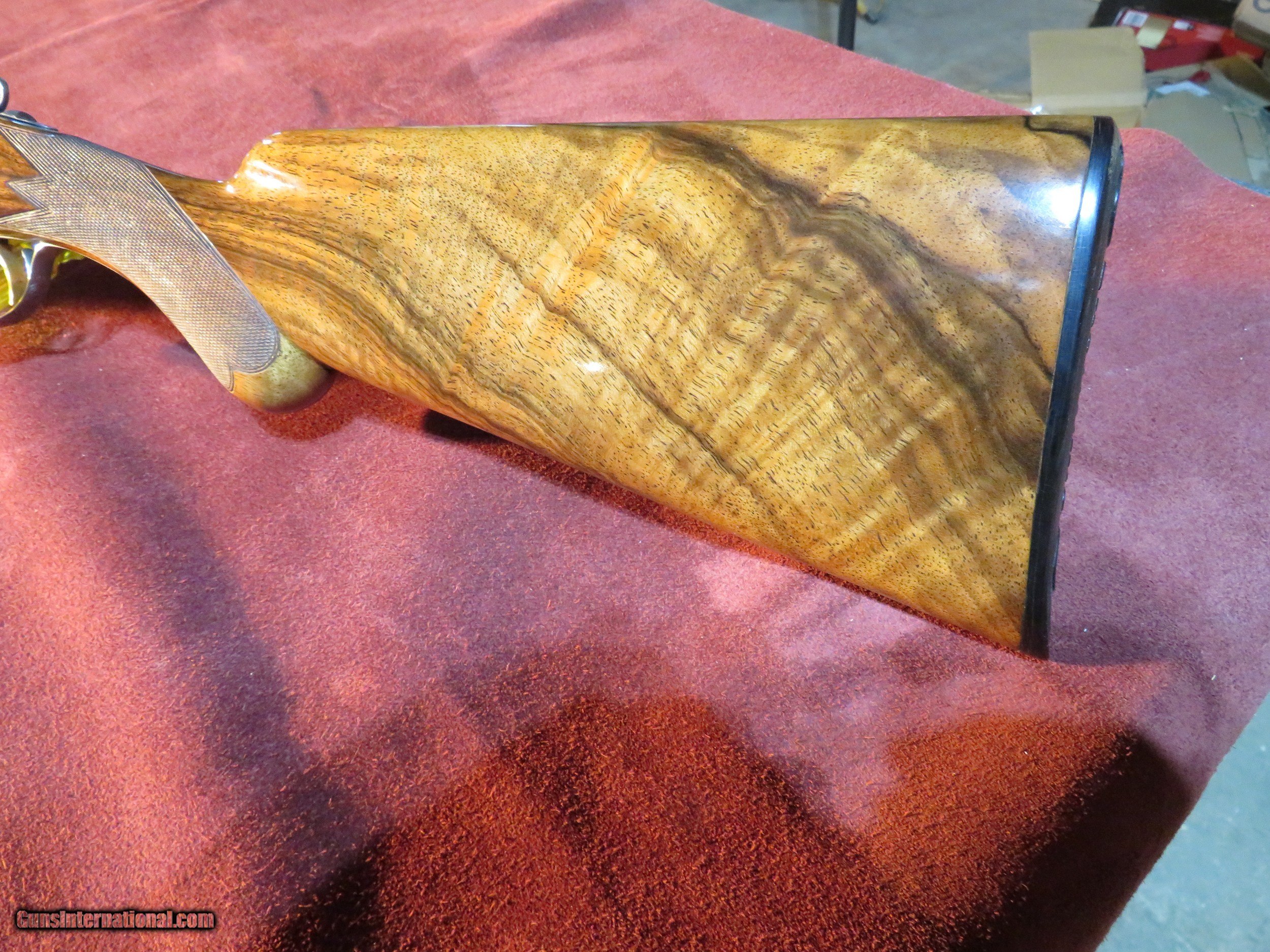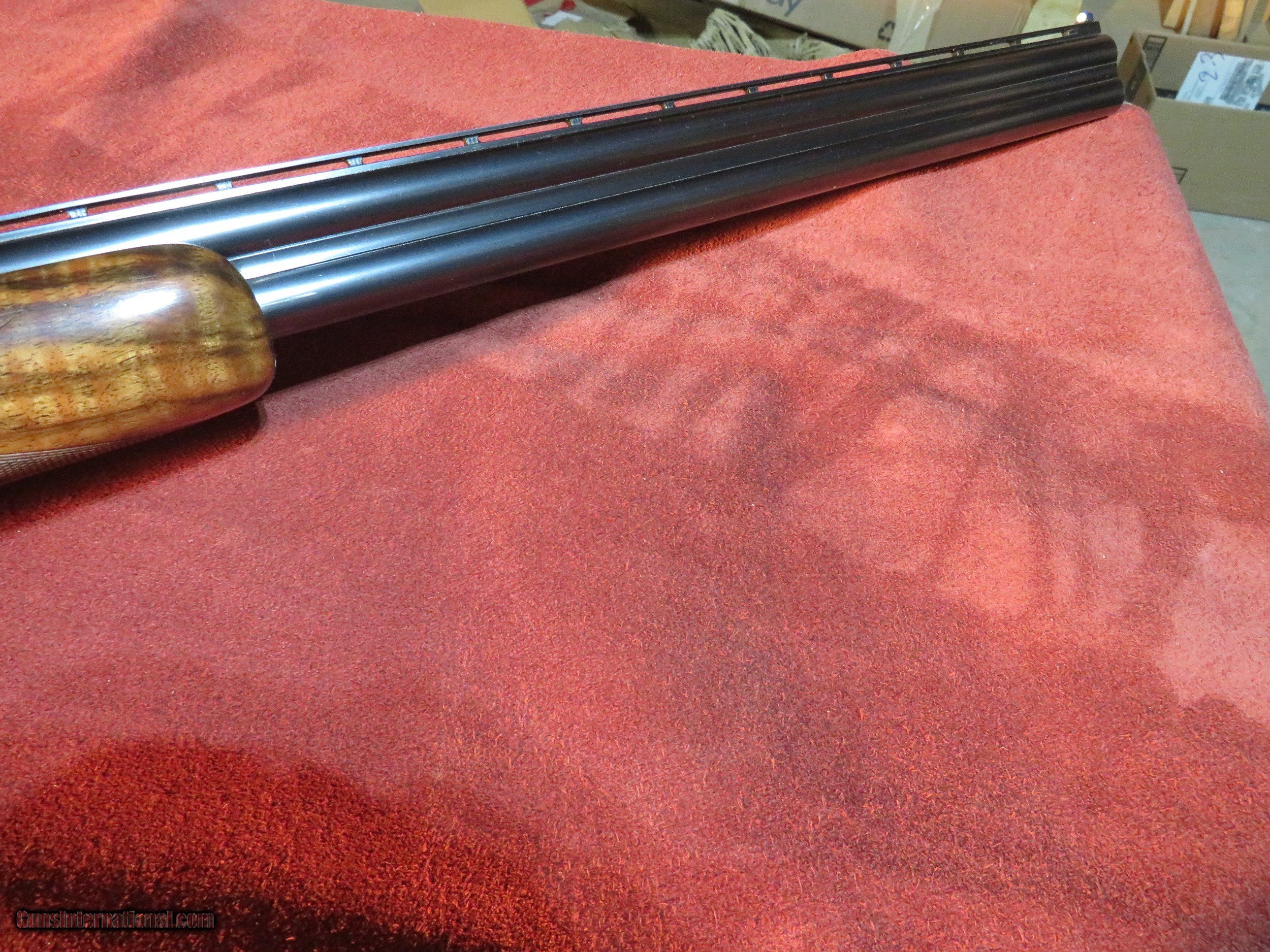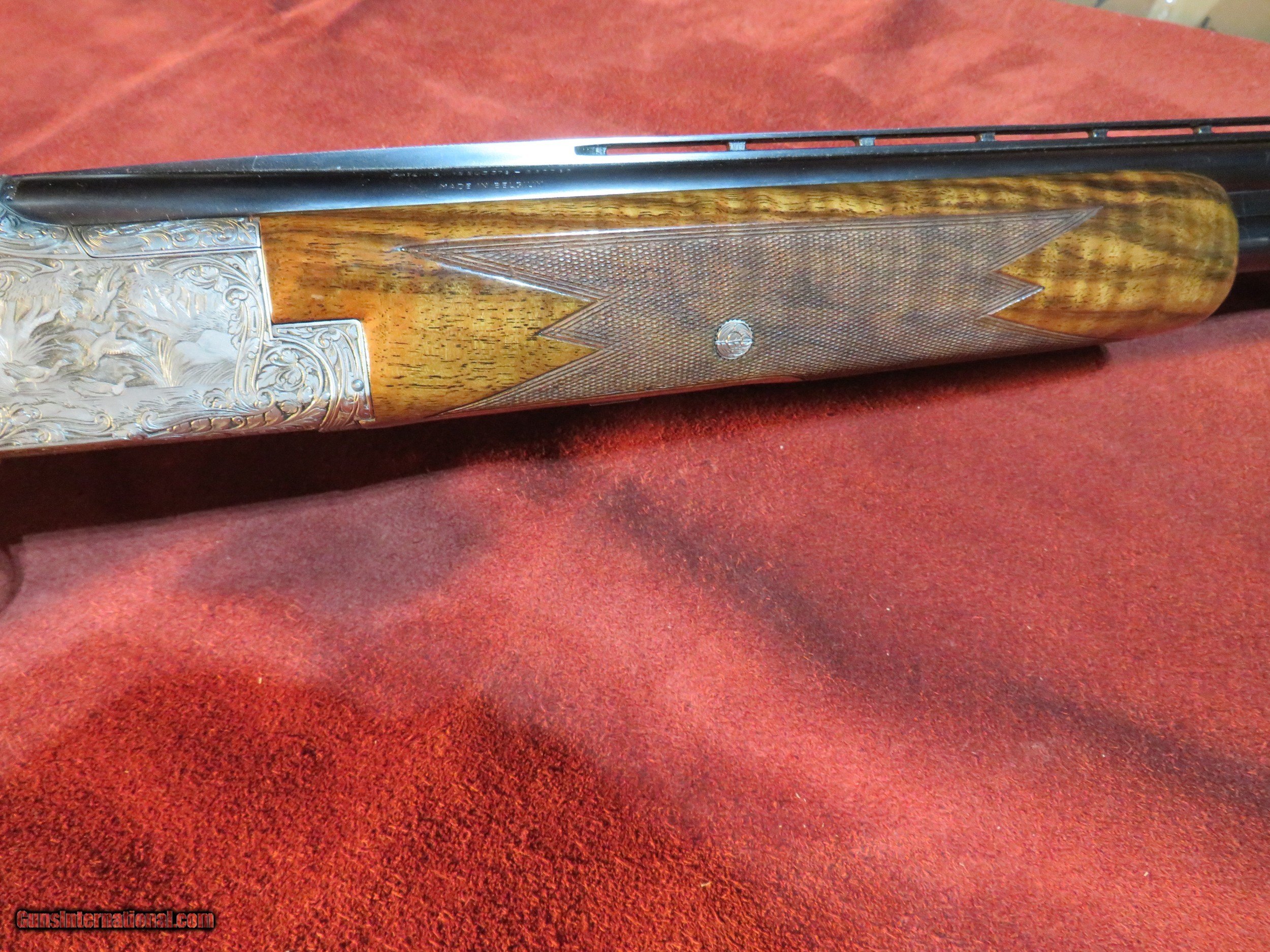 Description: A very nice 2 owner Diana grade 20 ga superposed. 1962 gun beautifully engraved by M Magis. I was going to write a flowery superfluous ad and blow smoke up your backside with a bs backstory like some of these sellers that are killing the market with fakes and phonies. Instead how about the facts only. Chokes are sk/sk ic/ic on the brass slip in gauge. 14 1/8 " lop maybe 14 1/16 "Don't let your spouse tell you 1/4" makes a difference. Little blue wear at muzzle and where forend slides .Minor handling marks in a couple places. Slight gold wear on trigger. Original horn butt plate. Last year of those And finished with 26 1/2" barrels. Purchased from original owner about 12 years back. SOLD |