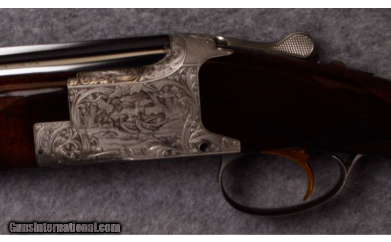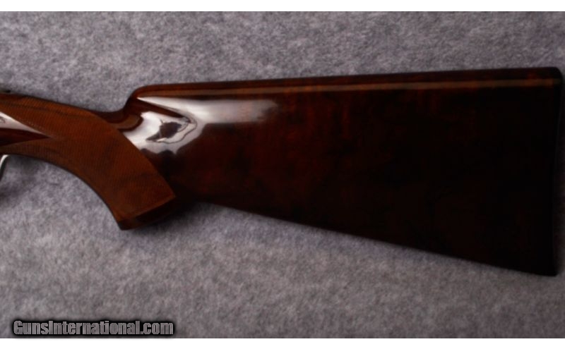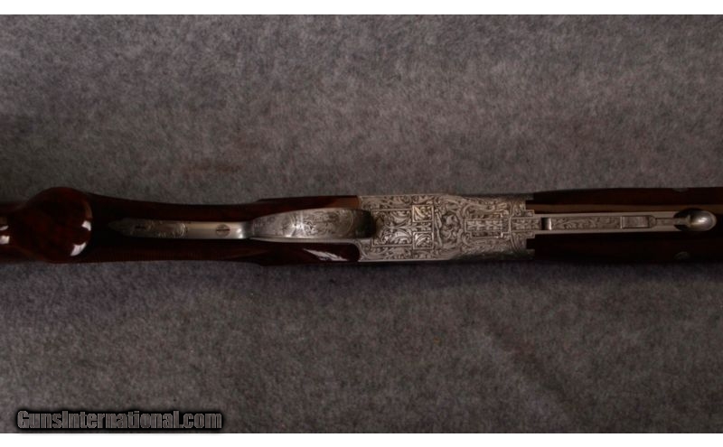 Description: The Browning Superposed is one of the finest over/under shotguns in the world and one of John Browning’s most brilliant designs. This extraordinary Belgium Superposed over/under 20 gauge, with the highly desirable 28” barrels, is choked F/M, it was built in 1971 and is an extremely scarce and superb example of a “Diana Grade”. With highly-figured, salt-free wood, square knob / short tang, incredible hand cut, deep-carved engraving with deep-relief game scenes, shaded backgrounds, and wonderful bank-note style scroll Master engraved and signed by C. Baerten and J.M. Deprez, it remains complete with its’ original factory hard case. Best of all, this gun is in 100% factory original condition. If you collect Browning Superposed guns there are few that provide better handling characteristics and are more exciting and as desirable as this petite little gem ! SOLD Caliber Info: 20 Gauge. Chambers: 3" chambers. Metal Condition: Excellent with no defects. Wood Condition: Excellent with no defects. Bore Condition: Excellent. Bright and shiny. Barrels: 28" barrels. Triggers: Gold plated trigger. Stock: Checkered walnut. Stock Dimensions: 2 1/4" DAC, 3 7/8" DAH, 14 1/2" LOP. Fore End: Checkered walnut. Butt Pad: Plastic Browning buttpad. Weight: 6 pounds, 3 ounces. Sights: Front bead sight. Chokes: Choked modified and full. Extras: Comes with hard case, manual. Item Location: Tualatin, OR |