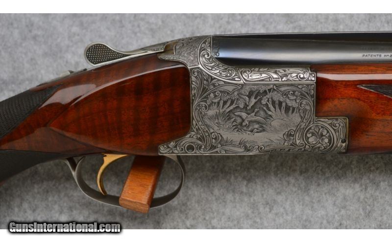 Description: Excellent condition overall. Features Diana Grade game scene engraving, signed by R. Dewil the engraver. SOLD Manufacturer: Circa: 1967 Caliber Info: 12 Gauge Chambers: 2 3/4 Metal Condition: Excellent Wood Condition: Excellent Bore Condition: Excellent Barrels: 26 1/2" Blued Steel with Ventilated Rib Triggers: Single Selective Trigger with Ejectors Stock: Checkered Deluxe Walnut Flat Knob Pistol Grip Butt Stock Stock Dimensions: LOP: 14 Fore End: Checkered Deluxe Walnut Butt Pad: Browning Butt Plate Weight: 7 lbs. 6 ozs. Sights: Single Bead Chokes: Fixed: Modified and Improved Cylinder Item Location: Hamburg, PA |