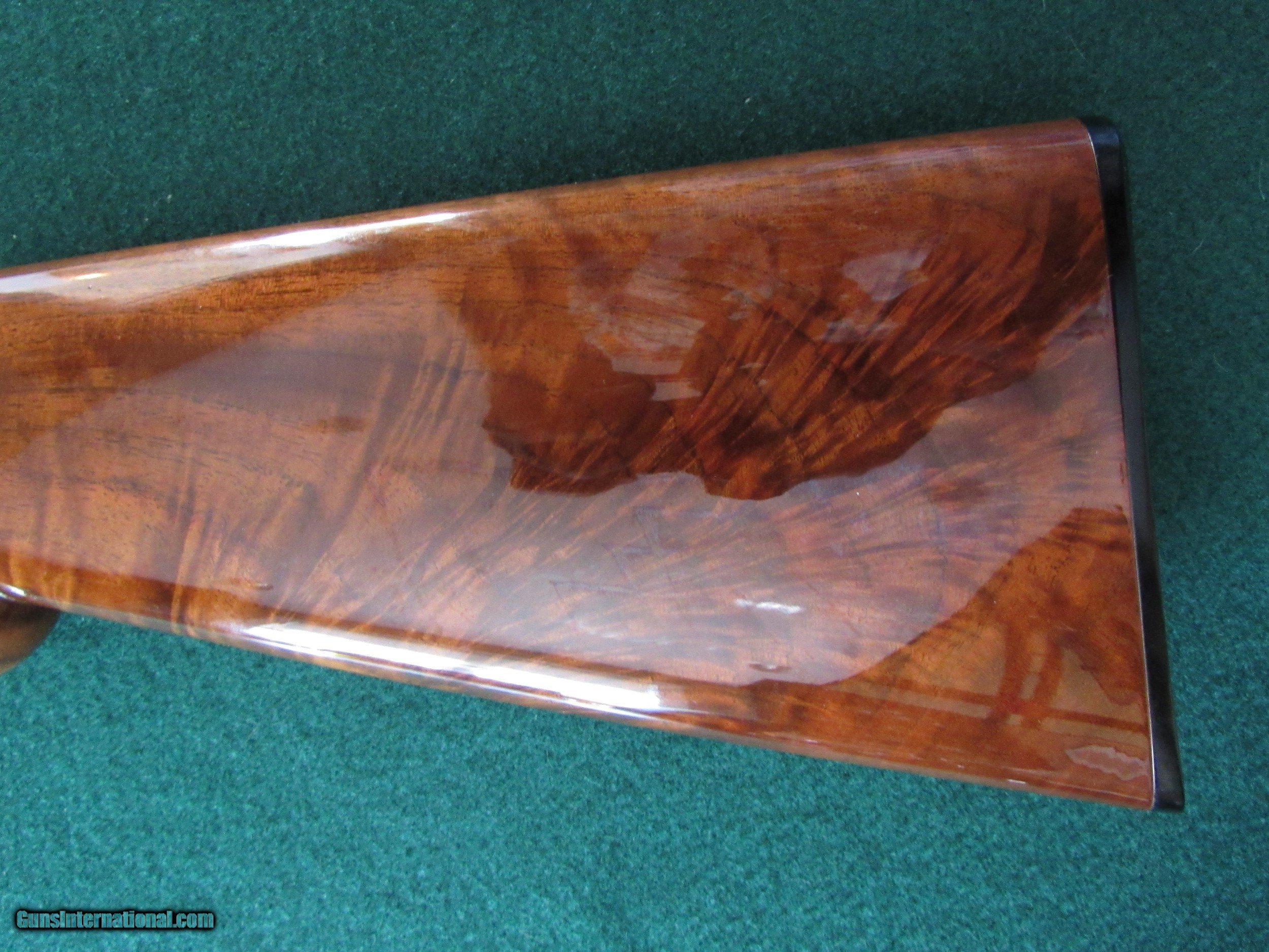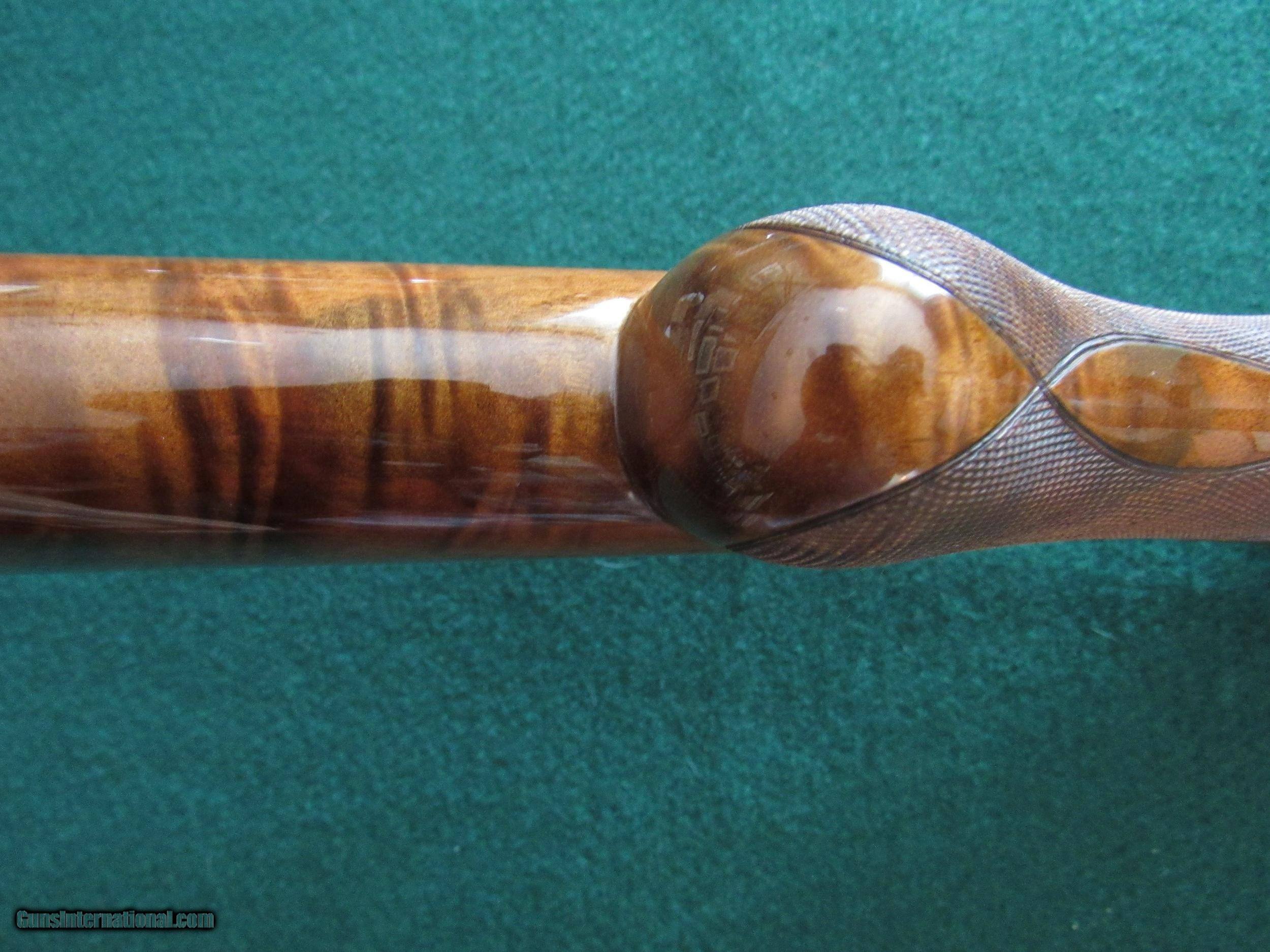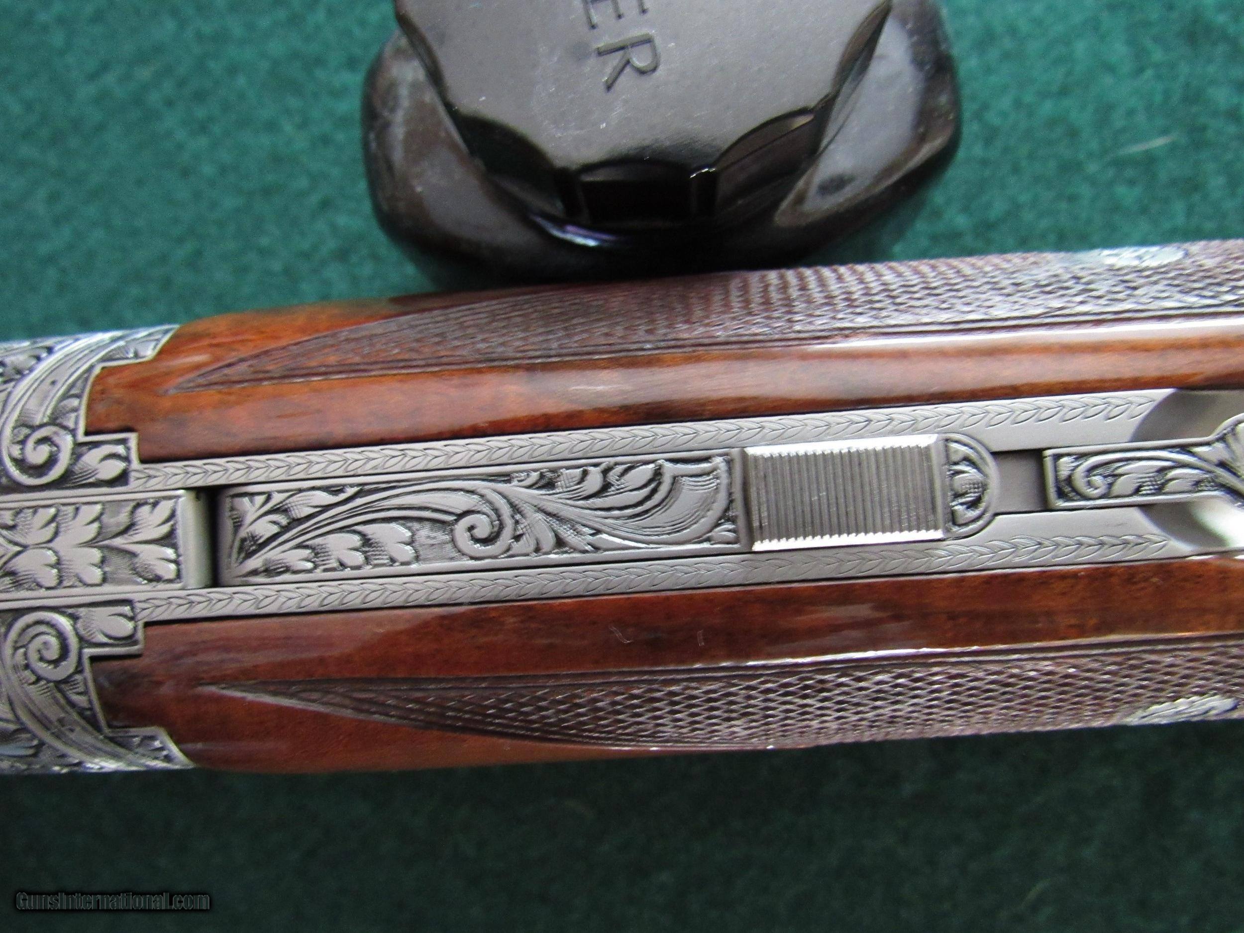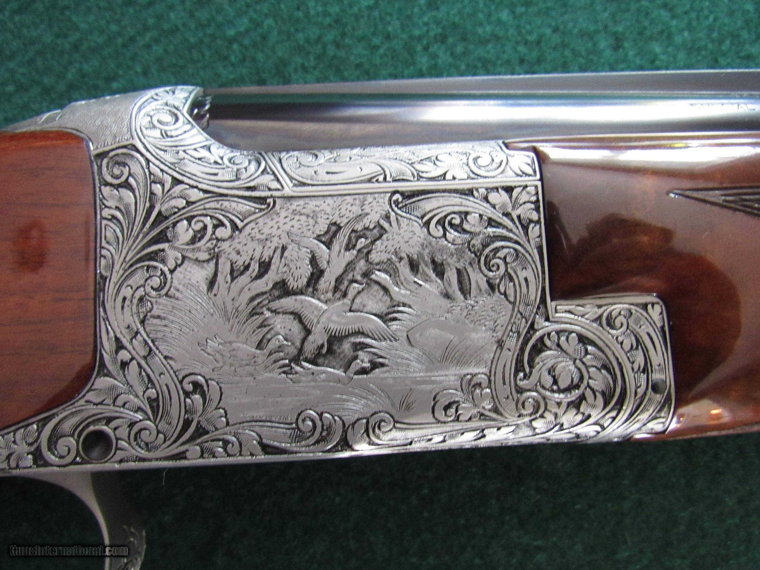 Description: LAST PRICE CHANGE This is a Browning Superposed Diana grade 12 gauge made in 1971. IT IS SALT FREE! It is in superb condition! The gun has 28 inch, 2 3/4 inch chambered barrels choked U-modified, O-full. Single trigger, auto ejectors, vent rib and double beads. The stock is very beautiful AAA flame walnut, much more figure than most, round knob with a short tang (RKST). The checkering and wood are 100% and the metal is 99%+ (only wear is at where the fore end slides foreward). The gun's dimensions are: LOP 14 3/8 inches with DH 2 inches and DC 1 1/4 inches and 0 cast. It weighs 7 lb 10 oz. It has a pistol style grip and hard plastic butt plate. The engraving is spectacular and double signed by Vandermisseng. It comes in a near perfect Browning Airway case with key. It would make a very nice sporting clays gun! This gun will ship from my local shop as I do not have a FFL. Set shipping and insurance of $50 to be paid by the buyer. Sales within the United States only. There is a 3 day inspection with refund of purchase price upon return of gun in verified pre-sale condition. Return shipping and insurance (required) will be at buyer’s expense. Upon sale I will give instructions for sending signed copy of FFL holders license and payment instructions. Gun will be shipped upon receipt of money order, USPS money order or certified check. Thank you for looking! SOLD Manufacturer: Browning Model: Superposed Diana Grade Serial Number: 1408571 Bore: 12 Chambers: 2 3/4 Ejectors: automatic Condition: 99+% Metal Condition: 99% Wood Condition: 100% Bore Condition: bright/shiny Barrels: 28 inch Barrel Type: over and under Action: Boxlock Triggers: single Gauge Info: 12 Stock: AAA walnut Stock Comb: 1 1/4 inches Stock Heel: 2 inches Stock Cast: 0 Fore End: Superposed field Butt Pad: plastic Browning LOP: 14 3/8 inches Rib: Ventilated Finish: Browning clear coat Weight: 7 lb 10 oz Sights: double bead Manufacture Date: 1971 Chokes: full over modified Engraving: Diana full coverage Case: Browning Airway Item Location: Wisconsin |