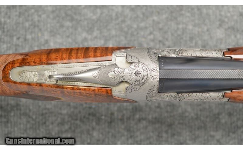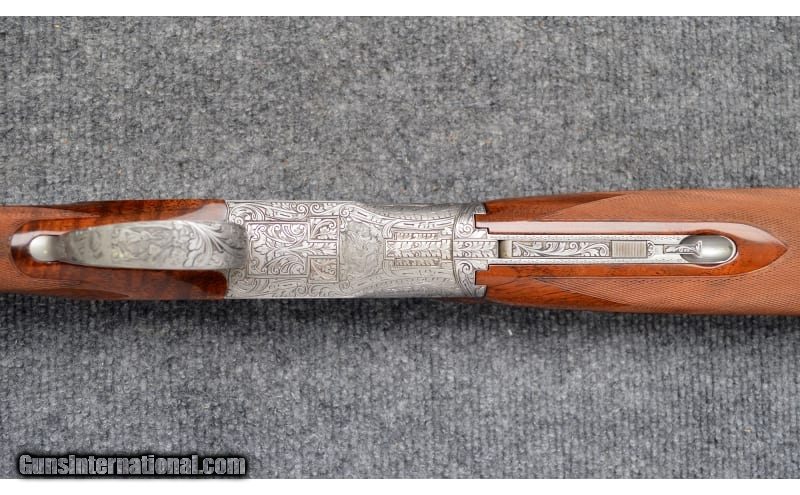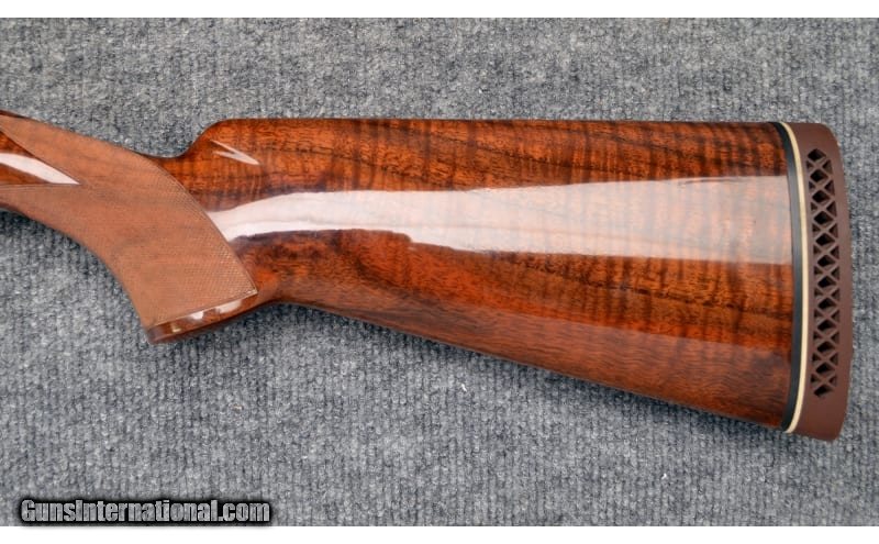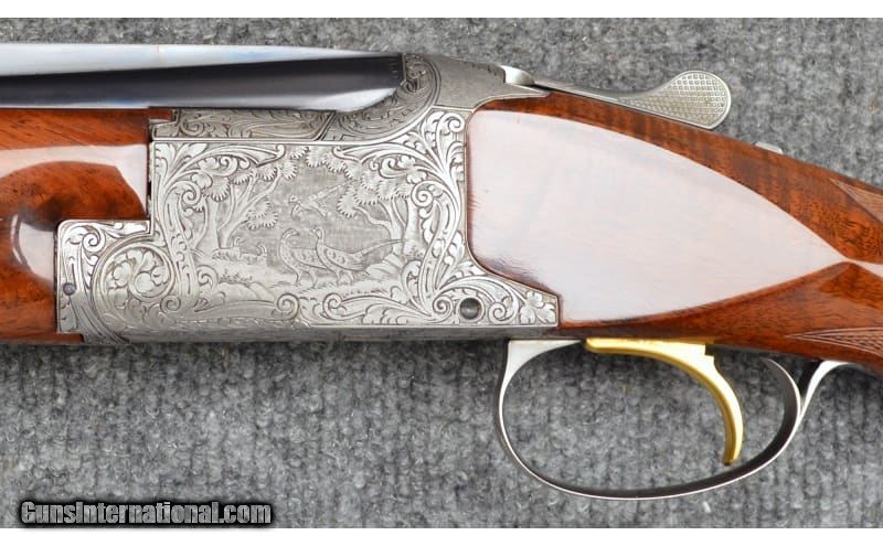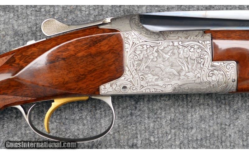 Description: For your consideration, a Browning Superposed chambered in .410 Gauge. This piece is a Grade V (Diana). The French greyed receiver is engraved with scenes of pheasants at left and ducks at right with the remainder covered with scroll by Master Engraver L.A. Campo. Features include a mechanical trigger, ejectors, non-auto safety, selector, and beavertail forend. Stock dimensions are as follows: 14 1/4" LOP, 1 5/8" drop at heel, 1 1/4" at face, and 1" at comb with a slight cast off. .410 Bore SOLD Chambers: 2.5 Metal Condition: Excellent Wood Condition: Excellent Bore Condition: Excellent Barrels: 20 Triggers: "Single, Mechanical Stock Dimensions: 14.25" LOP Fore End: Checkered Beavertail Butt Pad: Rubber Weight: 7.25 lbs Sights: Rib and Bead Chokes: Improved Cylinder Item Location: Hamburg, PA |