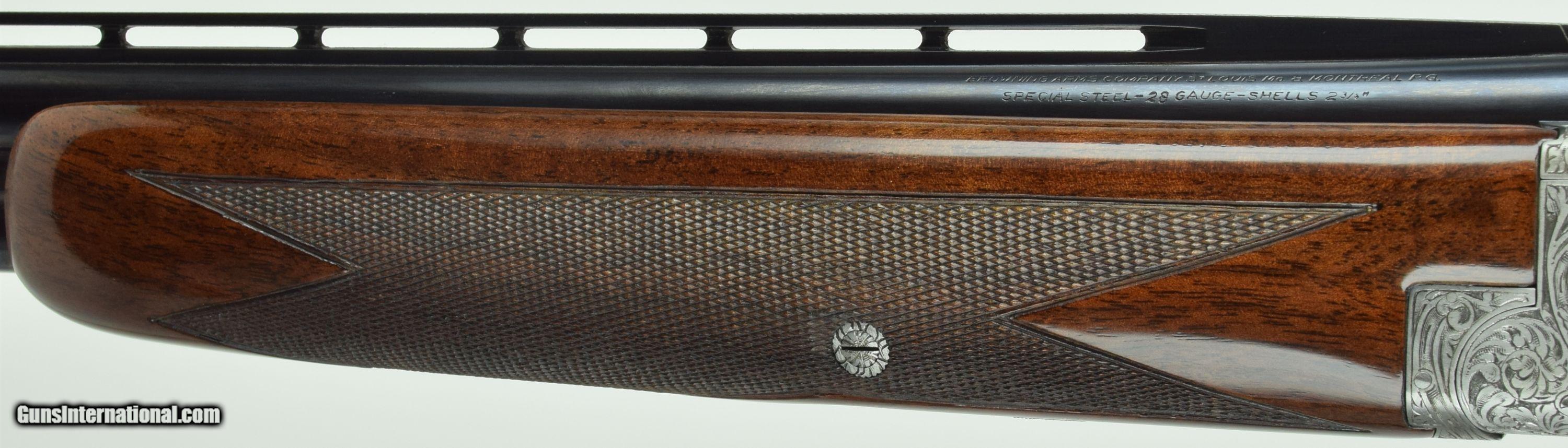 Description: Fantastic Diana, engraved by Angelo Bee when the best were made. SOLD Manufacturer: Browning Model: Superposed Diana Barrels: 26.5 Gauge Info: 28 GA Stock Comb: 1.5 Stock Heel: 2.5 Butt Pad: Original LOP: 14 3/8 Rib: Vent Weight: 6.75 Sights: Bead Manufacture Date: Early 1960 Chokes: IC/Mod Engraving: Angelo Bee |