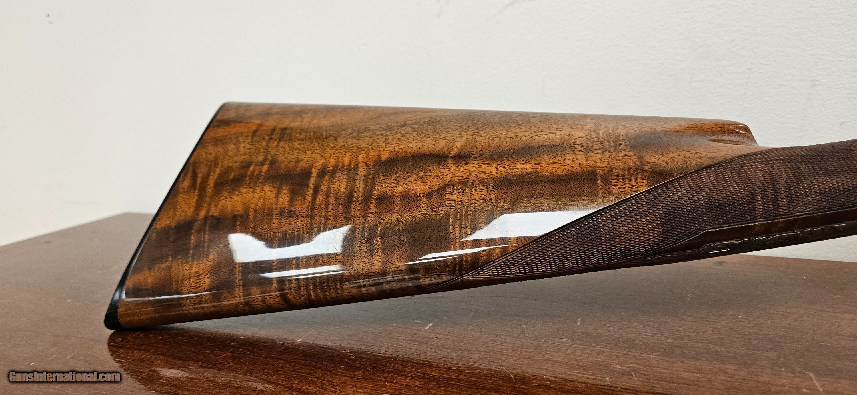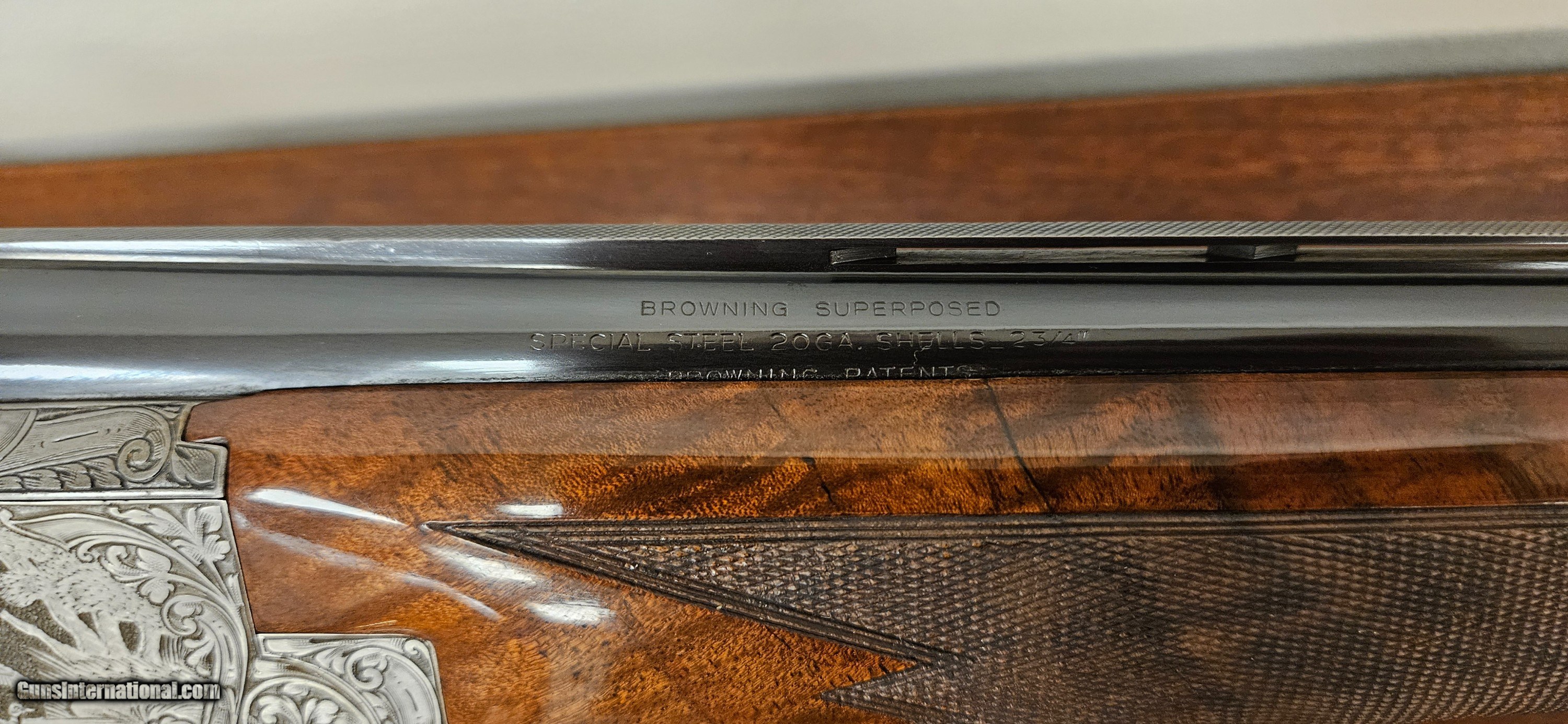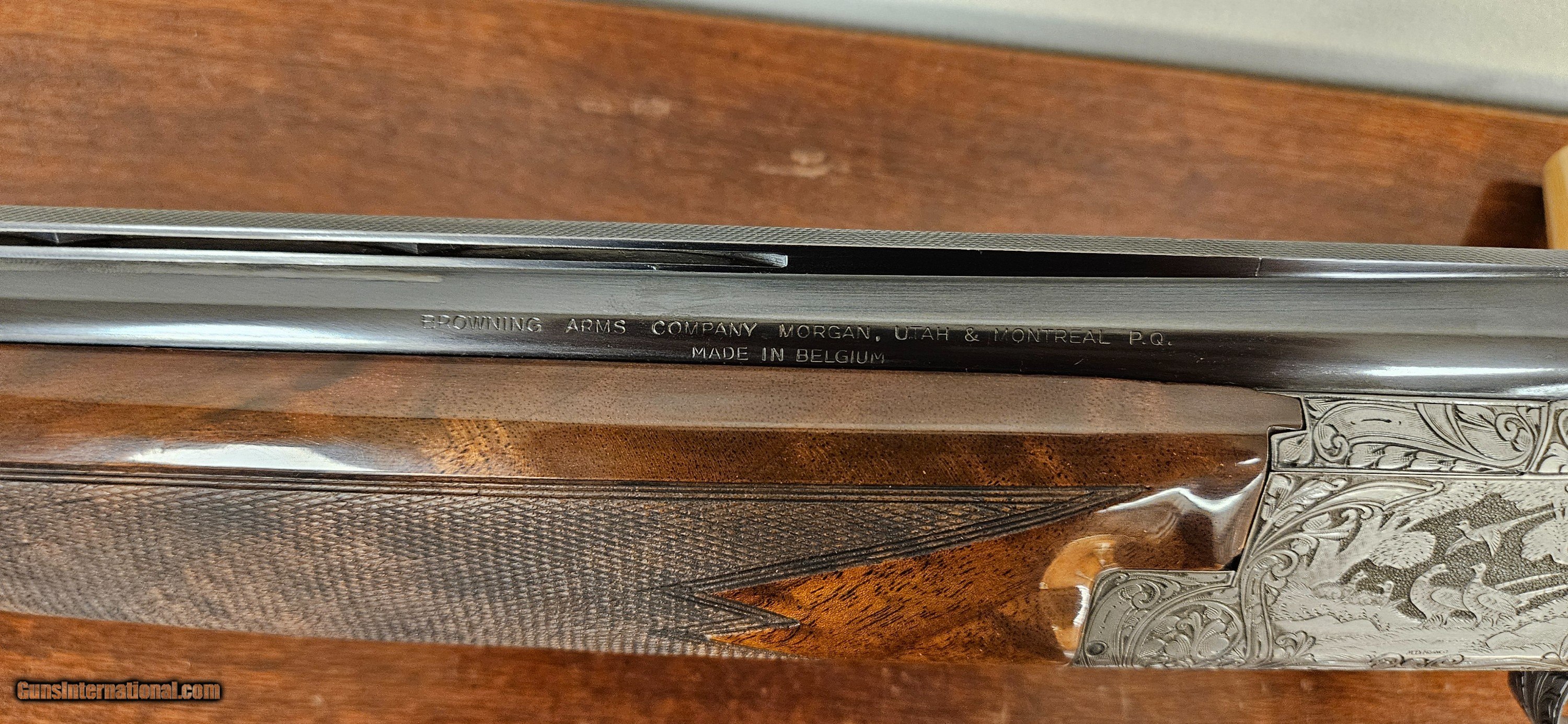 Description: Up for sale is a Diana grade Browning Superposed. This shotgun features: Straight English grip. "Old Style" superlight / pointer fore end, 26 3/8" barrel, 14 1/4" LoP, 1 3/8" DaH, 2 1/8" DaC. Modified top choke, improved cylinder bottom choke. Very good bore condition. Engraved by M.D. Franco. SOLD Shotgun Gauge: 20 Gauge Manufacturer: FN Browning Model: Superposed Diana Barrel Length: 26.375 Bore Condition: Very Good LOP: 14.25 Item Location: Lakewood, CO |