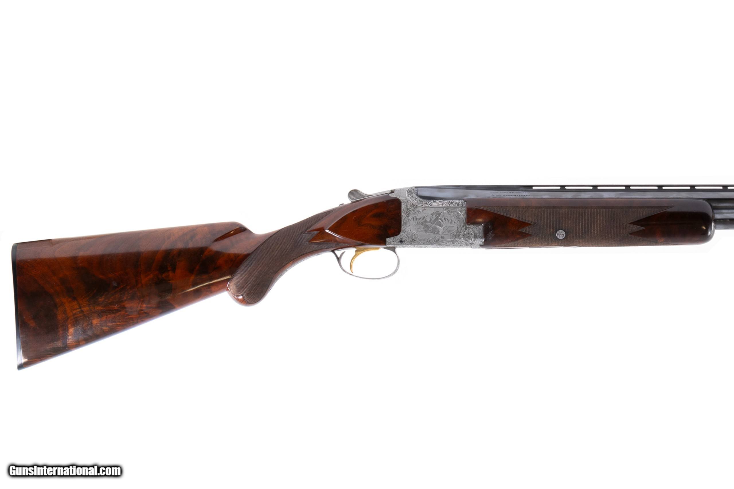 Description: Pre-Owned Browning Superposed Diana Grade Field Shotgun | 12GA 26" | SN#: 56041S7 New on consignment, beautiful Belgian made Superposed Diana Grade from Browning. This gun is overall in excellent mechanical and cosmetic condition with some handlings marks to the stock and forearm. The gun is fixed choke and fit with a long tang trigger guard. The receiver, top lever and trigger guard are all elegantly engraved in a game scene with ribbons by CH. Servais. Gun comes in a hardshell Browning case. Cole Gunsmithing is an authorized Beretta Factory Warranty Service Center. We are TSK USA, importer, and distributor of TSK Stocks, The Fully Adjustable Stock. Federal firearms laws do not allow us to ship firearms directly to you. Please contact us for ordering and shipping information. Gauge: 12GA Chamber: 2 ¾" Barrel Length: 26" Bore Diameter: --- Length of Pull: 14" Drop at Nose: 1 ½" Drop at Montecarlo: --- Drop at Heel: 2 3/8" Chokes: Fixed: IC/M Rib: 7mm Forend Style: Round Comb: Fixed Barrel Weight: --- Discipline: Field Cast: RH Weight: 7lb 5.7oz Firearm Condition Barrel(s) Condition: Excellent. No signs of rust or pitting. Front bead intact. Receiver Condition: Excellent. No scratches, dings or dents. all moving parts appear in good working order. Forend Condition: Very Good. Slight handlings marks. Checkering in great shape. Stock Condition: Very Good. Slight handlings marks. Checkering in great shape. SOLD Shotgun Gauge: 12 Gauge |