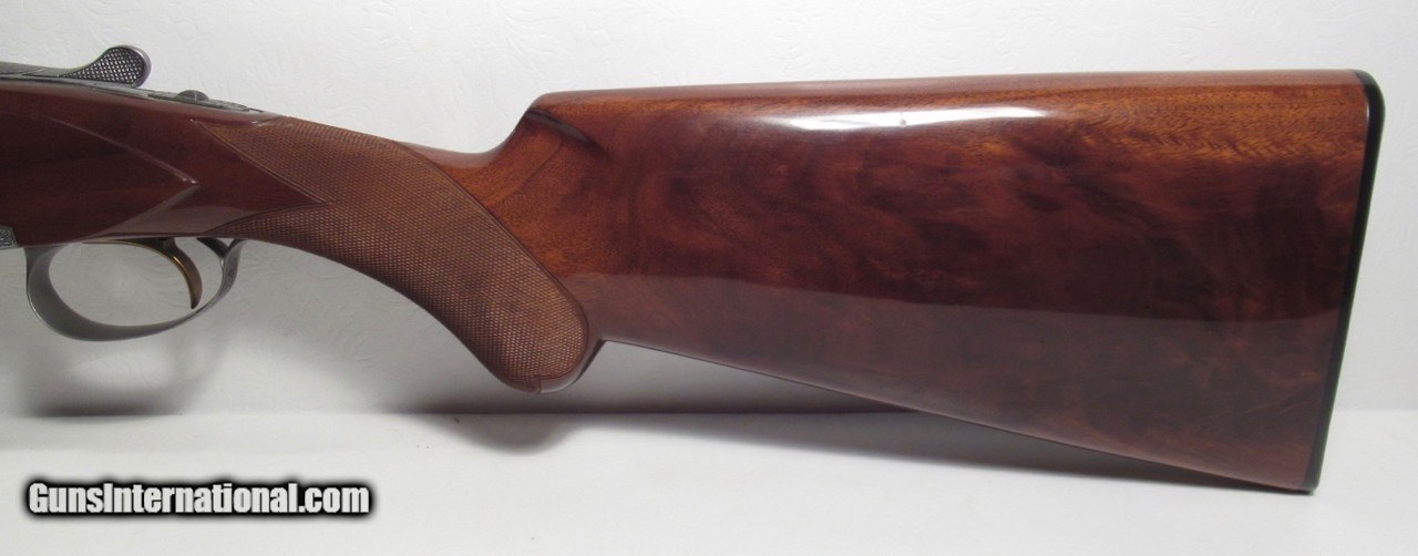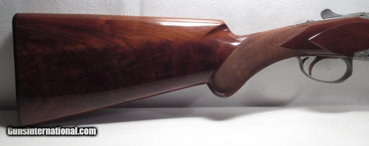 Description: Browning Superposed; Serial No. 1913F8; Diana Grade; 28 Gauge; Made 1968; 26 ½” Barrels Choked Extra Full and Modified; Near Perfect Condition with only tiny mars on stock; NO EVIDENCE of SALT WOOD Whatsoever; Very Rare Browning; Short Tang and Round Knob; G.C. Argnel Engraved; See All Photos for Condition; No Texts. Call or Email Only; PERSONAL PROPERTY of Harold Wieser; Price: $11,750 + $60 S&H; Price includes insured shipping; return policy: three days inspection from the date the item is received; full refund of shipping both ways ONLY IF THE ITEM IS MISREPRESENTED. SOLD Manufacturer: Browning Model: O/U Serial Number: 1913F8 |
