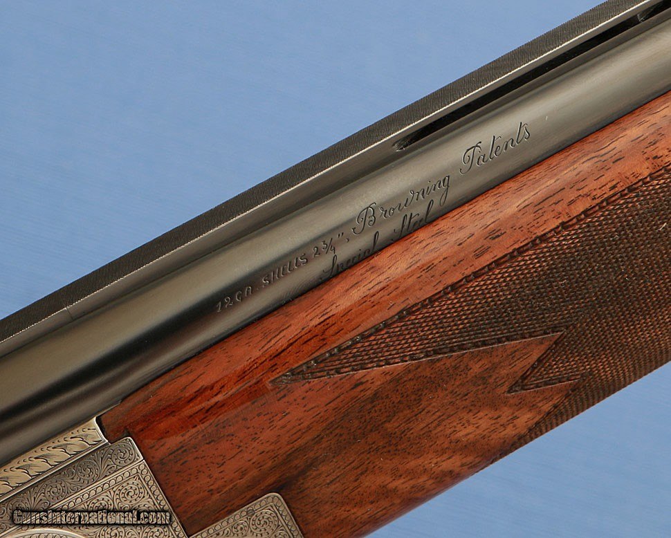Description: 1973 - Browning Superposed "C Grade Exhibition" C3 Engraving Pattern - 12ga, 2-3/4", 28" Skeet / Imp. Cylinder (.006 / .011), LOP 14-5/8", Drop 1-5/8" to 2-1/2", Weight 7 lbs. 7 oz.
