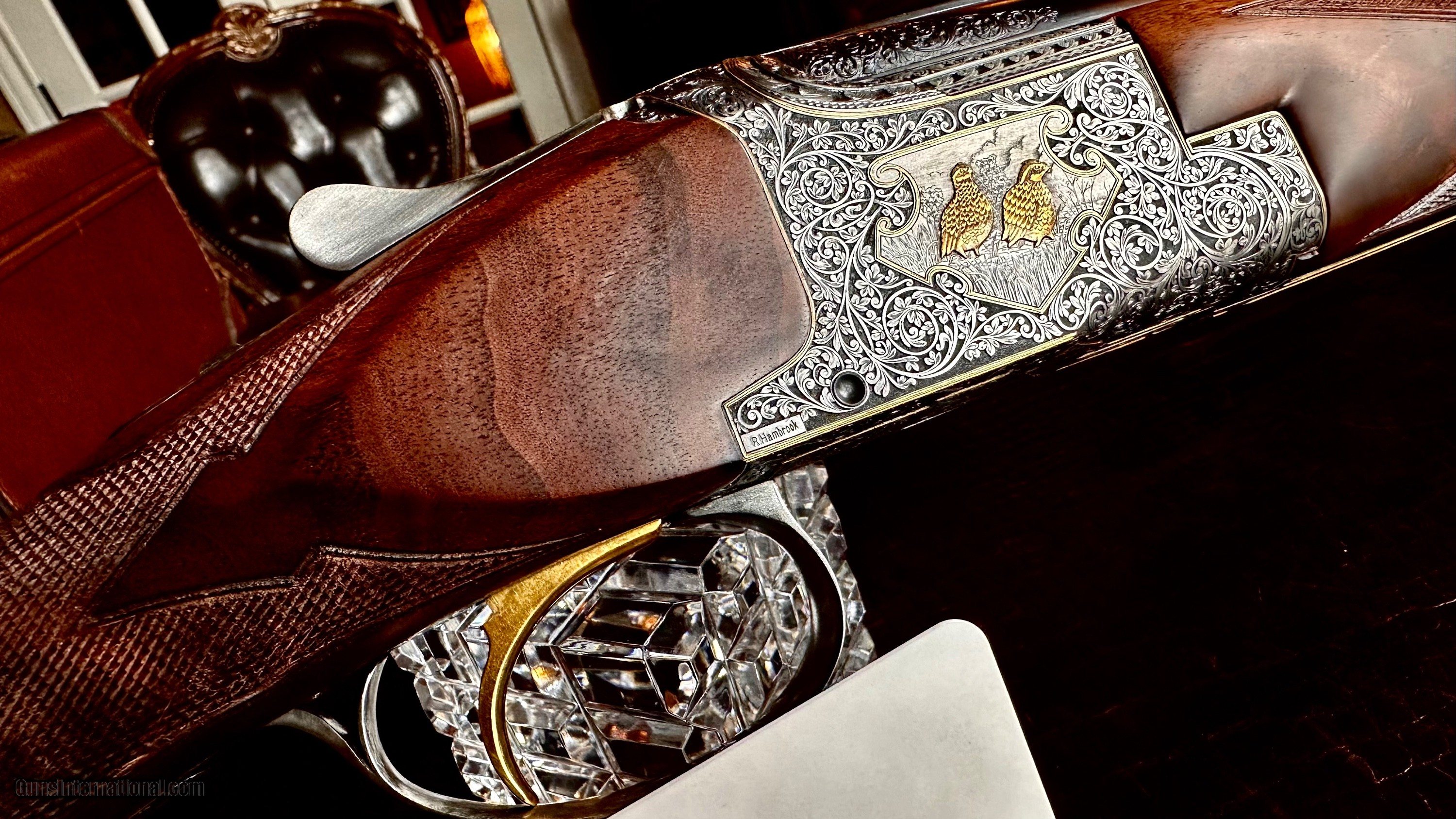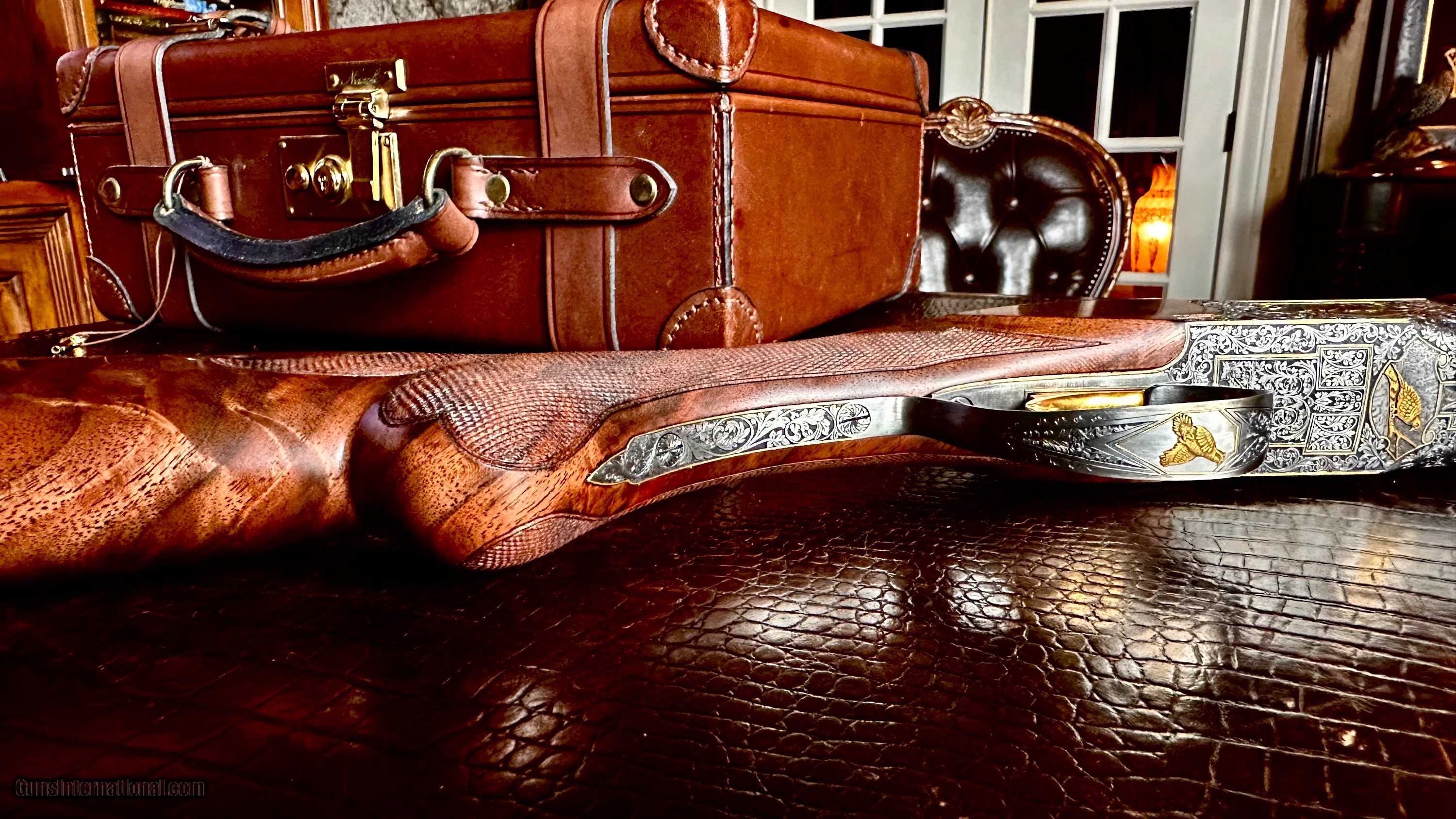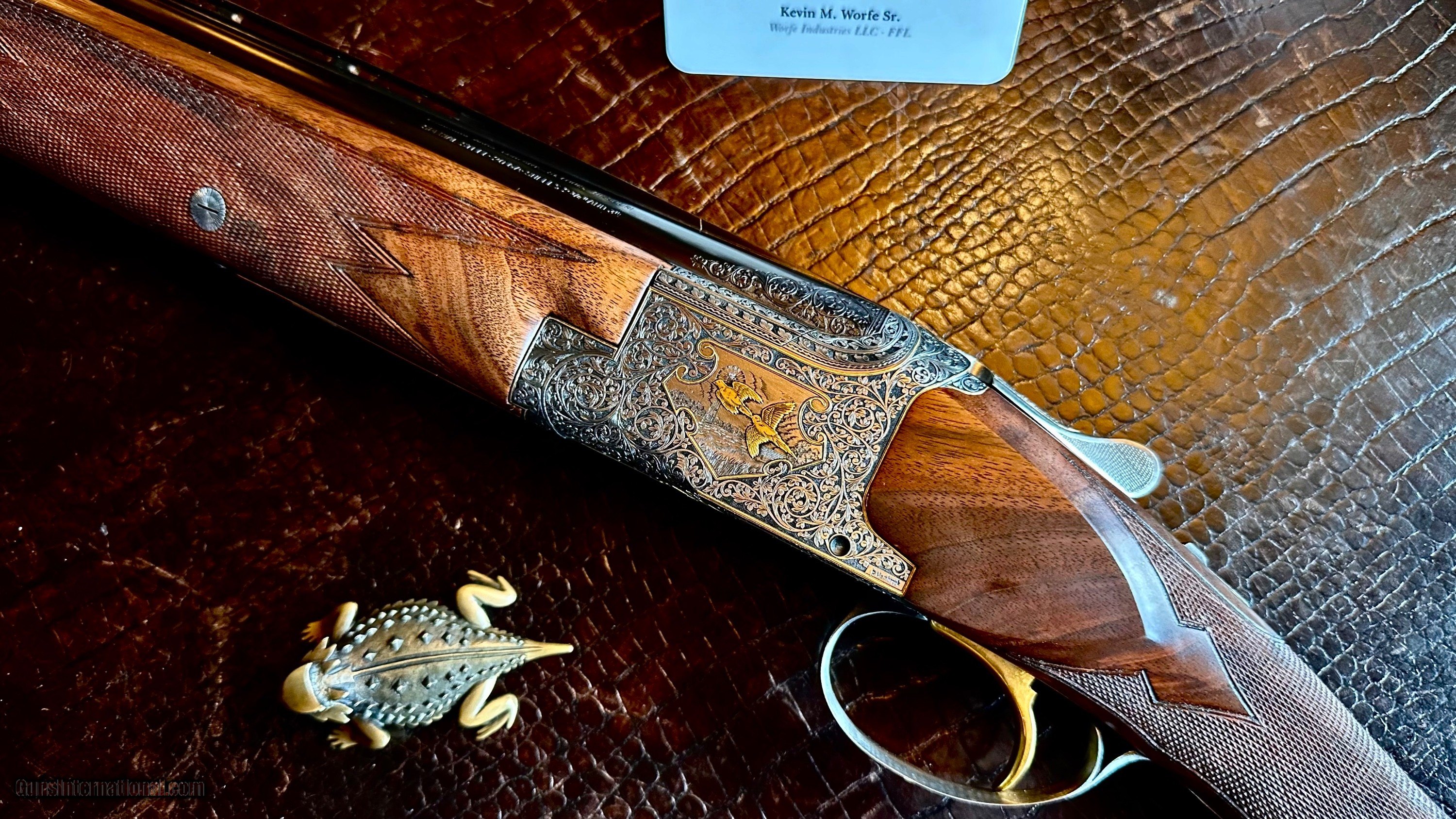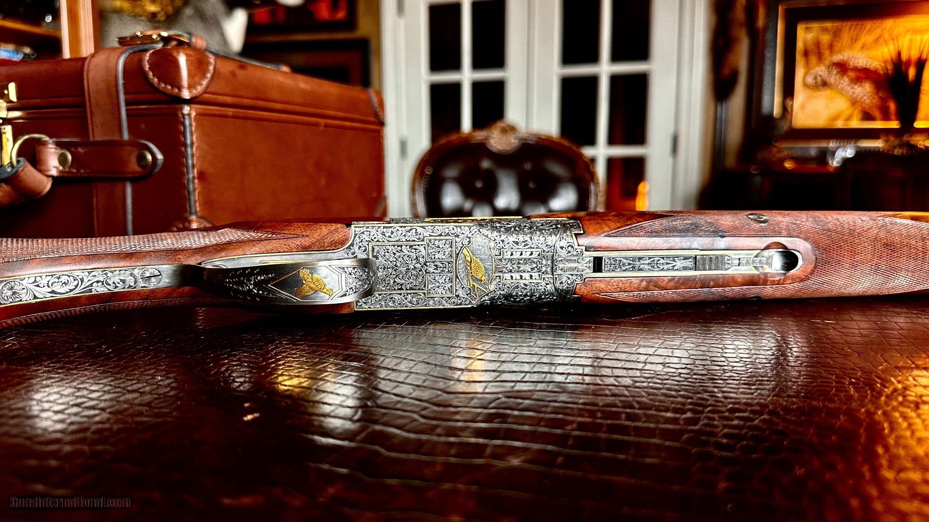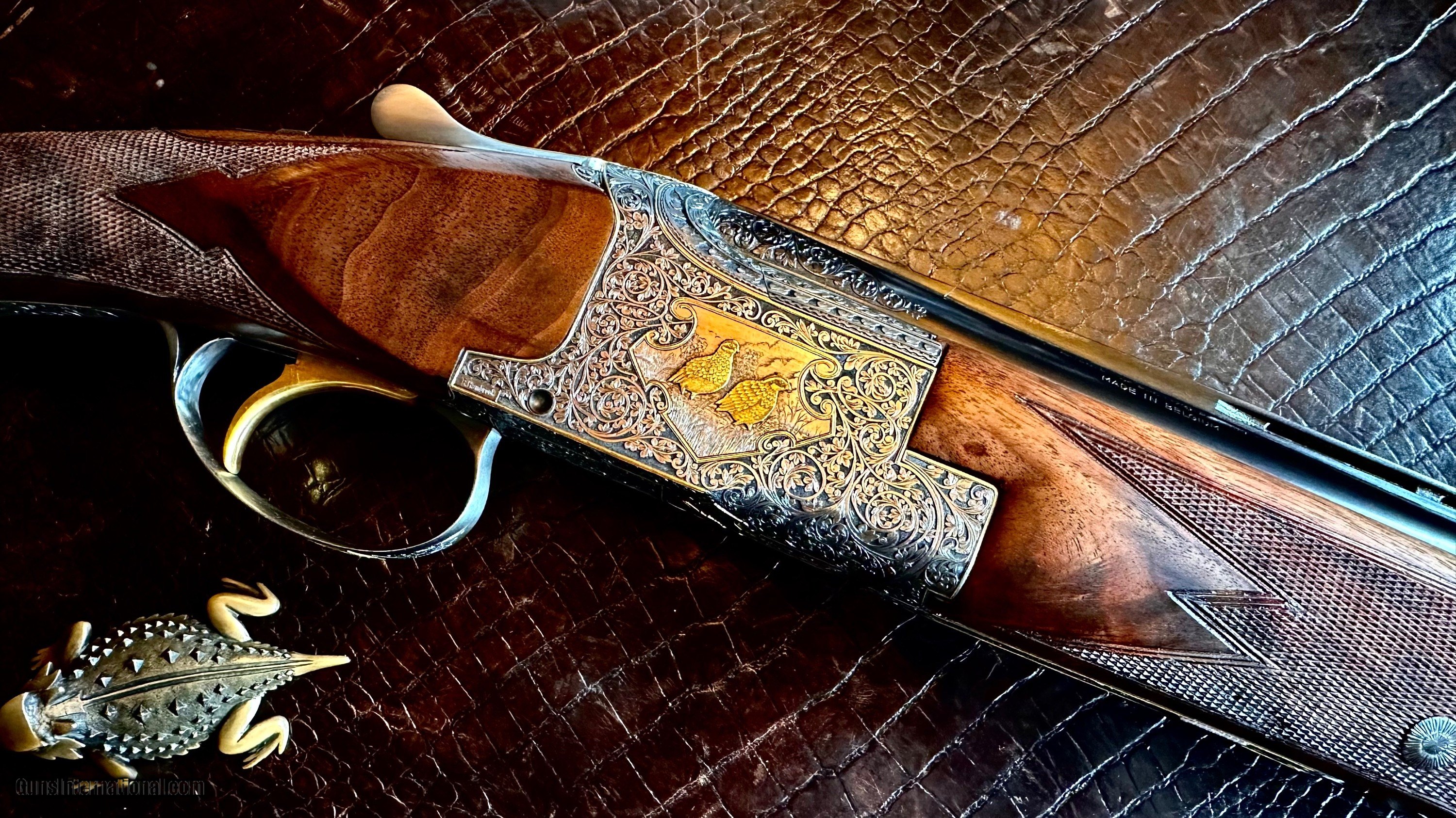 BROWNING EXHIBITION GRADE CUSTOM 20GA RKLT 28” M/F MASTER ENGRAVER R. HAMBROOK ORNATELY DETAILING THE SOUTHERN STYLE GAME SCENE