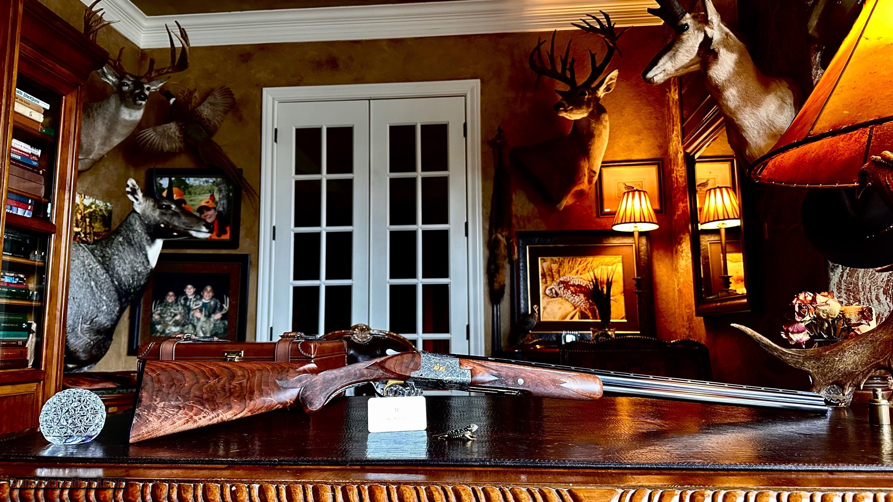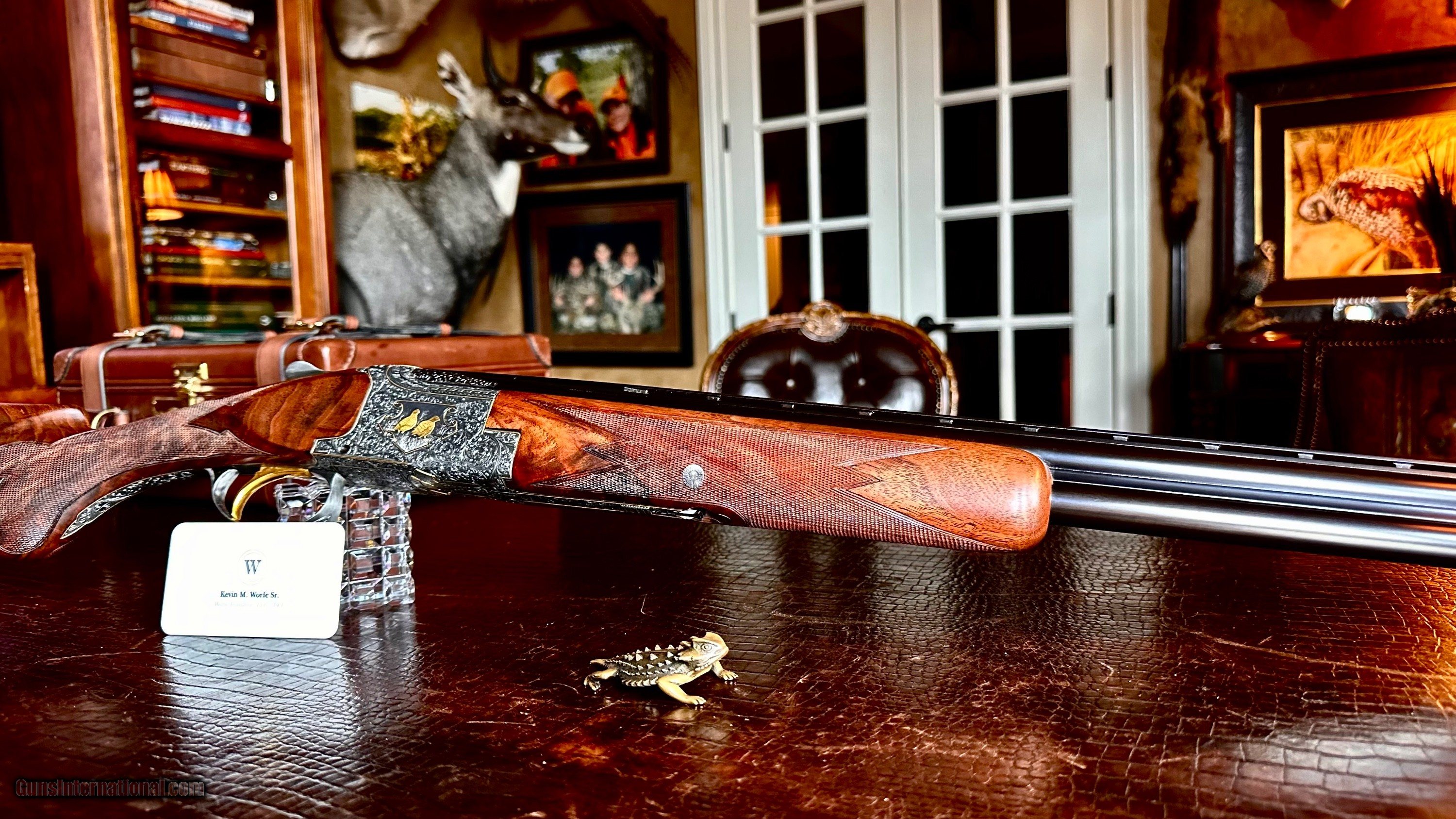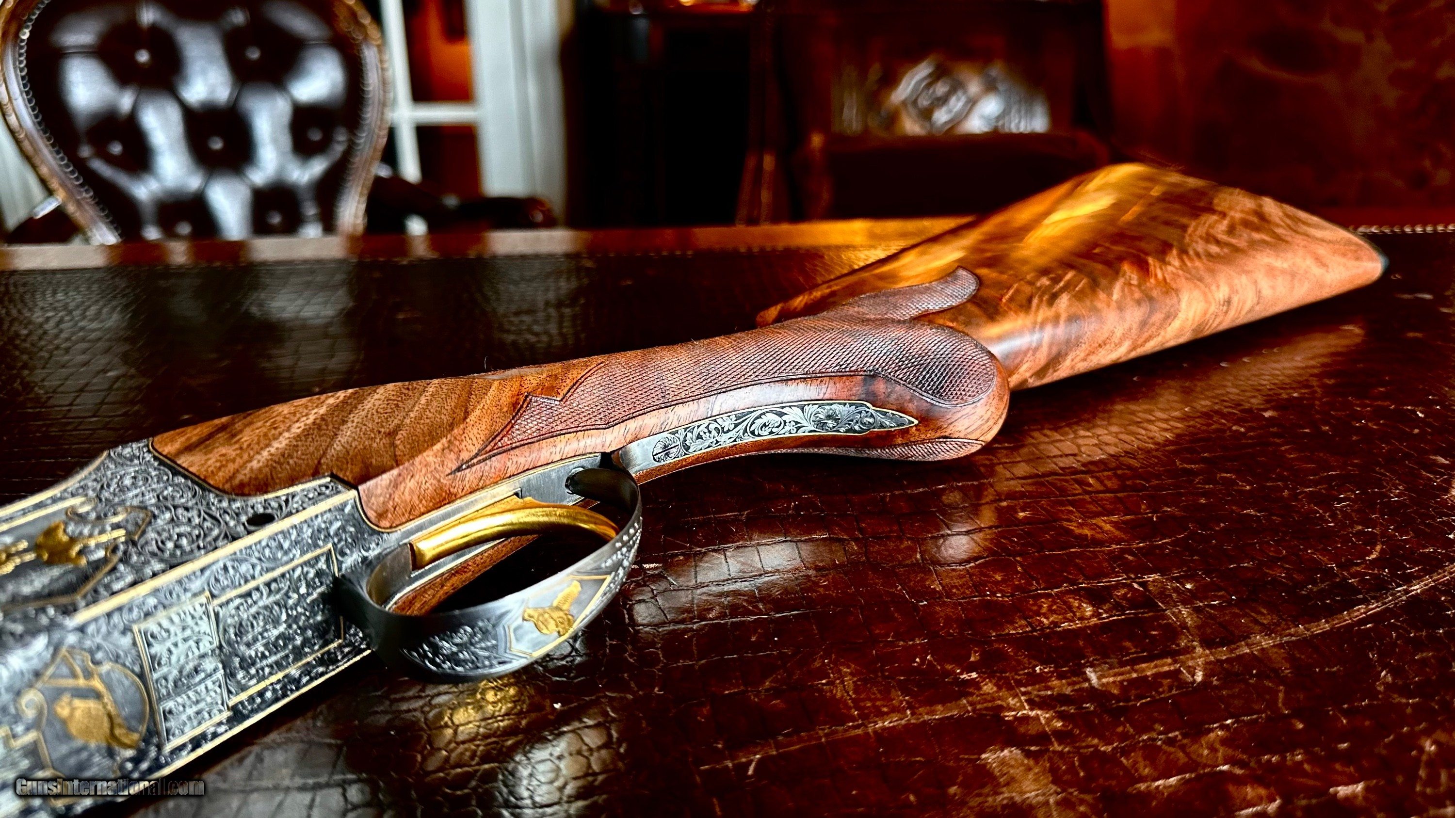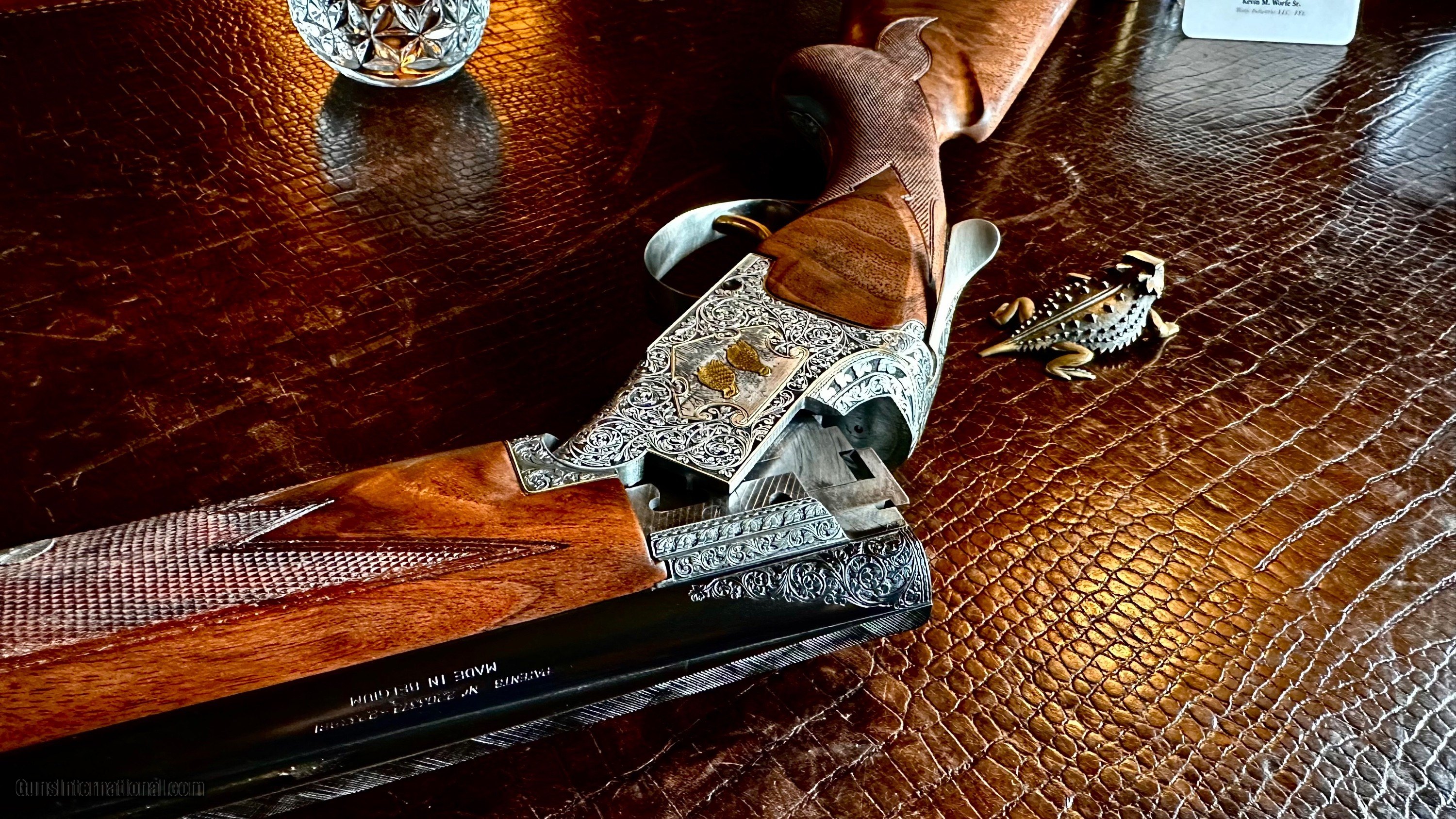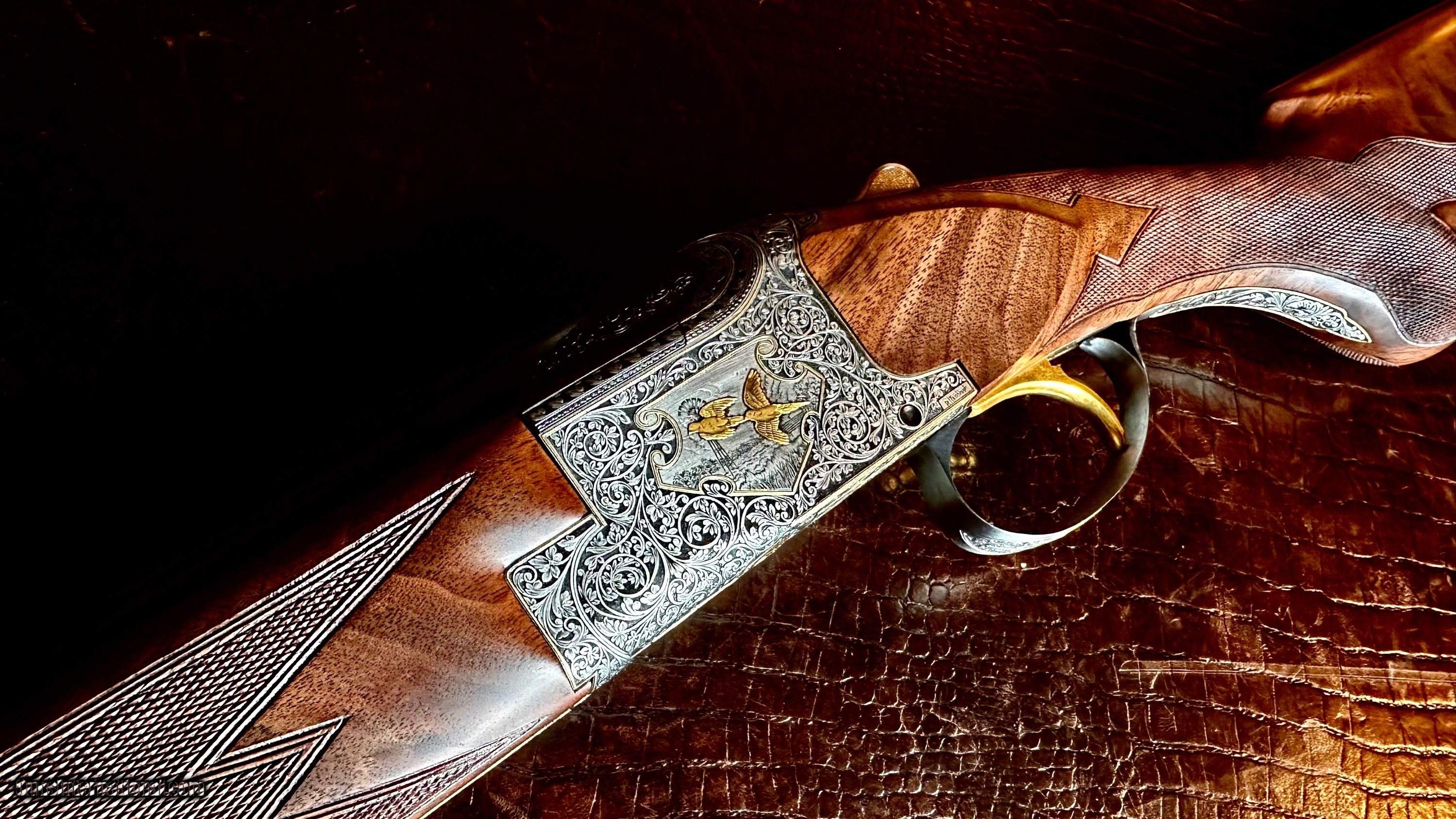 BROWNING EXHIBITION GRADE CUSTOM 20GA RKLT 28” M/F MASTER ENGRAVER R. HAMBROOK ORNATELY DETAILING THE SOUTHERN STYLE GAME SCENE