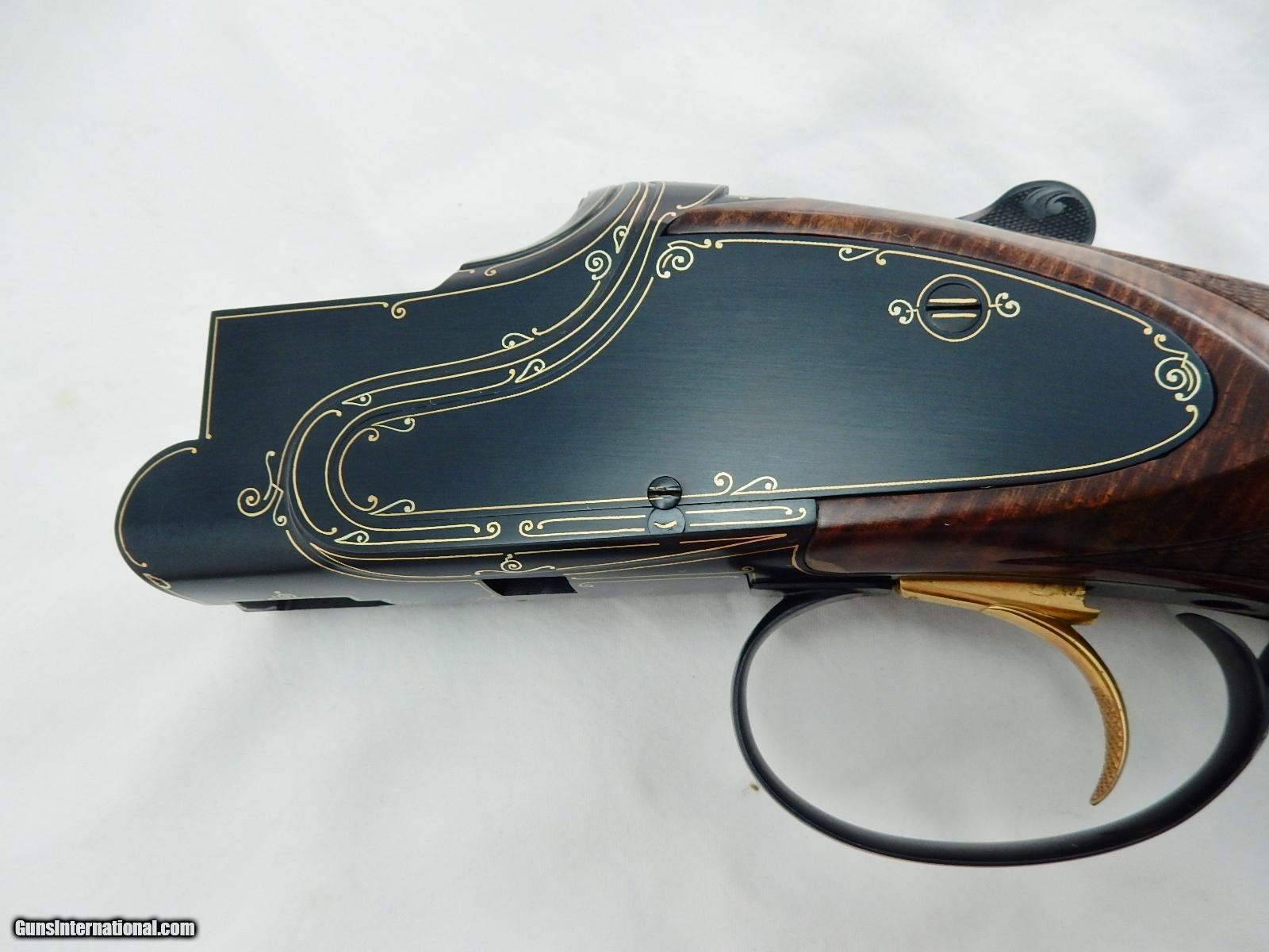 Description: This is a Browning superposed 20 gauge with 28 inch improved cylinder and modified choke barrels. This gun is a C grade exhibition group F-7. There are only around 230 C grade exhibition guns made. Features side plate, scalloped frame, carved fences, checkered trigger, exhibition grade wood, checkered butt, hand filed rib, 28 inch barrels and 3 inch chambers. This gun is 100% new in Browning crazy horse all leather case. Serial # is C160. Buyer pays 320.00 shipping. Thank you. 39-13-14 SOLD |