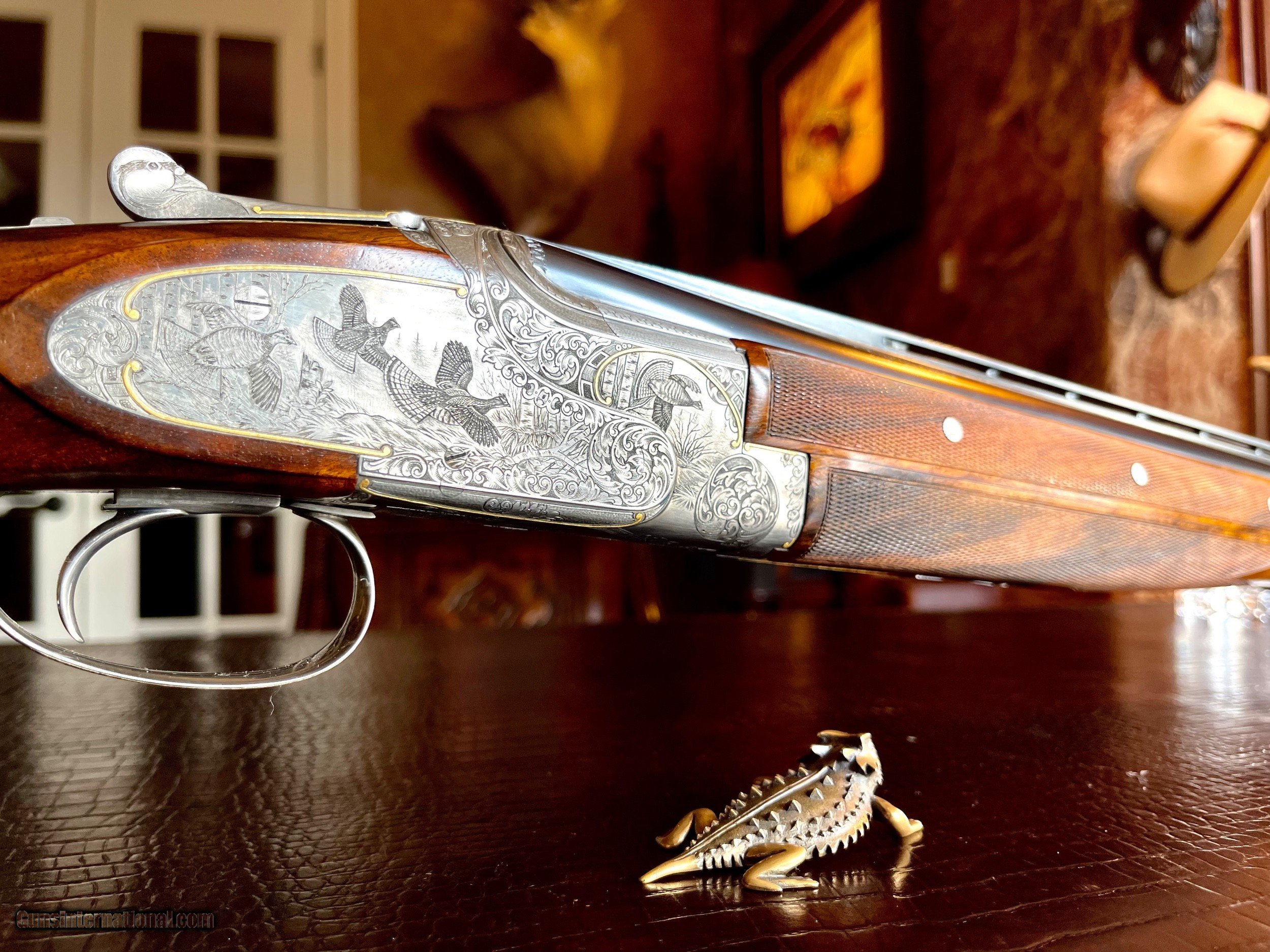Description: *****SOLD*****SOLD*****SOLD***** Browning Superposed Sideplated 20ga - R. Capece & A. Bee Masterpiece - Three Piece Forend - The Finest All Option Belgium Upgrade - Circassian Walnut - RKLT - Scalloped Frame - Bulino Engraved by the Master of the Sideplated guns of Belgium R. Capece - Upland Birds adorn this incredible piece of art - Rare in today's market to find a rich handmade Belgium made Browning - see below for dimensions and details - Chokes Stamps: ***/**- "CYL/IC" - Choke Micrometer readings: .002/.011 which converts to LTSK and IC ********SCROLL DOWN FOR SPECS******** Quillen & Worfe Fine Guns Disclosures and Important Information: