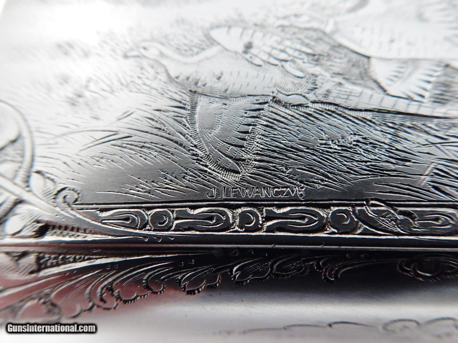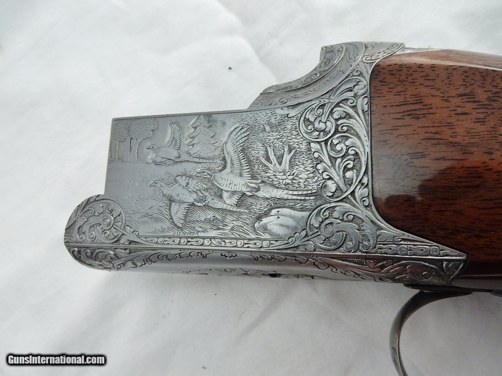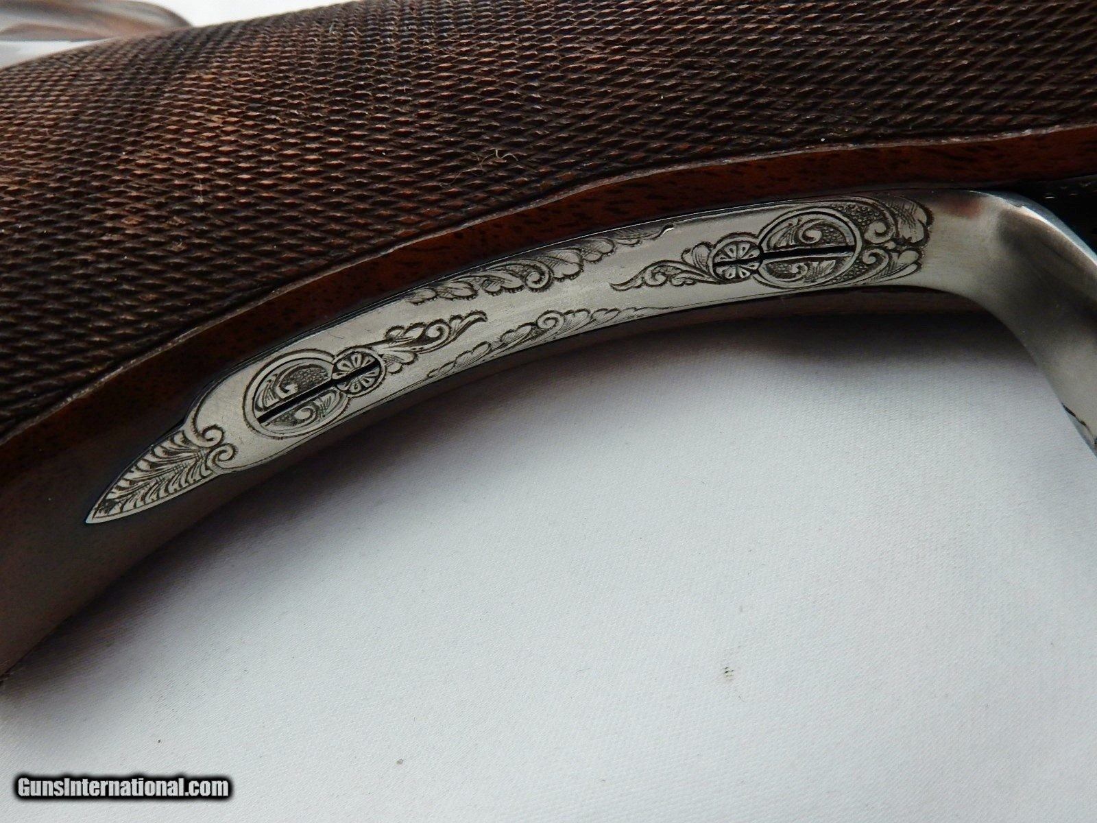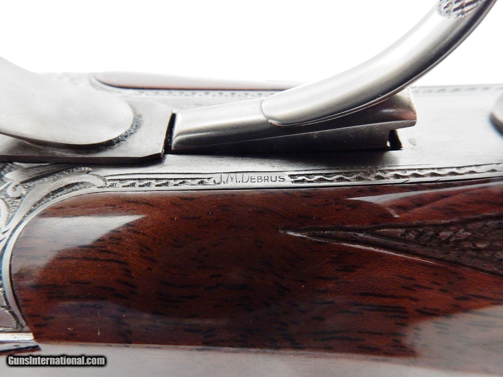 Description: This is a Browning superposed 12 gauge with 28 inch full and full choke barrels. This is a C exhibition Heidelberg D4G grade. Options are checkered butt, checkered trigger, carved fences, Schnabel forearm and hand filed rib. This gun is 99% in the case. Engraved by Jules Lewanczyk and Jean Marie Debrus. Serial # is C-208. DAC 1 1/2 DAH 2 3/8 LOP 14 1/4 Wt. 7lb 1oz. Buyer pays 160.00 shipping. Thank you. 51-2-2 SOLD |