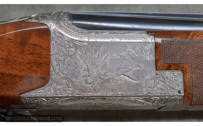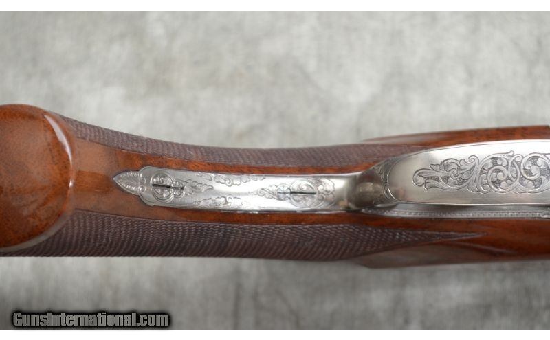 Description: Deep engraving, superior quality wood and finest quality checkering set this Superposed above the rest.The engraver's mark "J.LEWANCZ" is found at the tip of the hen's wing on the left side.The engraving patterns include well-rendered pheasants and waterfowl embedded in floral scrollwork.The checkered high grade walnut stock features pronounced fiddle and feather grain patterns.It was manufactured in 1977 according to the factory letter included. SOLD Manufacturer: 1977. Caliber Info: 12 Gauge. Chambers: 2 -3/4 inch (70 MM). Metal Condition: Excellent. If this has been fired, it doesn't show. Wood Condition: Excellent. Bore Condition: Shiny and bright. Barrels: 28 inch blue with a vent rib. Triggers: Factory selective trigger. Stock: Checkered high grade walnut with well-matched grip cap. Stock Dimensions: LOP: 14-1/4 inches; DAC: 1-1/2 inches; DAL: 1-3/4 inches. Fore End: Matching checkered walnut with Schnabel. Butt Pad: Checkered walnut. Weight: 7 lb. - 1 oz. Sights: white bead on low ventilated rib. Chokes: Fixed Full choke in both barrels. Extras: Browning case, factory letter of authenticity and factory papers. Item Location: Rogers,, MN |