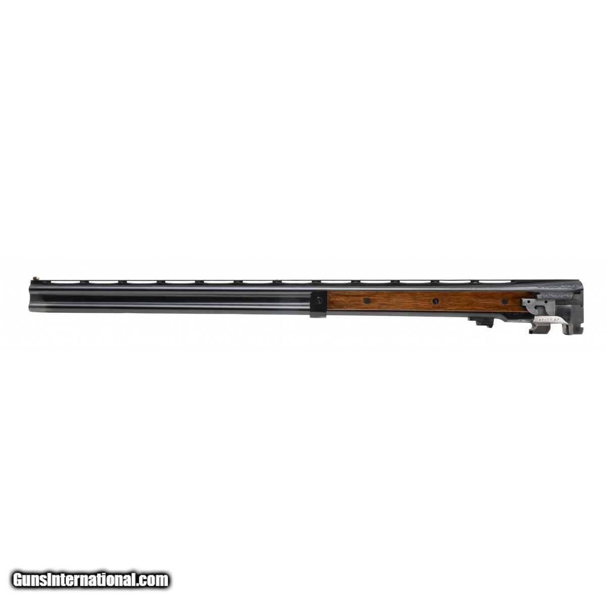 Description: " SN: 81370S7. Made in 1967. 12/20/.410 Gauge 3 barrel set with 26"" skeet choked vent rib two bead barrels. Bores are all shiny and in very good condition. Superposed Midas grade assembled 3 barrel set. The extra barrels have been added and numbered to match. LOP is 14.5"", 1.5"" drop at the nose and a 2.6"" drop at the heel, lever is right of center. Finish is in excellent condition with beautiful factory engraving done by A. Dierckx and presentation grade custom walnut stock set. Comes with Browning case. A beautiful set, in overall near excellent condition. (Consignment) SOLD |