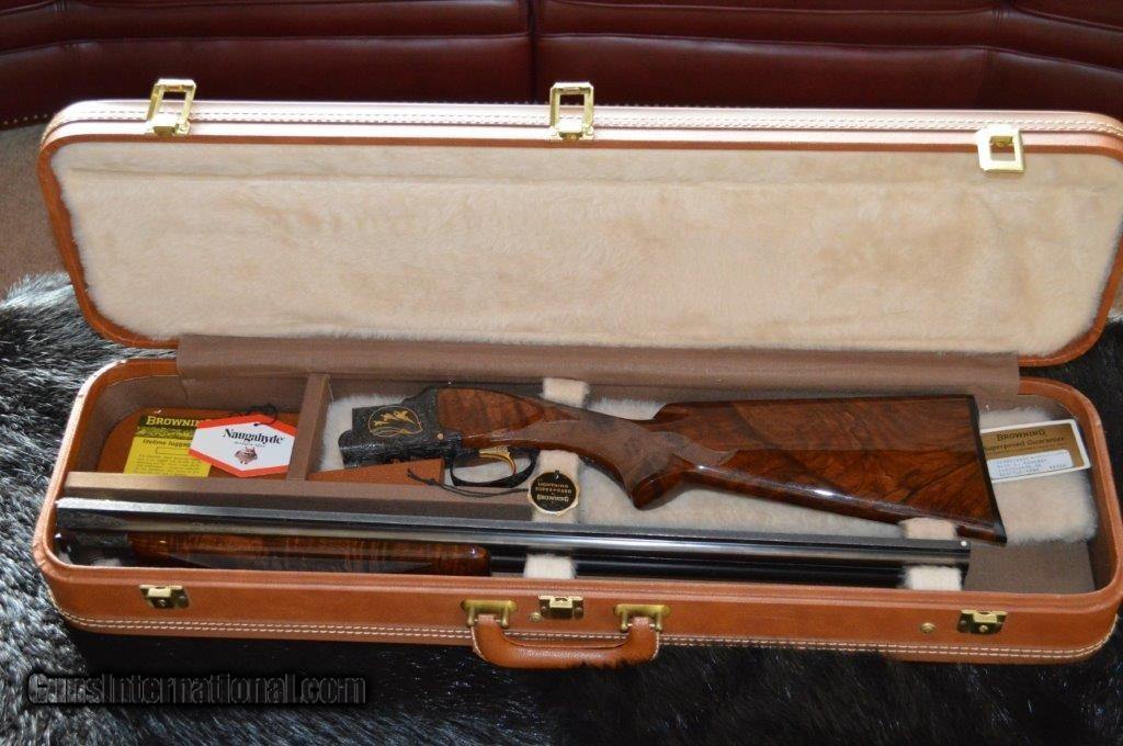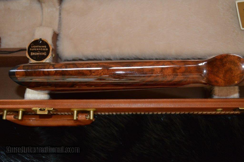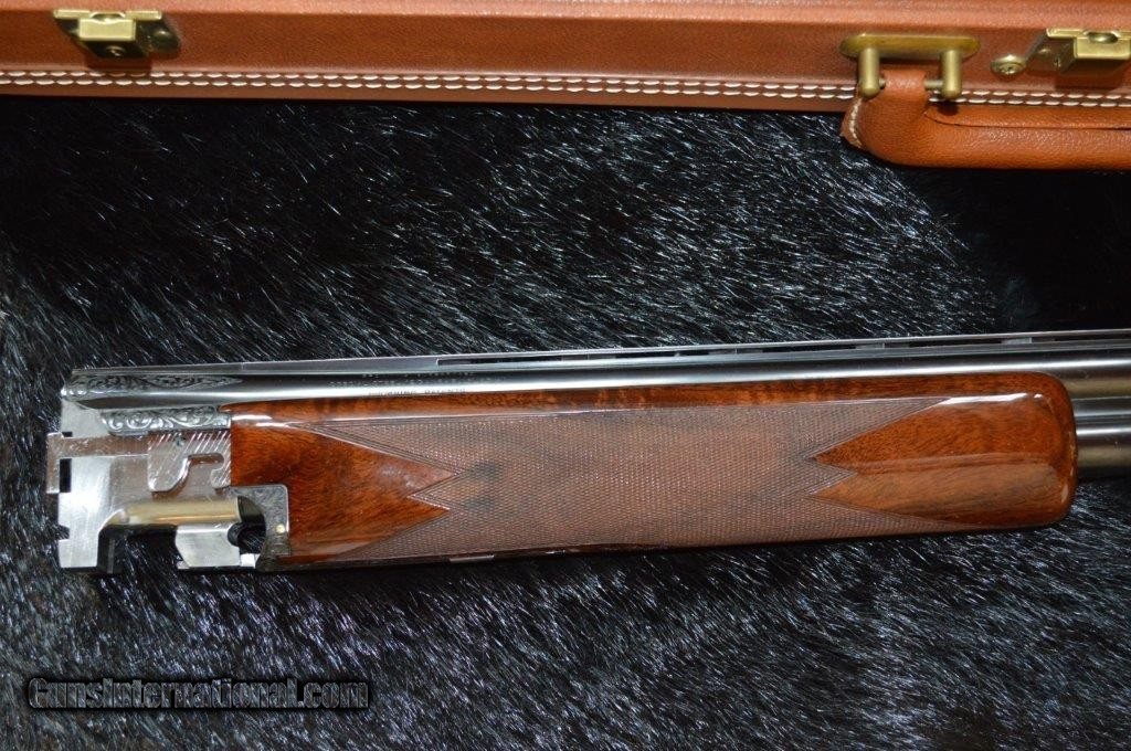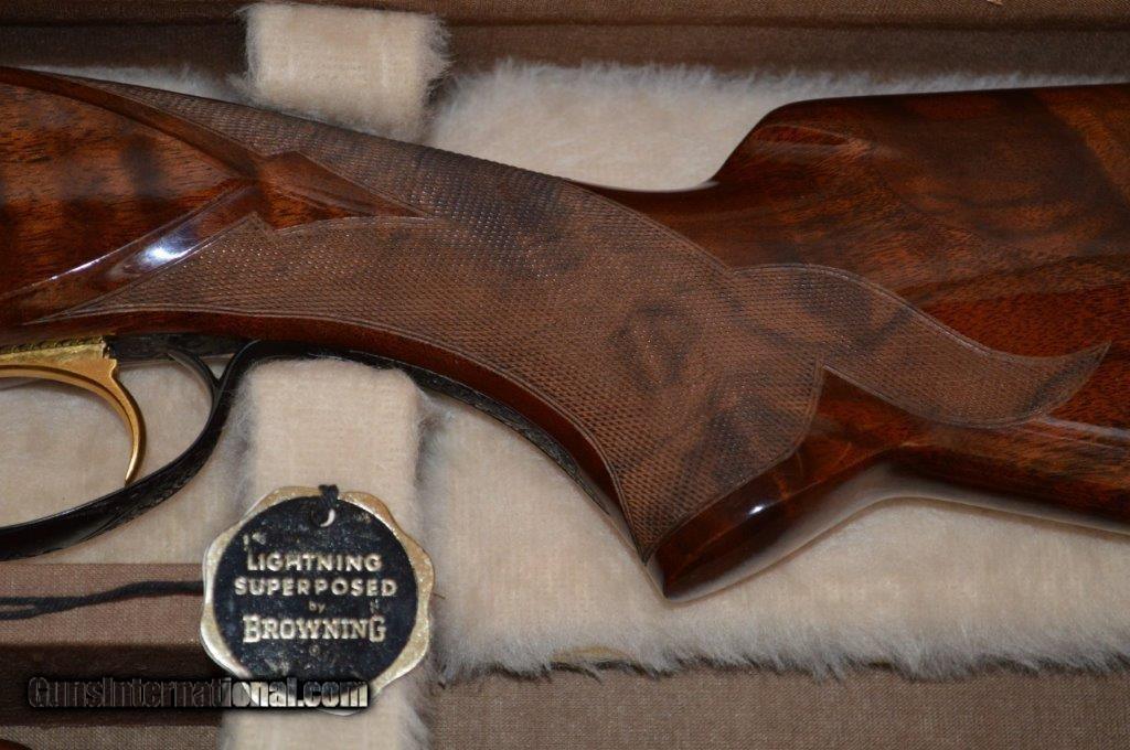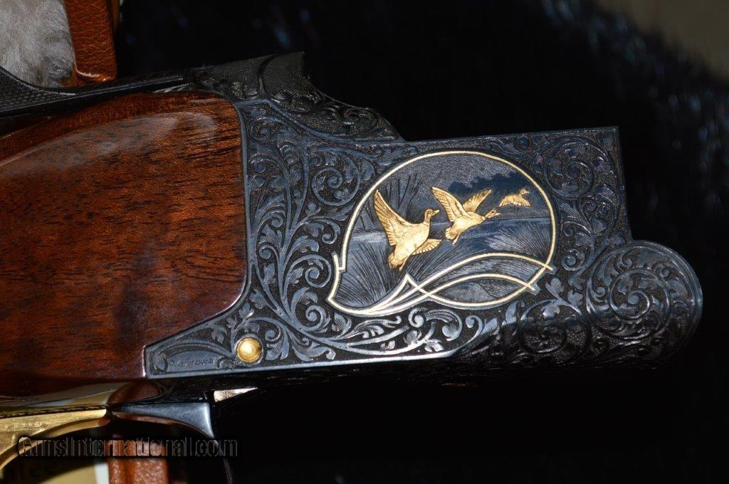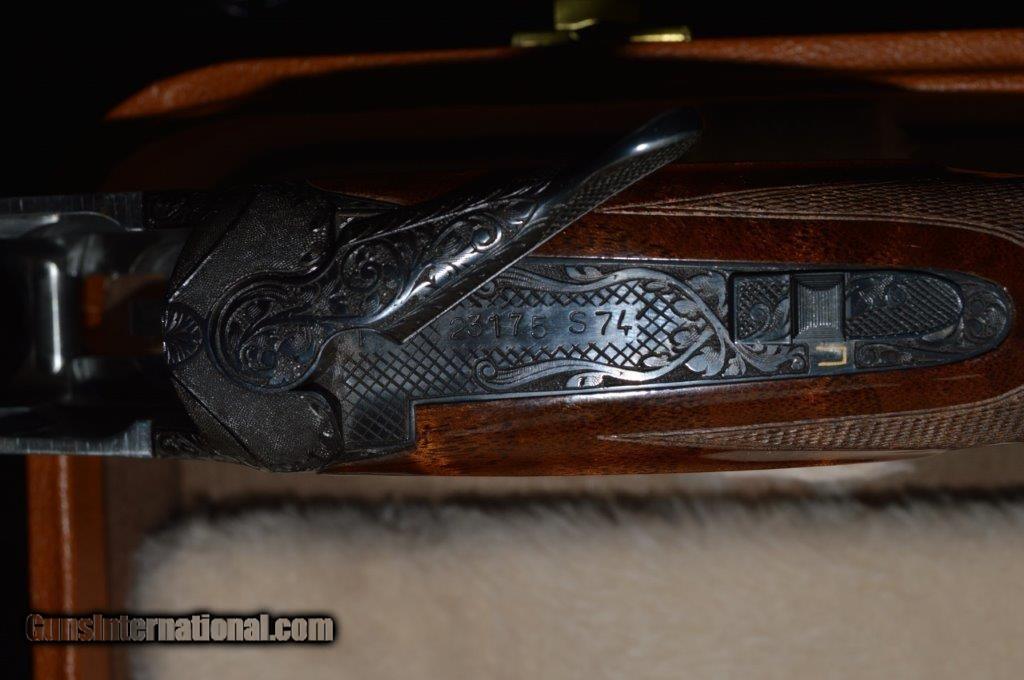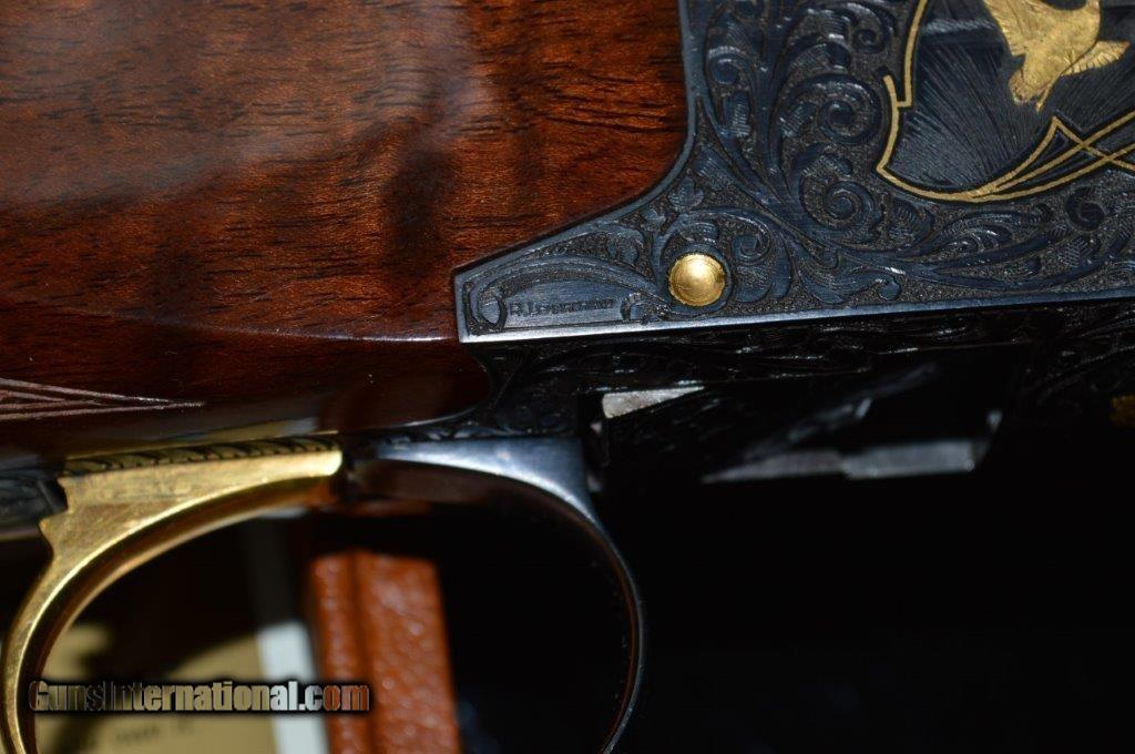Description: Sold pending funds***The Browning Superposed are hand-fitted shotguns that were made by some of the best craftsman in Europe to Browning's high standard of excellence. And only master craftsmen and women were allowed to work on these wonderful examples of Browning’s finest offering. This Midas grade Superposed, in 12 ga, is a wonderful example of the best of the best. Made in 1974, after the salt problems had passed, this beautiful field gun is truly a great product of the Belgian craftsmen at their peak of artistic production, being only one of three 26-1/2" Midas grades made that year. This gun was engraved by lead engraver Rene Coenen, engraving the three 18 carat gold pheasants on the left side, and R Lemarchand did the three gold ducks on the right side. This is a long tang gun with one of the best figured stocks to be put on any Browning that displays checkering of 28 lines per inch terminating in a wing shape of flawless checkering at the back of the stock's grip. It has tasteful engraving on the top of the barrels with Full/Mod chokes and 2-3/4" chambers and hand filed top rib. It weighs 7lbs. and is all factory original and still 100% of its overall condition, showing no evidence of ever being shot. There is one minor handling mark from 45 years of admiring this gorgeous piece in the left center of the stock. It comes in a period Airways case that was purchased new with the gun. Highly desirable and wonderfully built to last, the value of these high grade Superposed guns continues to rapidly climb so there's no better time than the present to buy one. SOLD |