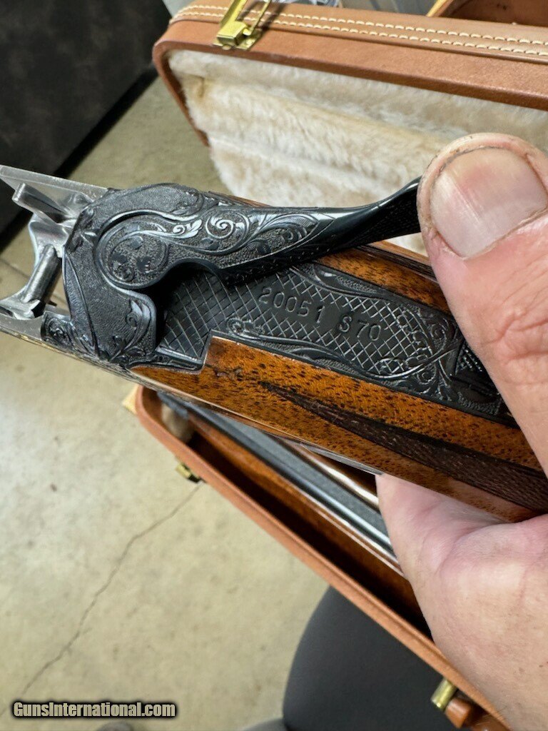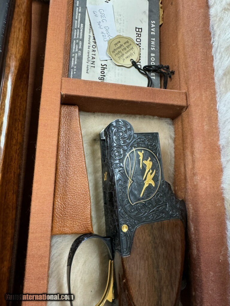 Description: Browning Superposed Midas. Like new. 26.5 inch skeet and skeet. Gun was lightly fired . Absolutely beautiful. No visibles signs of salt damage. Silver Nitrate test shows no salt. SOLD Shotgun Gauge: 12 Gauge Manufacturer: Browning Model: Midas Supoerposed Serial Number: 20051 S70 Barrel Length: 26.5 Bore: .724 Chambers: 2 3/4 Condition: Like new Metal Condition: Like new Wood Condition: 100% Bore Condition: Excellent Stock Comb: 1.5 Stock Heel: 2.125 Stock Cast: Neutral LOP: 14.5 Chokes: skeet over skeet Case: Hamilton Gun Case |