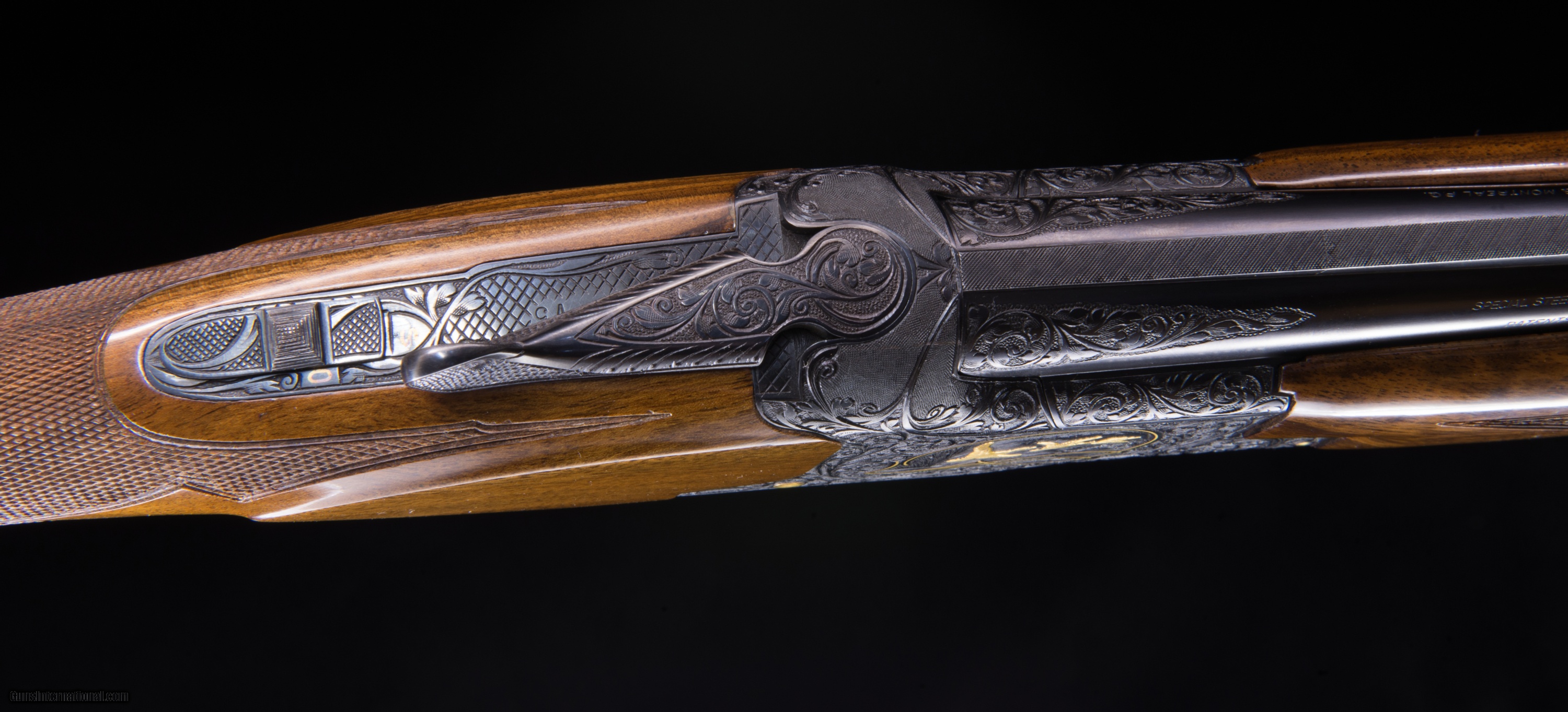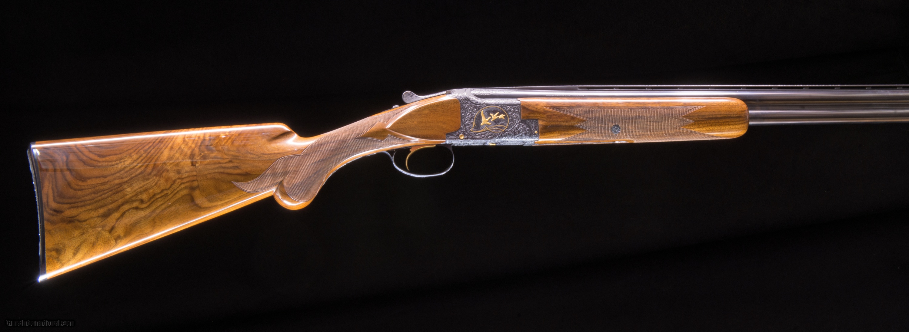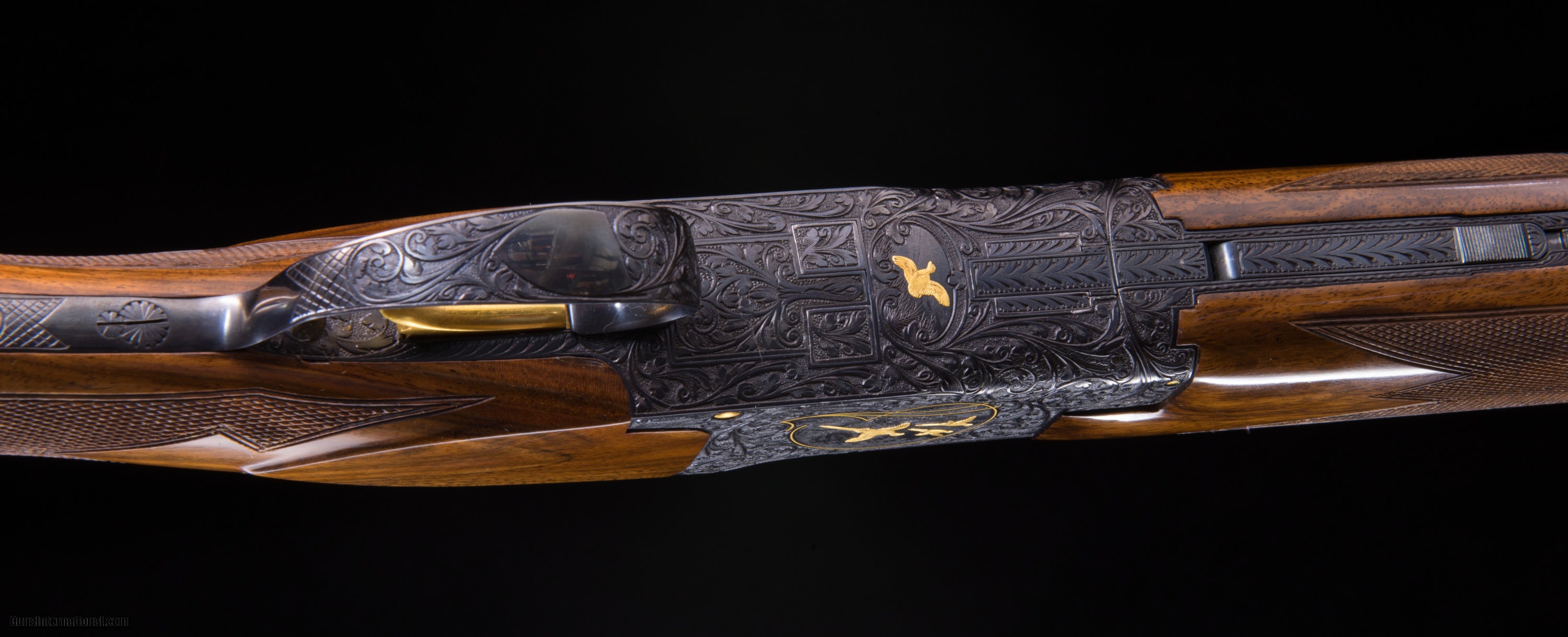 Description: Hammerless Sidelocks - *** Note: To see this gun with high resolution photos and a zoom-in feature, go to the vintagedoubles main site and search for the gun ID: 4082 or browse the main site to see our full gun collection. SOLD Manufacturer: Browning Midas Grade 20g~(Belgium made) Model: None Serial Number: 38498 Ejectors: Yes Barrels: 26 3/8 Barrel Type: Steel Action: Over under Gauge Info: 20 gauge Stock Comb: 1 7/16 Stock Heel: 2 3/16 Stock Cast: 1/8 LOP: 14 3/8" to original Weight: 6 lbs. 7oz. Choke Left: Over .022 Choke Right: Under .015 Proof:Nitro: 3 Minimum Wall Thickness Left: Over .038 Minimum Wall Thickness Right: Under .040 |