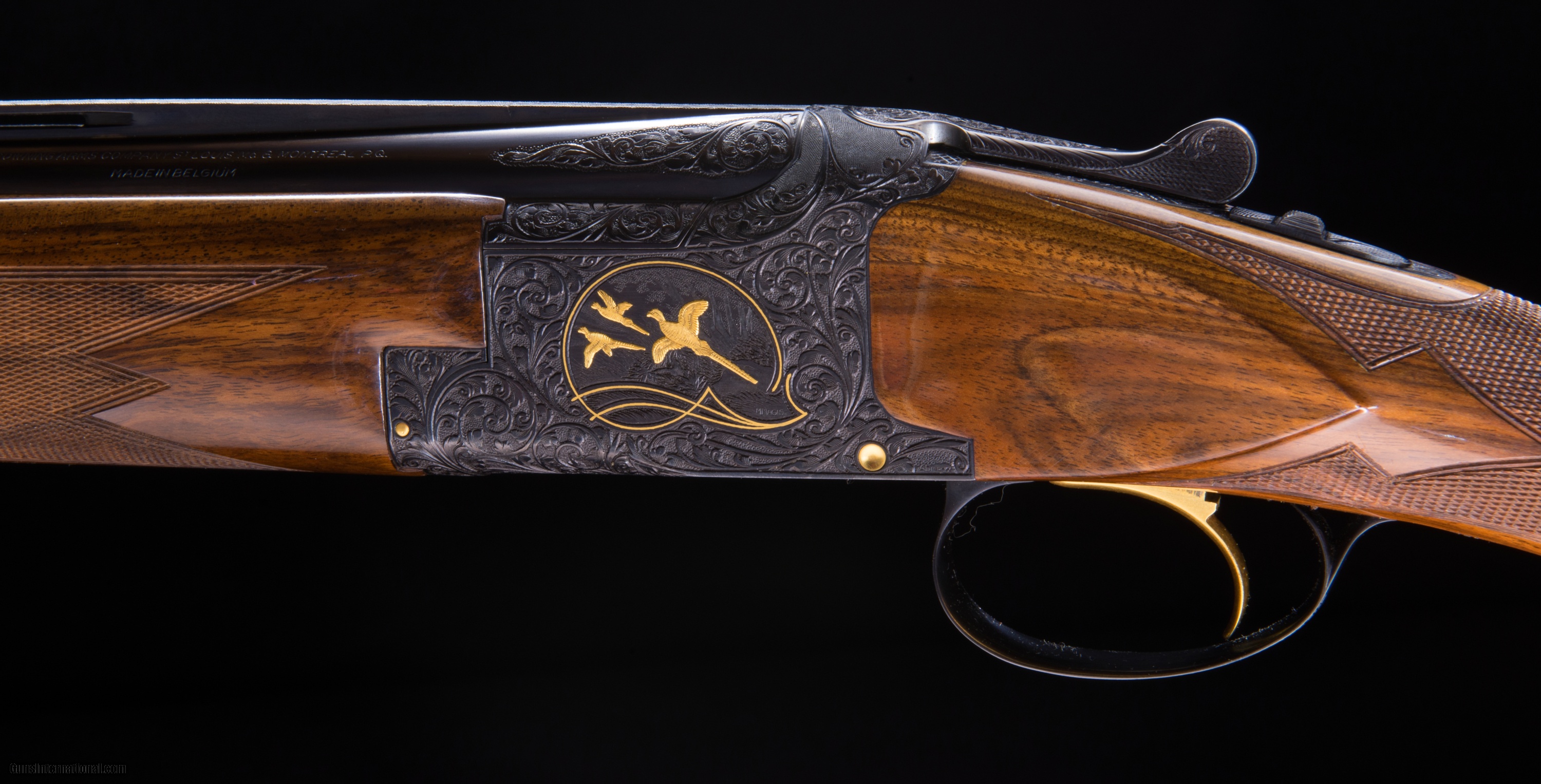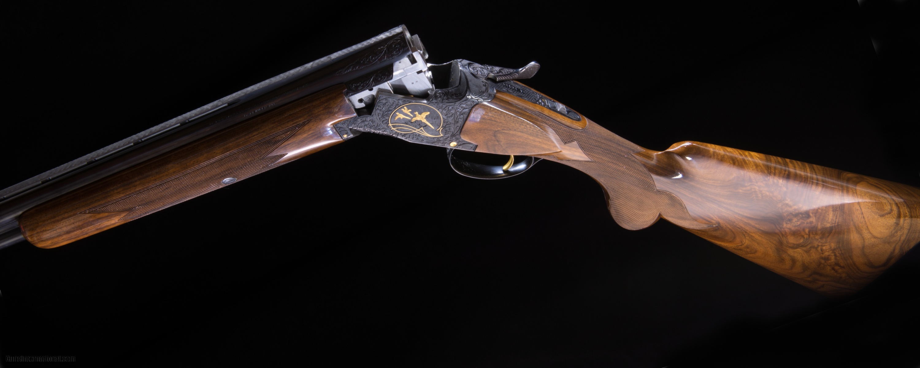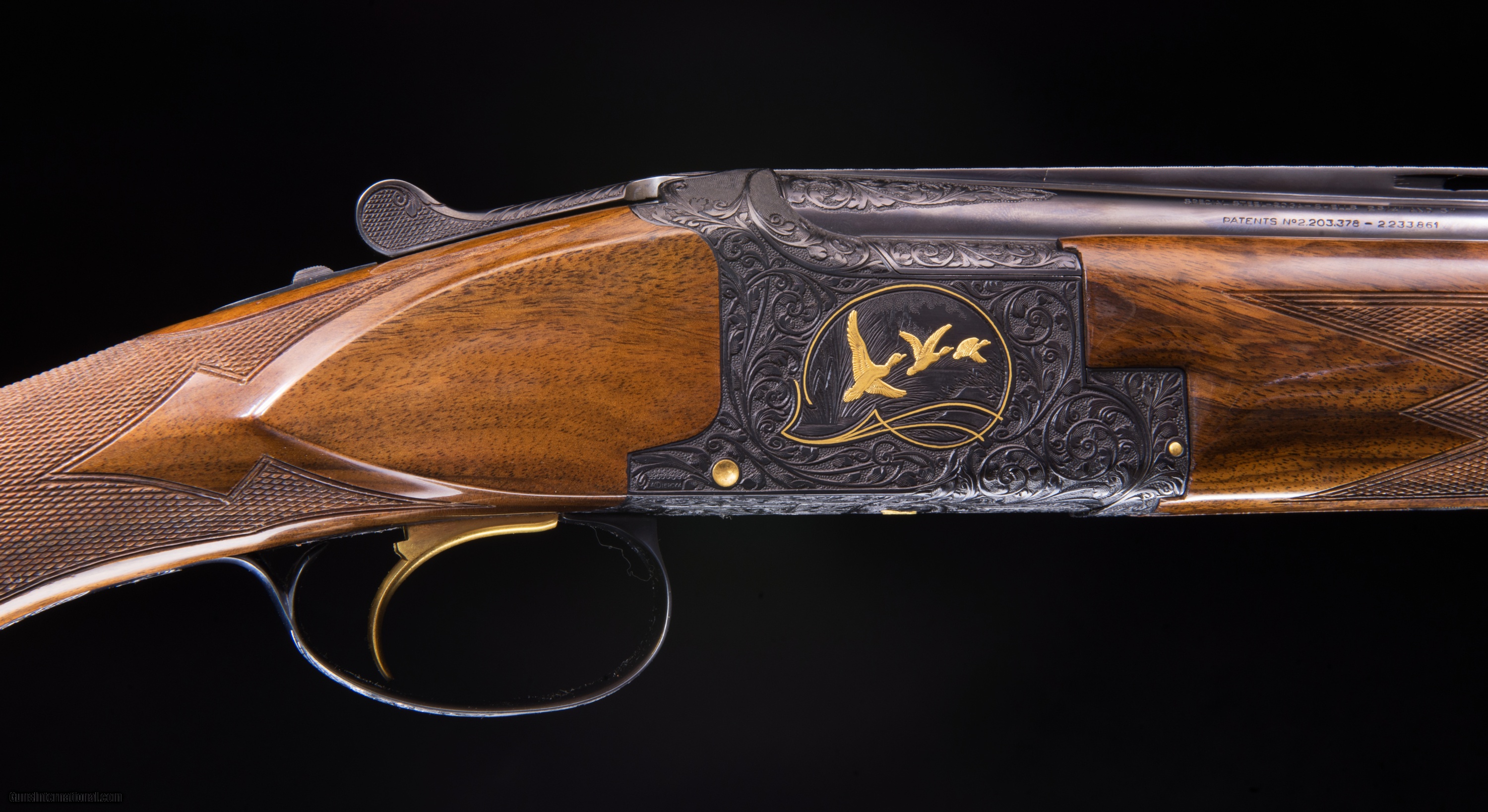 Description: Hammerless Sidelocks - *** Note: To see this gun with high resolution photos and a zoom-in feature, go to the vintagedoubles main site and search for the gun ID: 4082 or browse the main site to see our full gun collection. SOLD Manufacturer: Browning Midas Grade 20g~(Belgium made) Model: None Serial Number: 38498 Ejectors: Yes Barrels: 26 3/8 Barrel Type: Steel Action: Over under Gauge Info: 20 gauge Stock Comb: 1 7/16 Stock Heel: 2 3/16 Stock Cast: 1/8 LOP: 14 3/8" to original Weight: 6 lbs. 7oz. Choke Left: Over .022 Choke Right: Under .015 Proof:Nitro: 3 Minimum Wall Thickness Left: Over .038 Minimum Wall Thickness Right: Under .040 |