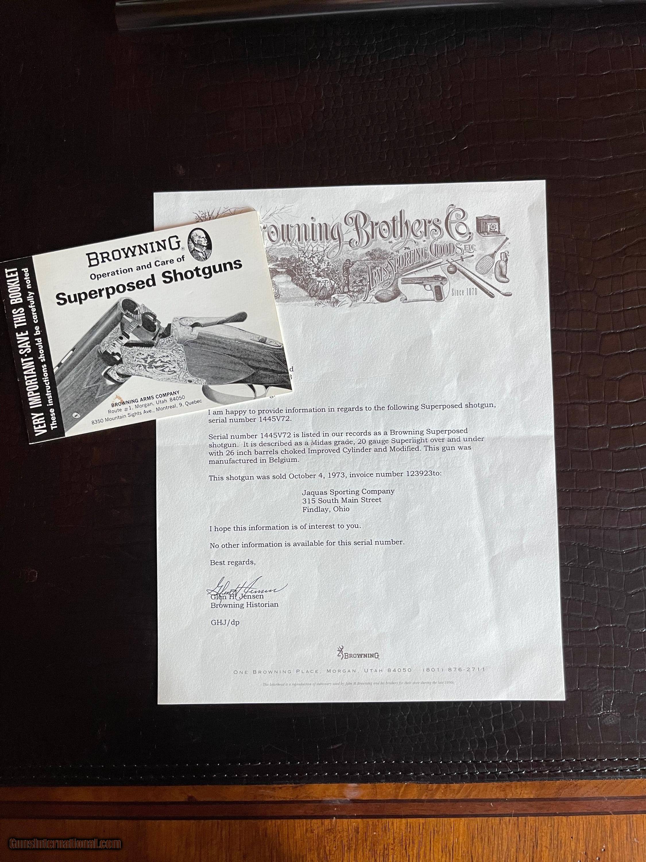 Browning Midas Superlight 20ga - IC/M - 99% - First Year Production #1 of 7 made in 1972 - The Finest Exhibition Grade Wood - Factory Letter