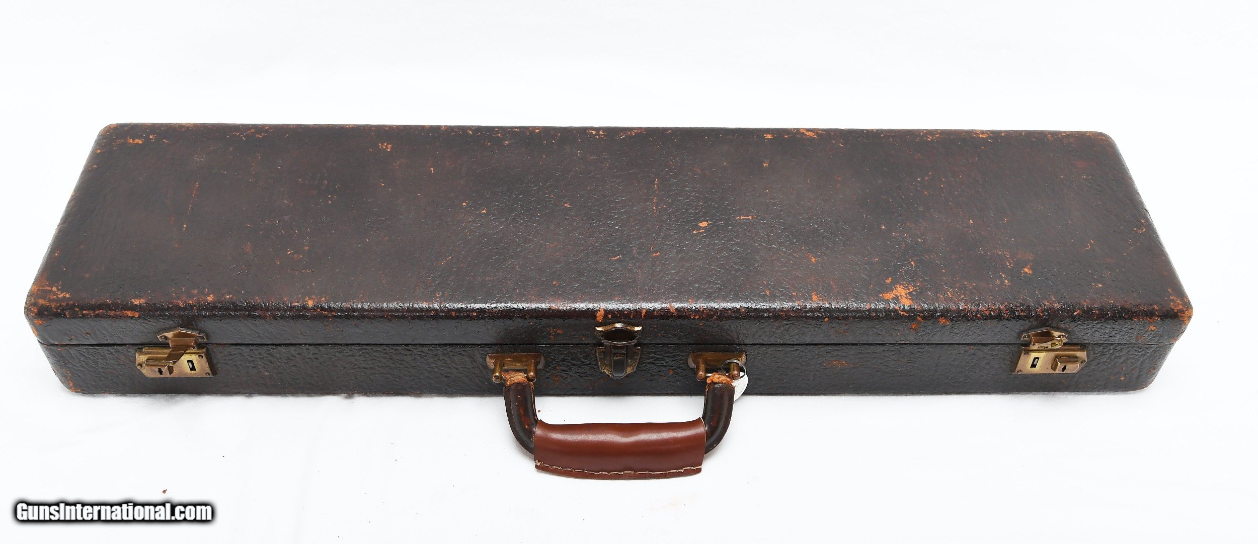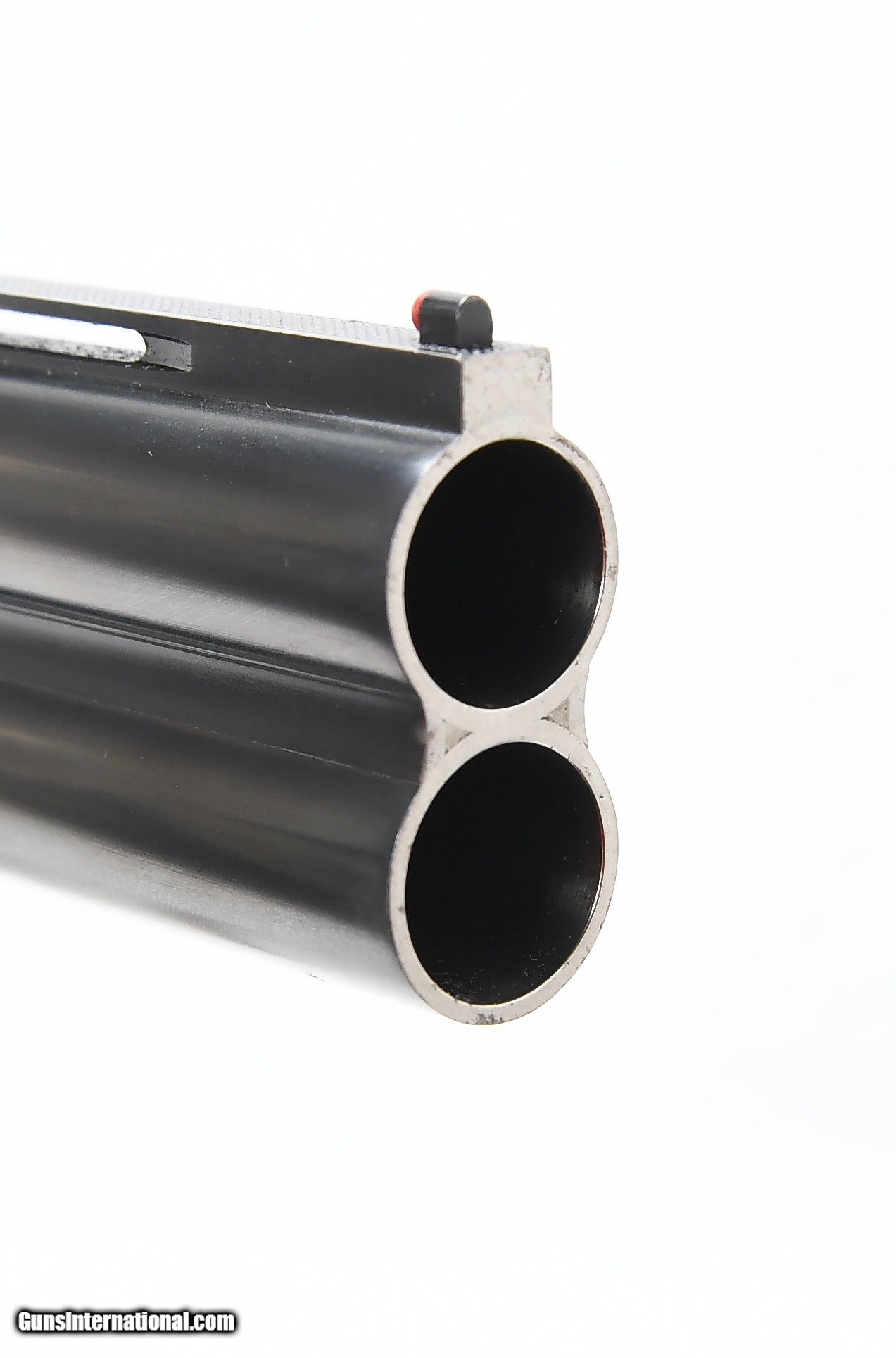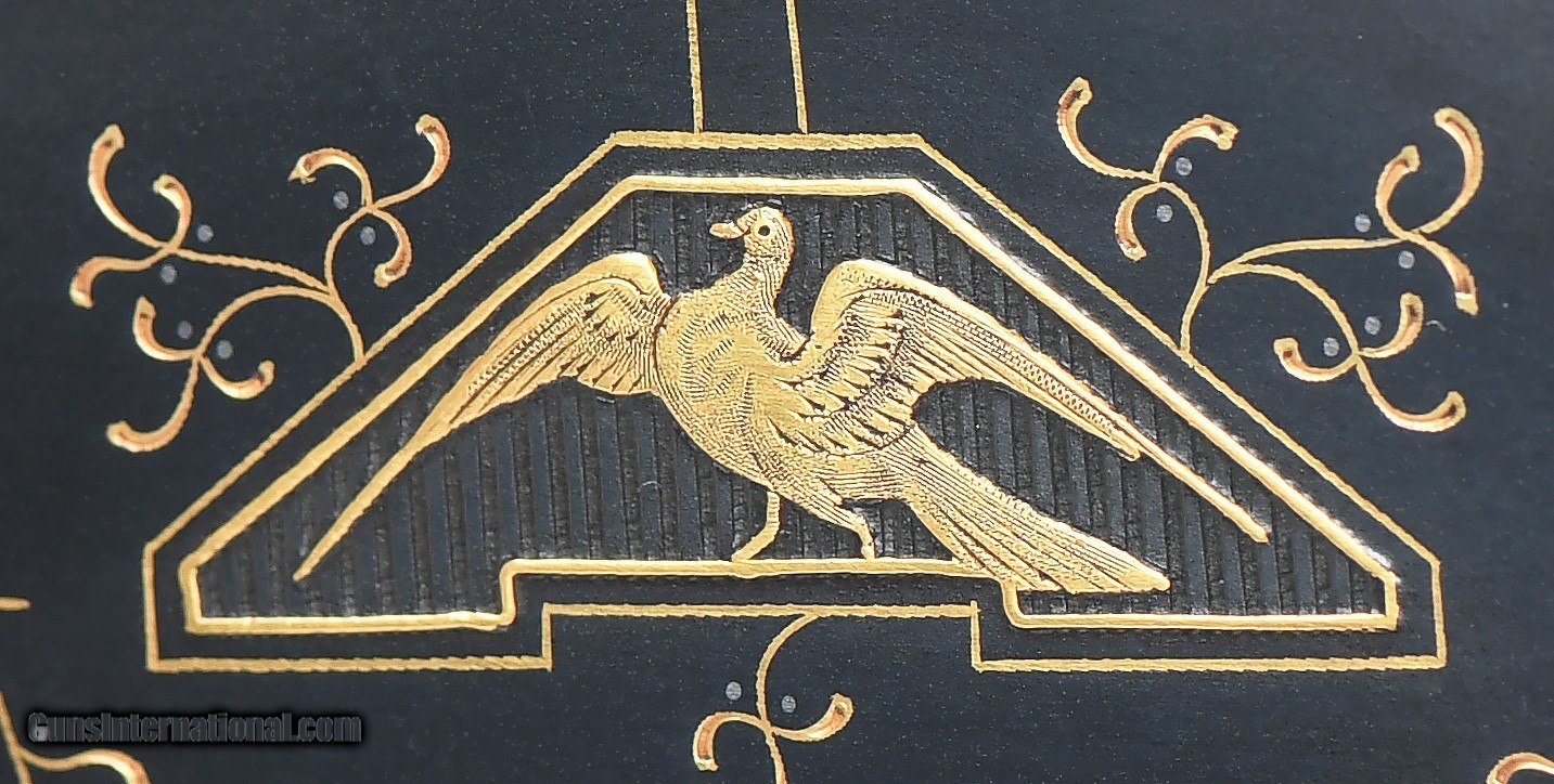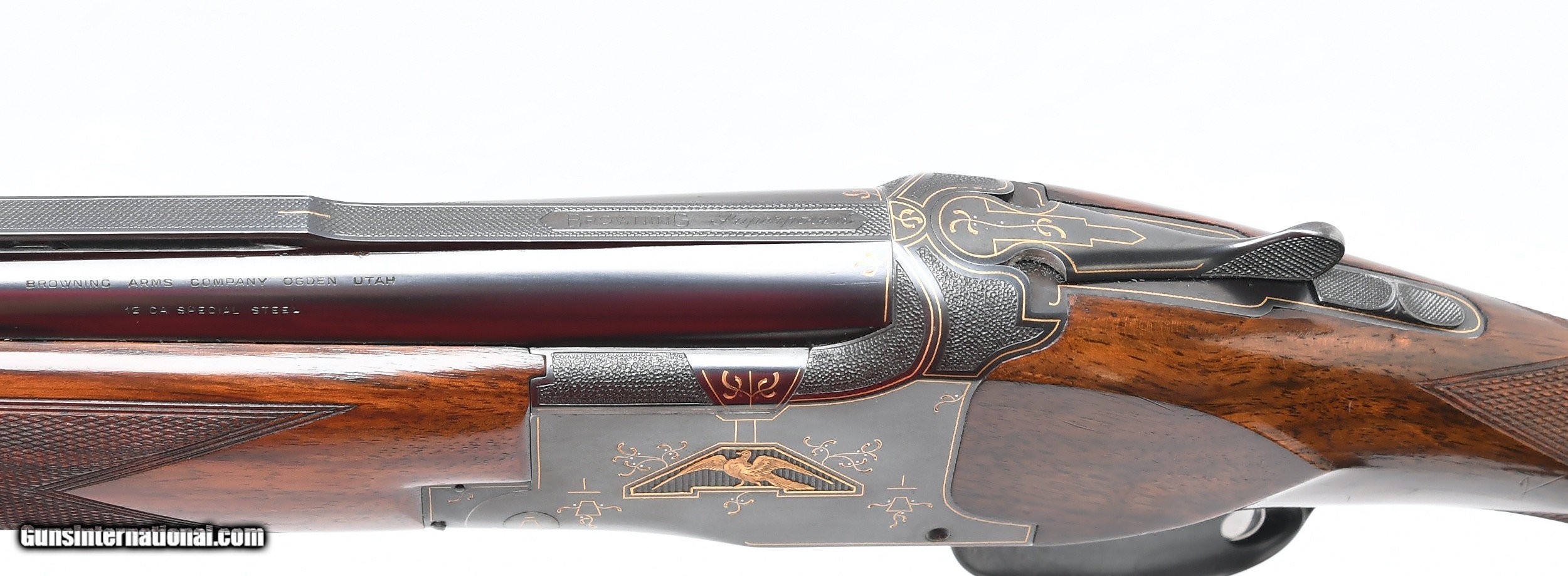 Description: Browning Superposed pre-war Midas grade O/U 12 gauge shotgun. Not only is it pre-war, it is the second year production of 1932. Configured as a trap gun with 30” (29 ¾”) barrels choked XF/XF (.035” each) in original .729” bores. The vent rib is the “Non Crossfire” style that was standard at the time. This gun has a factory single selective trigger and of course it is long tang/round knob. The forearm I am certain is original to the gun; the buttstock I am not so certain as the few photos that I have found all show a somewhat finer checkering pattern. If it was restocked it was done professionally with excellent Browning-like wood-to-metal fit. The stock has an estimated LOP of 14 ½”, I have allowed and additional ¼” because of the extreme rear position of the trigger! 1 3/8” DAC and 2” DAH with neutral cast. What is truly spectacular about this gun is the metal. The receiver, barrels and trigger guard retain nearly all of their original finishes and the Midas gold work is exceptional and the Art Deco influence in the gold work is unmistakable. The gun weighs 7 lbs. 8 oz. and just to top off this extraordinary gun is comes in the original Browning luggage case! $8.975.00 SN: 2521 SOLD Curio/Relic: Yes |