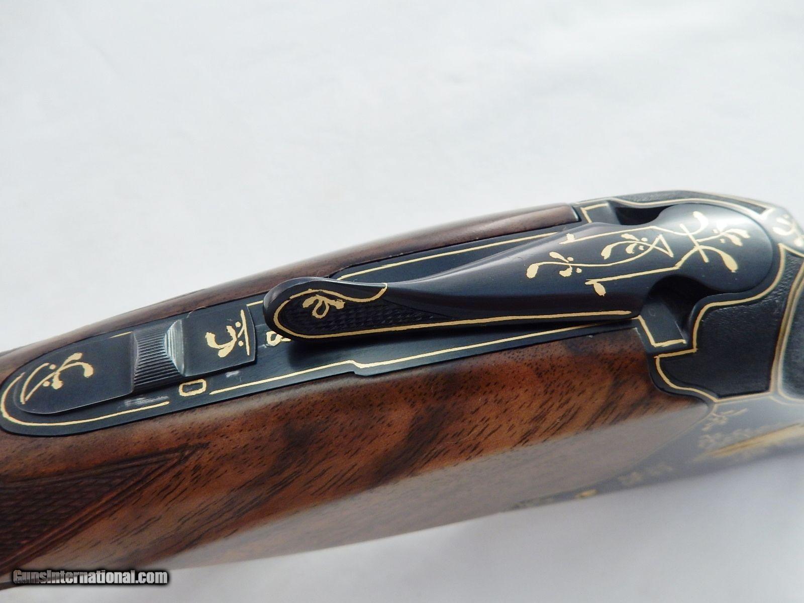 Description: This is a Browning superposed 20 gauge with 28 inch improved cylinder and modified choke barrels. This gun is 99%+ in the case. Engraving by A Bee and wood by Show Me Stocks. This is the only scaled down pre war Midas Angelo has done. Serial # is 17xx. DAC 1 1/2 DAH 2 3/8 LOP 14 7/8 Wt 6lb 8oz. Buyer pays 160.00 shipping. Thank you. 50-3-3 SOLD |