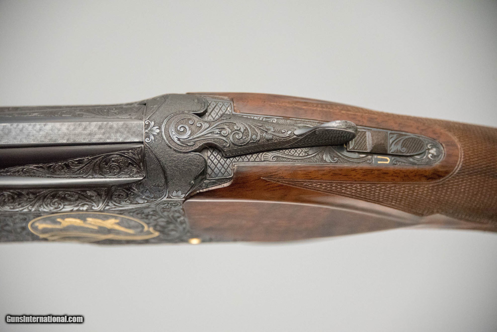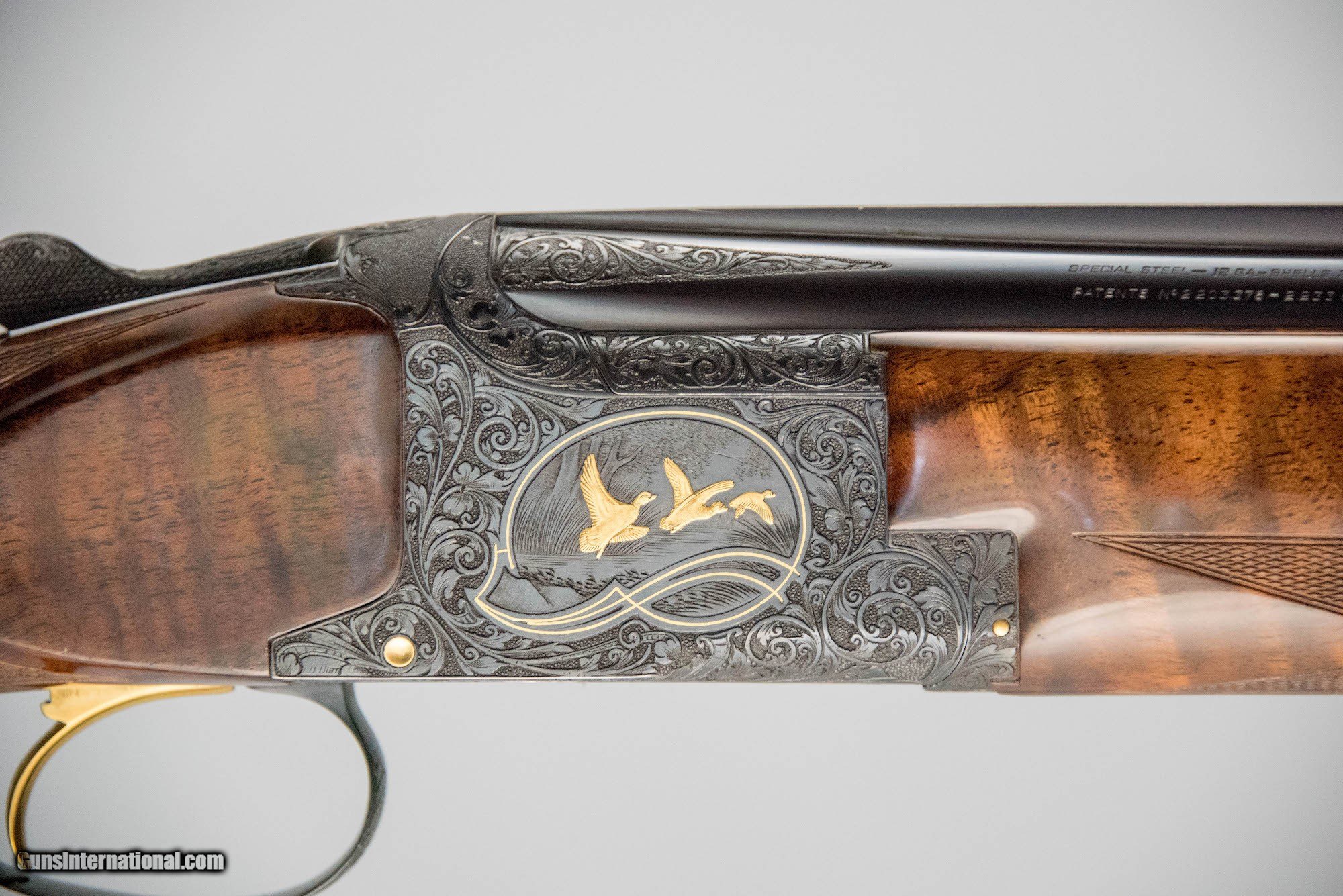 Description: For sale is a post-War pre-owned Browning Superposed Midas Grade chambered in 12 gauge with a 30 inch barrel. Gun features vented rib, skeet Beavertail forearm, original Browning recoil pad, and choked barrel with 5 Briley chokes (SK, SK, LM, IM, F). Engraving design by Vrancken with deep relief scroll engraving with gold inlaid ducks and pheasants on frame sides and a quail on the bottom, ejector trip rods, ejector hammers, and firing pins are also 18Kt. gold plated, best quality walnut with fine checkering. Discontinued in 1976. This Superposed comes in a Browning fitted leather and canvas gun case. 14 3/8 inch length of pull. There are a few very light handling marks on the underside of the stock, as photographed. 95%+ condition. Photos are of the actual gun. ABOUT US Michigan Shooting Centers is a family owned and operated company that manages Michigan’s most trafficked public shooting ranges. We have two locations to serve you in southeast Michigan, Island Lake Shooting Range in Brighton and Bald Mountain Shooting Range in Lake Orion. Both offer shooters with state-of-the-art shotgun, rifle and pistol shooting amenities. Our gun showroom in Lake Orion features hundreds of premium shotguns, rifles, and pistols and a dedicated sales team with over 50 years of shooting experience. We pride ourselves on exceptional service, both before AND after the sale, expedited shipping times, and competitive prices. Our management team has over 50 years of shooting experience. In other words, we know shooting! Whether you are looking for a new place to shoot, a place to host your next corporate outing, some shooting instruction, a new firearm, or a gun-fitting; we have got you covered! CONTACT US The gun showroom at Michigan Shooting Centers is located at 2500 Kern Road in Lake Orion, MI 48360. You can call us at 866-647-4668 ext. 5, or send us an email at infomishoot. If you call or message us outside of our normal operating hours, we will return your message within 24 hours. TERMS Payment: Full payment is required within 7 days of close. Personal Checks are held a full week for clearance. Credit Card purchases are to be made through the portal, no extra fee is incurred for paying with a credit card. Michigan residents will have 6.00% sales tax added to purchase. Shipping: Items will not ship unless we have (1) received full payment and (2) received a read-able copy of your transfer FFL dealer's license. FFL copies can be email to info(at)mishoot or faxed to (866) 647 - 4668. Firearms will ship within 5 business days of receiving FULL payment and FFL info. We are usually much faster though, just check out our feedback! We will send you your tracking number via email. Return Policy: All firearms come with a 3 day non-firing inspection/return privilege. Inspection period begins at time of delivery to your dealer and it is your responsibility to inspect the gun in this time frame. In the case of a return, buyer pays all shipping so please ask questions BEFORE you bid. If firearm is returned based on issues previously addressed in the description or pictures a 20 percent re-stocking fee will be incurred. Safety: The buyer is solely responsible for determining that a used gun is safe to shoot. The firearms offered have not been test fired but have been given a visual inspection only for purposes. It is a requirement that every used firearm is inspected by a qualified gunsmith before firing. The buyer agrees to hold seller harmless against damages, injury, or death caused by defective merchandise. FFL, Curio & Relic: It is your responsibility to ensure that the gun is legal to own and receive in your area. We are a FFL dealer and comply with all Federal, State and Local laws. Modern firearms must be transferred through a licensed FFL dealer in your area. The is to supply a signed copy of local dealer’s license before shipment will be made.We will need CFLC numbers for CA FFL’s to ship a firearm within California. A C&R License is acceptable for C&R firearms only (guns determined to be C&R’s by ATF and guns known to be at least 50 years old). California law will NOT allow shipment of C&R HANDGUNS direct to a C&R holder in the State of California, a 01 dealer must be used. Antique firearms require to supply proof of age. Some areas still require an FFL transfer for antique & black powder firearms (New Jersey, NYC, etc.). Large capacity magazine restrictions: California - 10 round maximum for all magazines. Colorado (effective July 1, 2013) – 15 round maximum on all magazines. District of Columbia – 10 round maximum for all magazines. Hawaii - 10 round maximum for all handgun magazines. Illinois - 15 round maximum for all magazines in Aurora. 12 round maximum for all magazines in Chicago. 16 round maximum for all magazines in Franklin Park. 10 round maximum for all magazines in Oak Park. Maryland - 20 round maximum for all magazines. Massachusetts - 10 round maximum for all magazines. New Jersey - 15 round maximum for all magazines. New York - 10 round maximum for all magazines. Ohio – 30 round maximum for all magazines. Buyer responsibility / legal ownership limitations: It is the buyer’s responsibility to ensure that the weapon is LEGAL to own in your city/state. If you live in CA, MD, and NY, be sure to check your local laws or call your local dealer before and ensure the model meets the requirements for your state. No refunds are given if the item is not transferable. Not for sale where prohibited. Product availability: We operate a full time gun shop which means that some items are for sale in our store. We make every effort to pull an item after it receives a qualifying bid. On rare occasions, an item may be sold before we notice your bid; and if that happens we will notify you immediately. Seller reserves the right to end an early due to the sale of the firearm in our store. Not all items for sale online are available in our retail store for immediate inspection. Please 