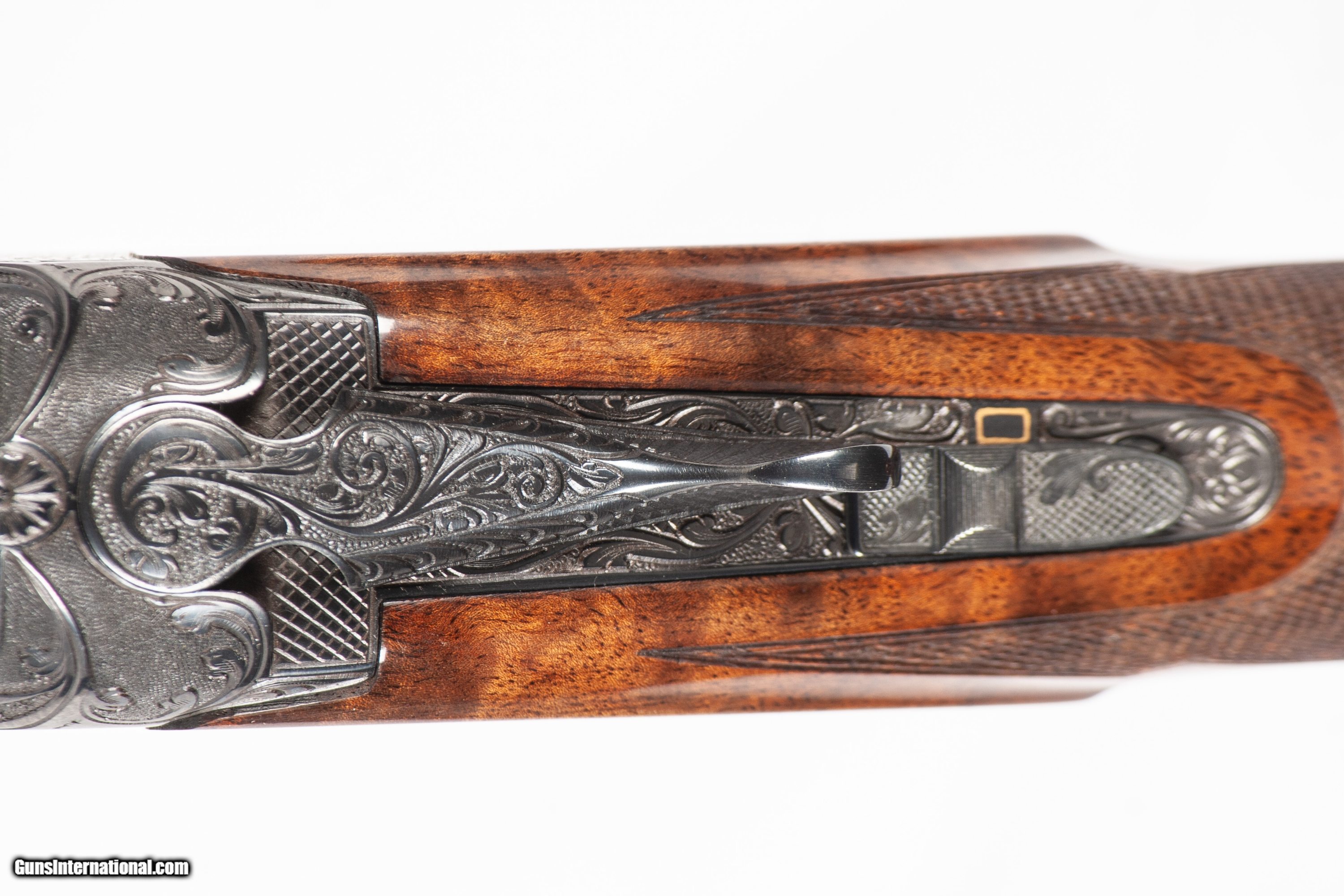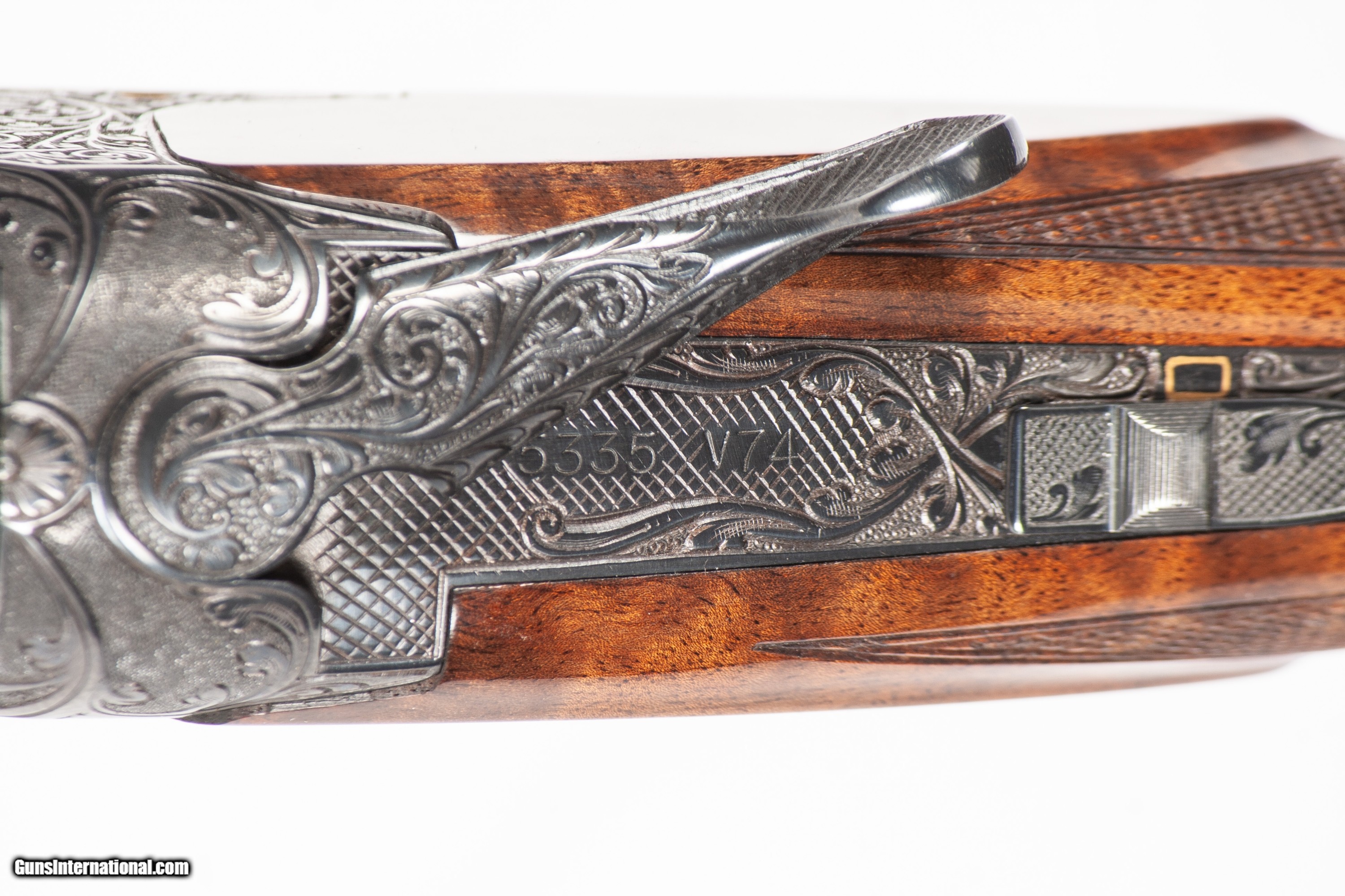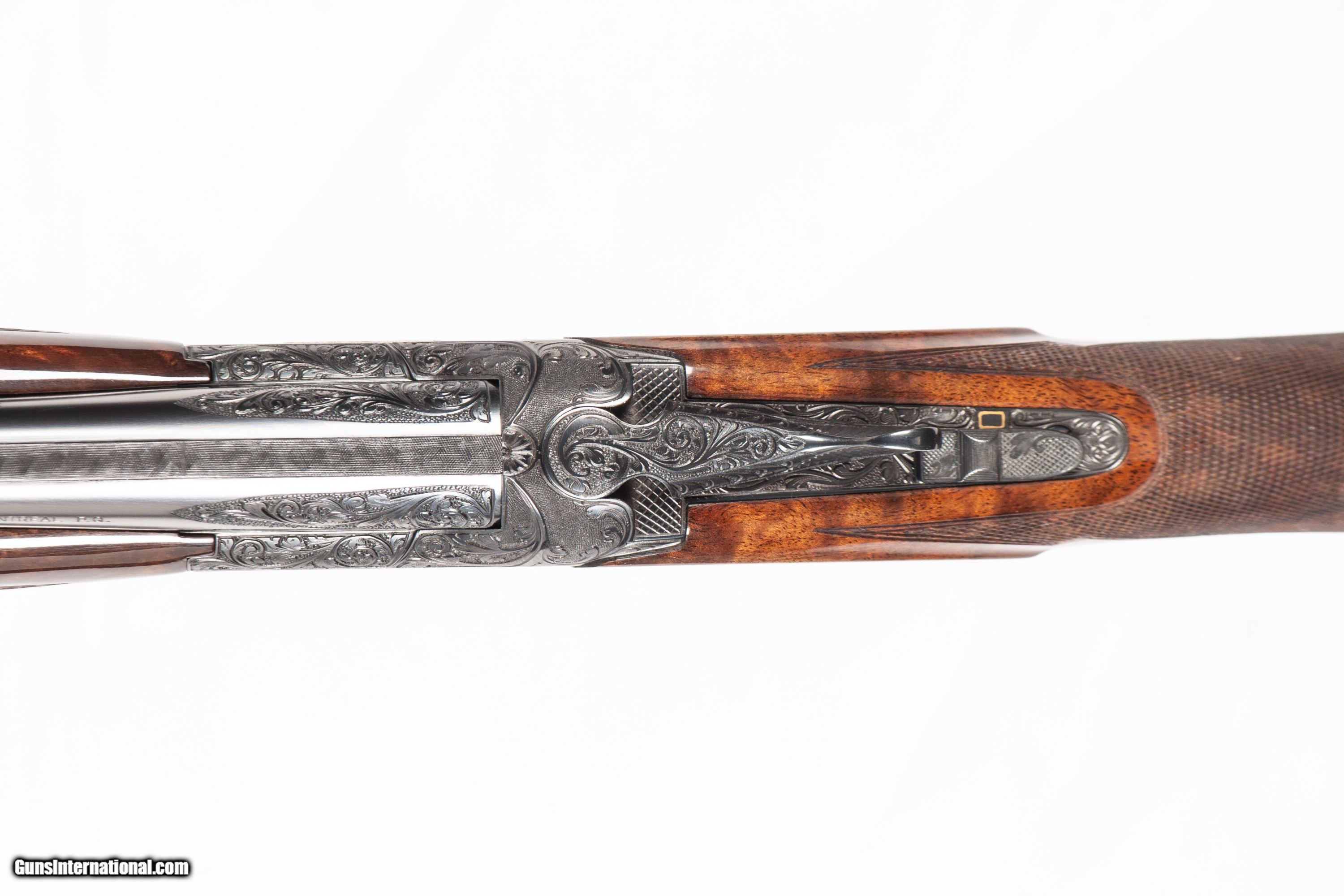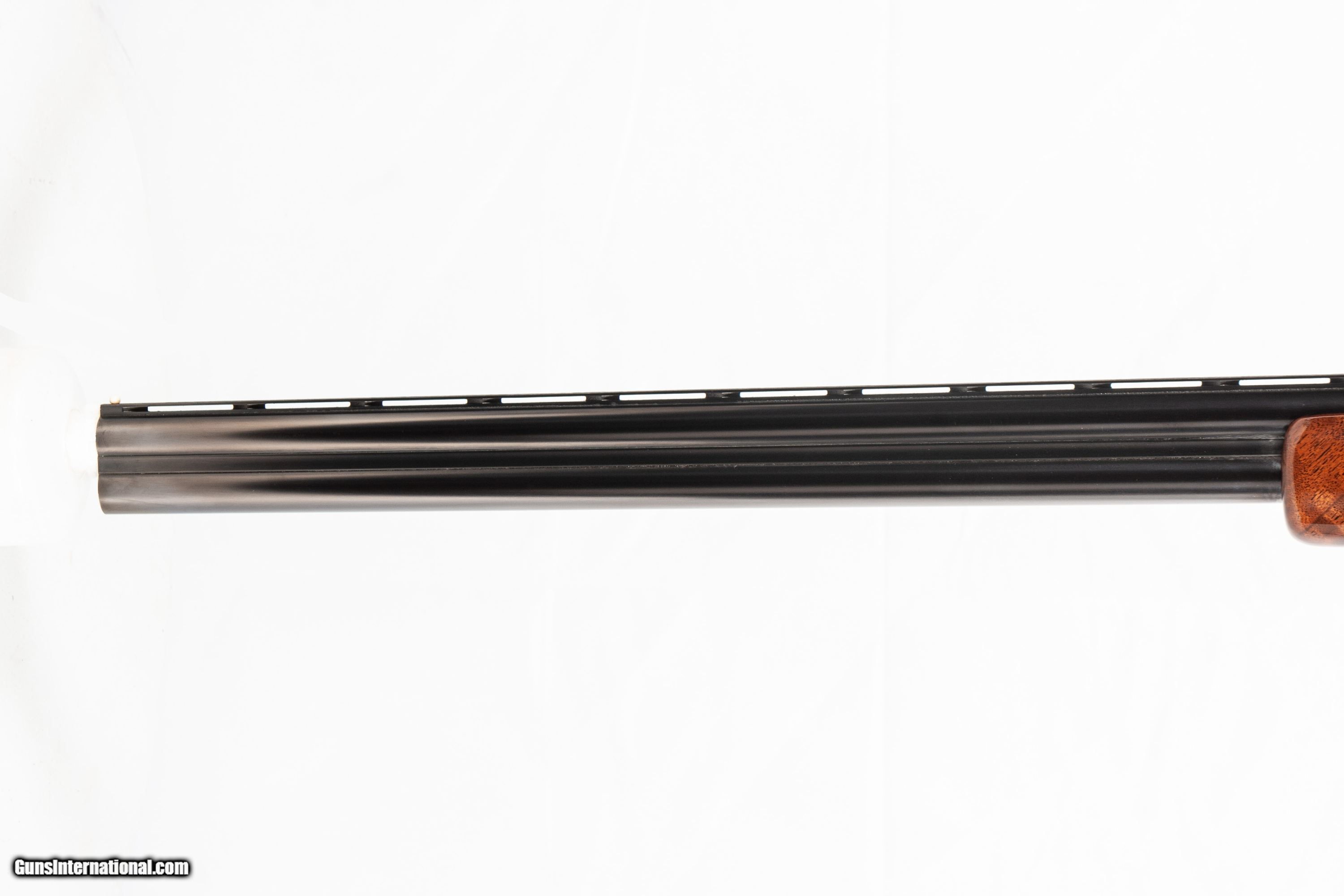 Browning Superposed Midas Grade manufactured in Belgium. 28 inch 20 gauge barrels that have bright & shiny bores 3 inch chambers fixed chokes (modified over improved cylinder under) and a 14 1/2 inch LOP. The frame barrel lugs trigger guard and rear portion of the barrel have been engraved in a floral style the receiver has 3 Pheasants gold inlaid on the left side with the right side having 3 Ducks and the bottom having a Quail in flight. The left side of the receiver is signed R Dewil while the right is signed Wilmotte. This firearm is in excellent condition has the original box and is covered by Dury's Lifetime Warranty.