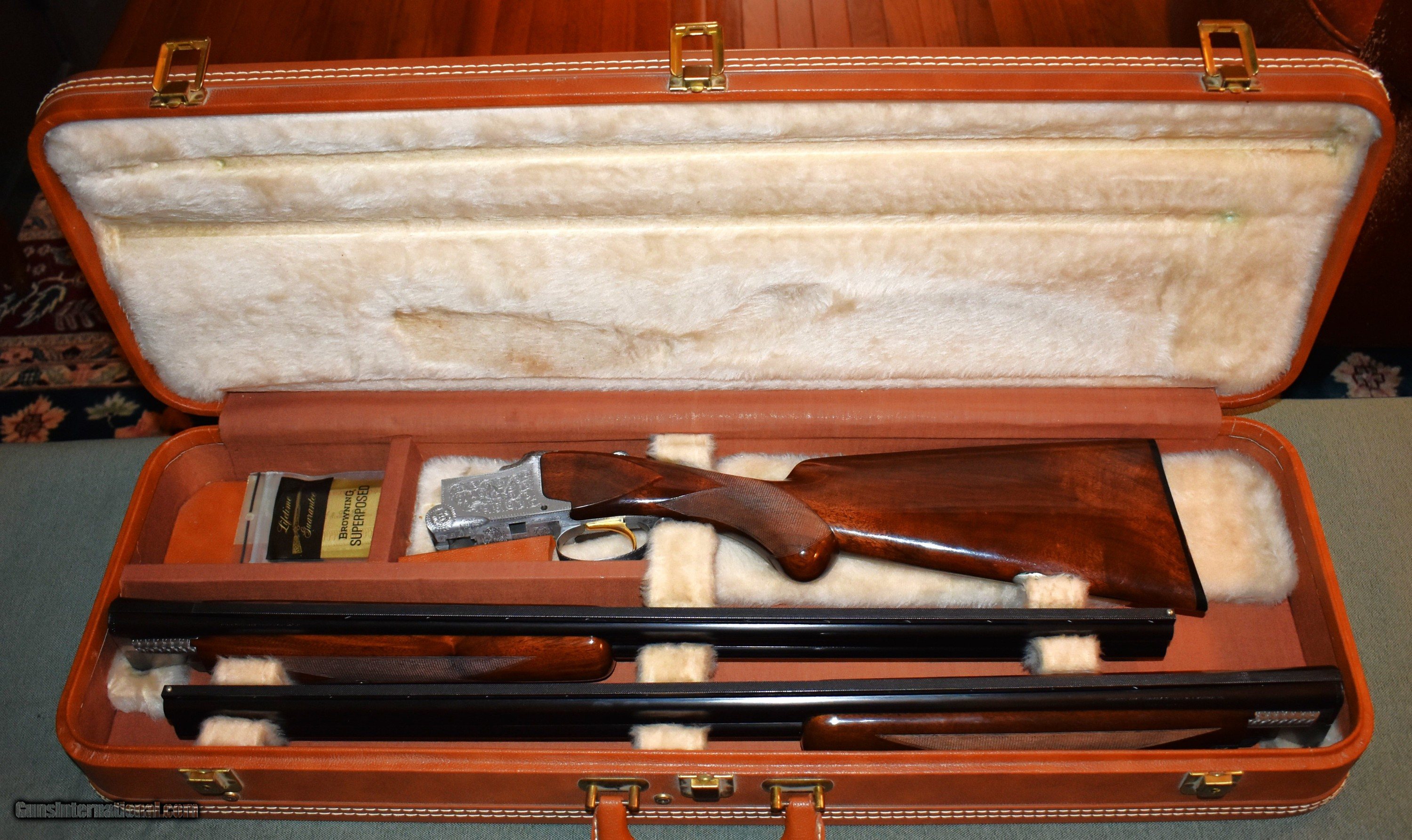 Description: Belgain Browning Pigeon grade 12 gauge,20 gauge two barrel set. This set is unusual in that most 12/20 sets are skeet choked. This one is 20 gauge 261/2" choked IC and Mod, and 12 gauge 28" IC andMod. The gun is in outstanding original condition retaining 99% of the original blue and wood finish. The gun was built in 1970 and has a round knob short tang stock. The gun shows no signs of any salt wood at all. The gun comes with a Browning 2 barrel luggage case. A great all arund gun for hunting or clays. C&R eligible. Price inckudes shipping to your FFL. SOLD Curio/Relic: Yes Shotgun Gauge: 12 Gauge, 20 Gauge Manufacturer: Browning (FN) Model: Pigeon Grade Serial Number: 33570 S70 Barrel Length: 261/2" and 28 Chambers: 23/4 Ejectors: Yes Condition: mint Metal Condition: mint Wood Condition: mint Bore Condition: mint Barrel Type: Browning Special Steel Action: Over Under Triggers: Single Selective Butt Pad: Factory Buttplate Rib: Ventilated Manufacture Date: 1970 Choke Left: modified Choke Right: improved Engraving: Standard Pigeon Grade Case: Browning Luggage Case |