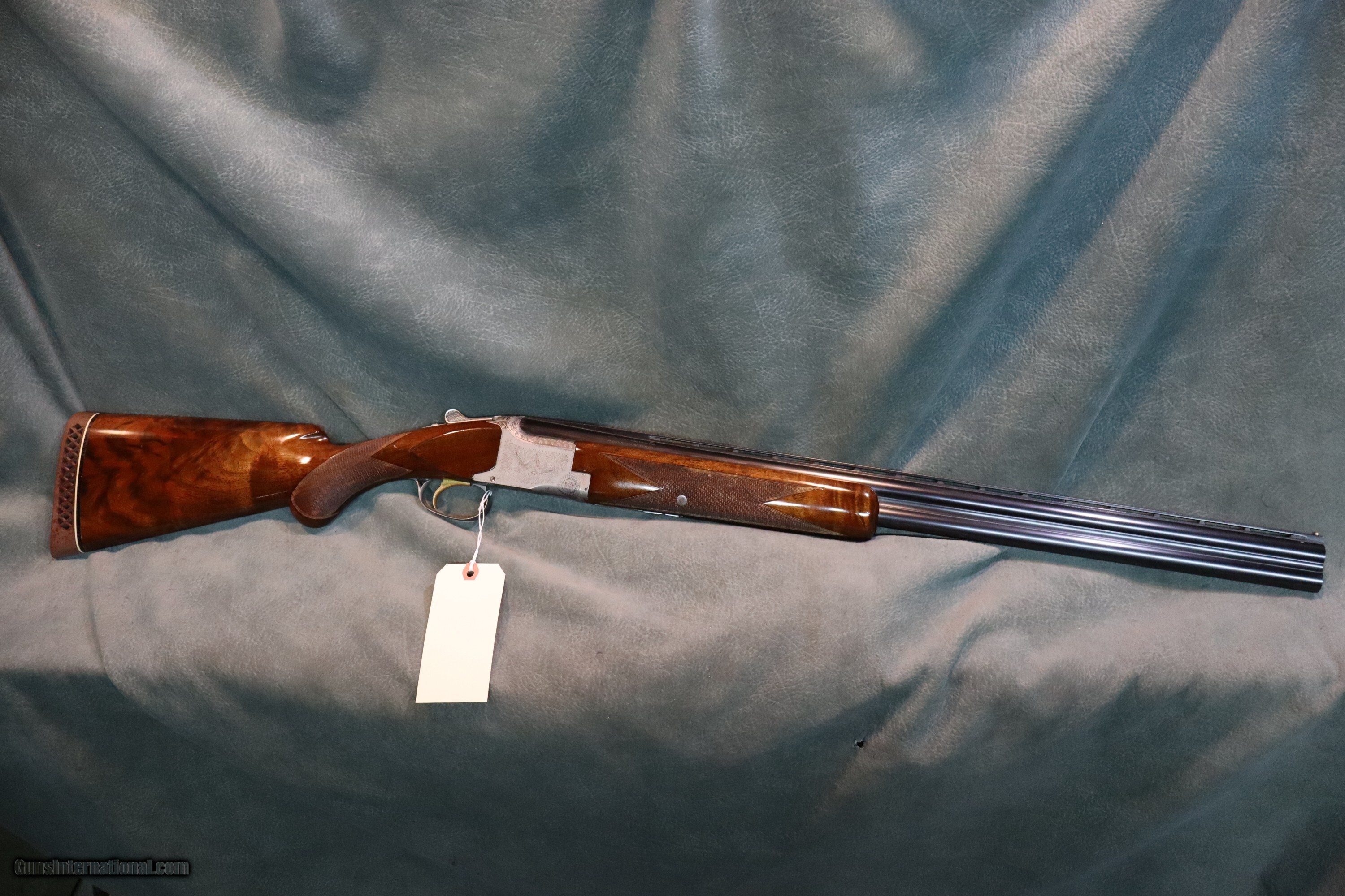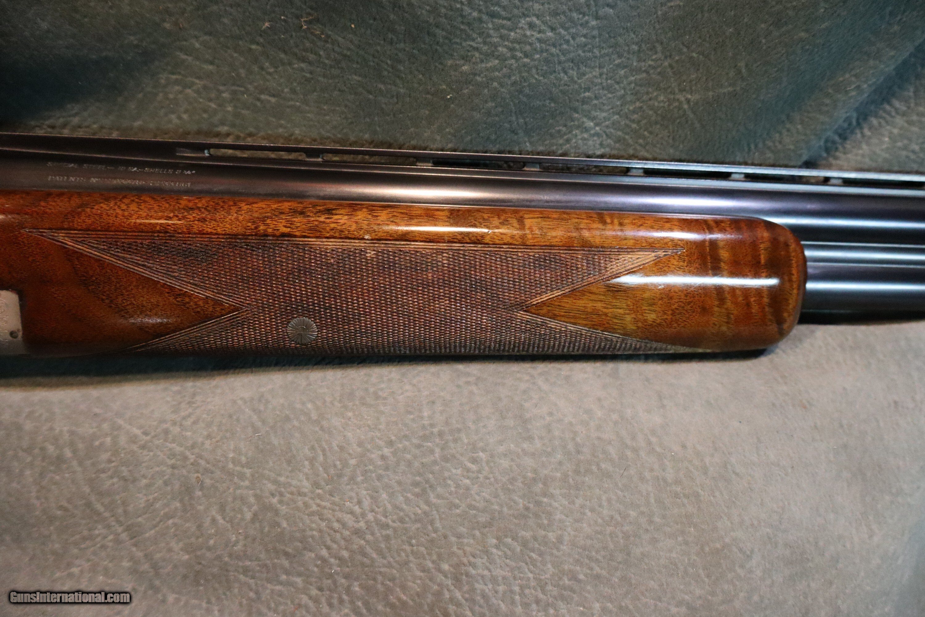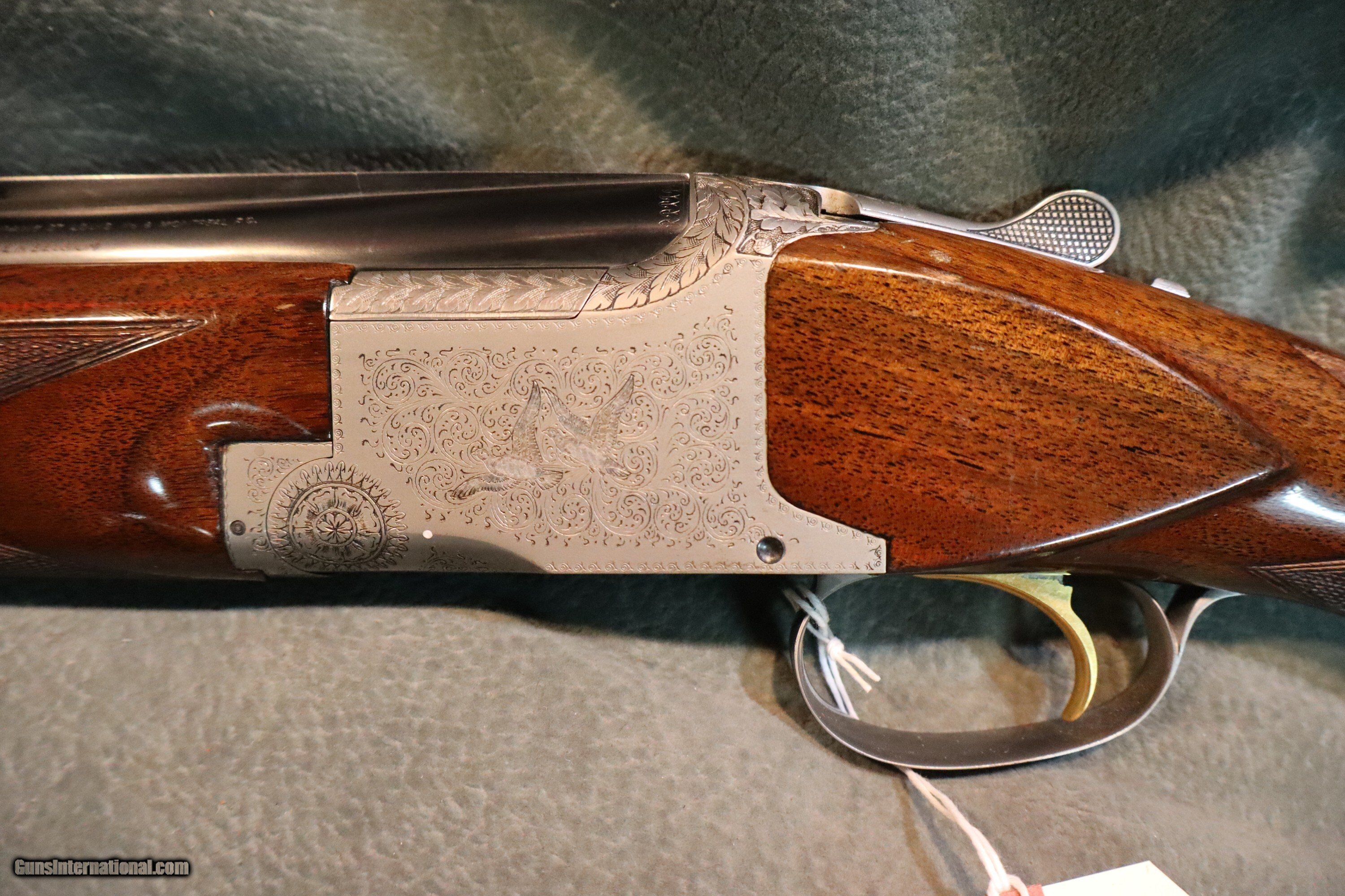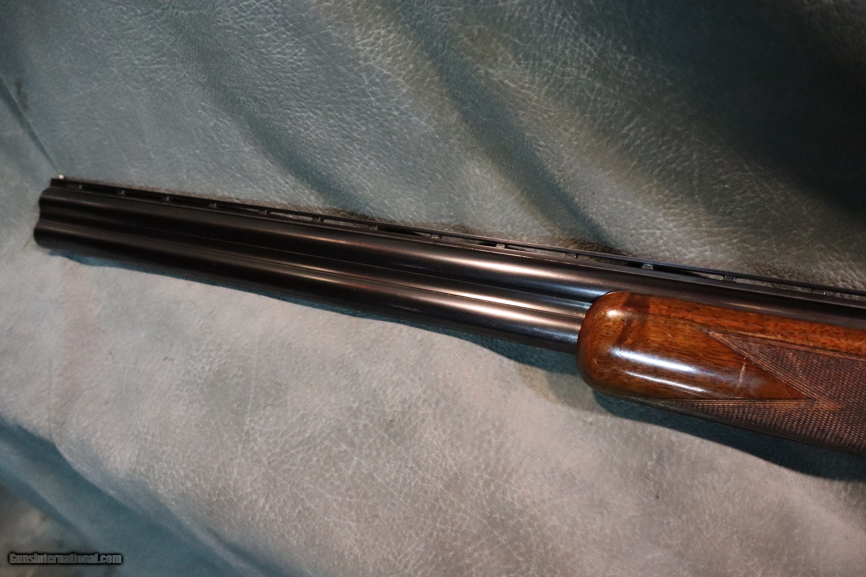 Belgium Browning Pigeon Grade Superposed 12ga 2 3/4",26 1/2", Imp/Mod barrels,silver engraved receiver with scroll and Pigeons,pretty feather crotch walnut stock with Browning factory pad,round knob pistol grip,made in 1967,95% bluing.