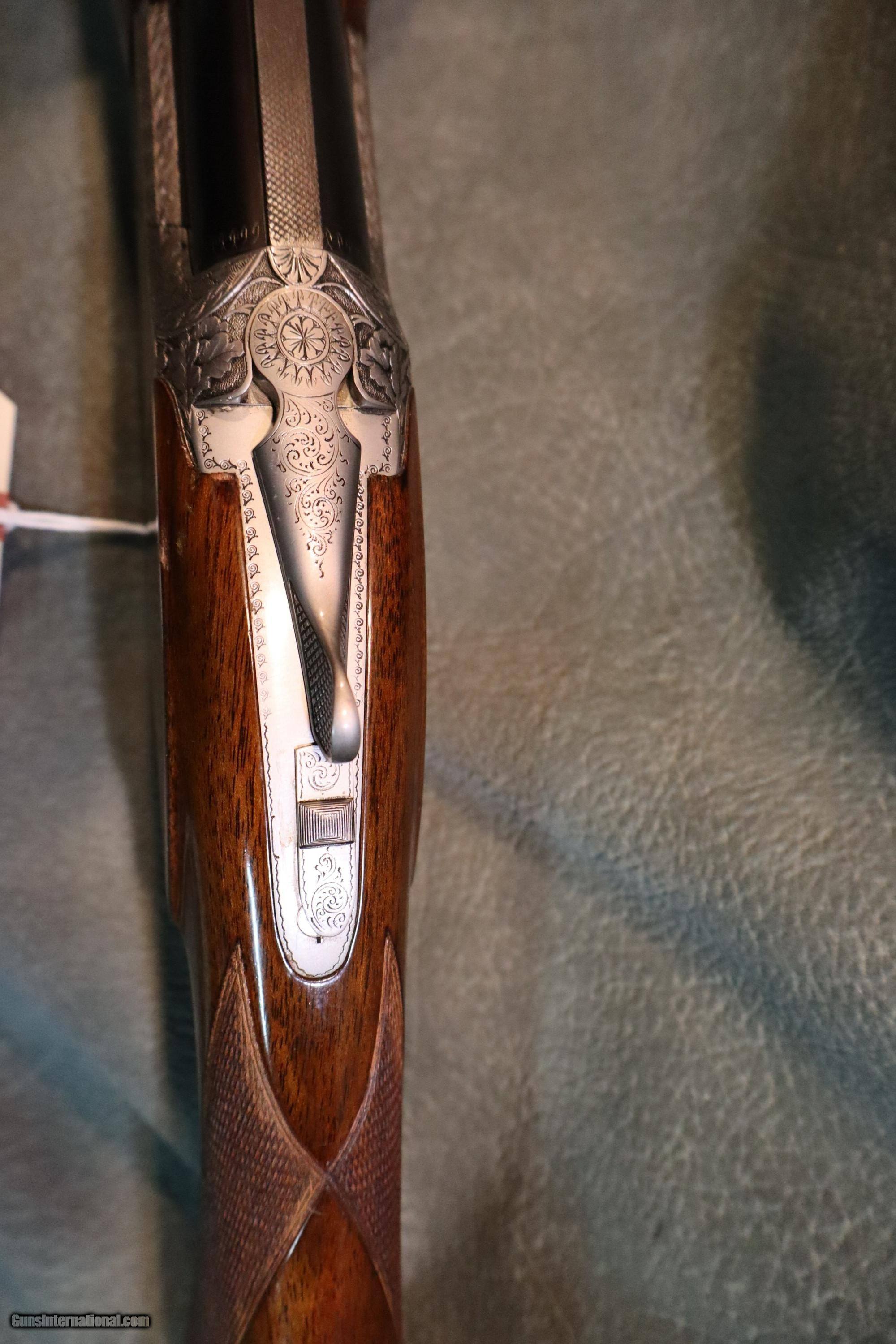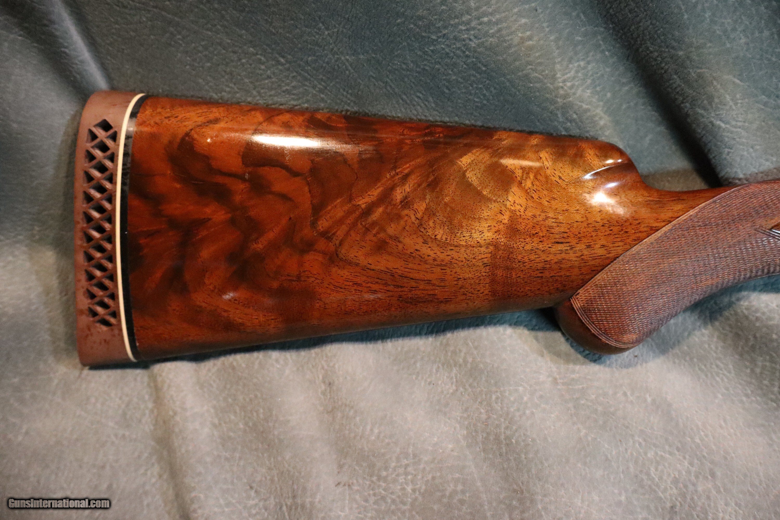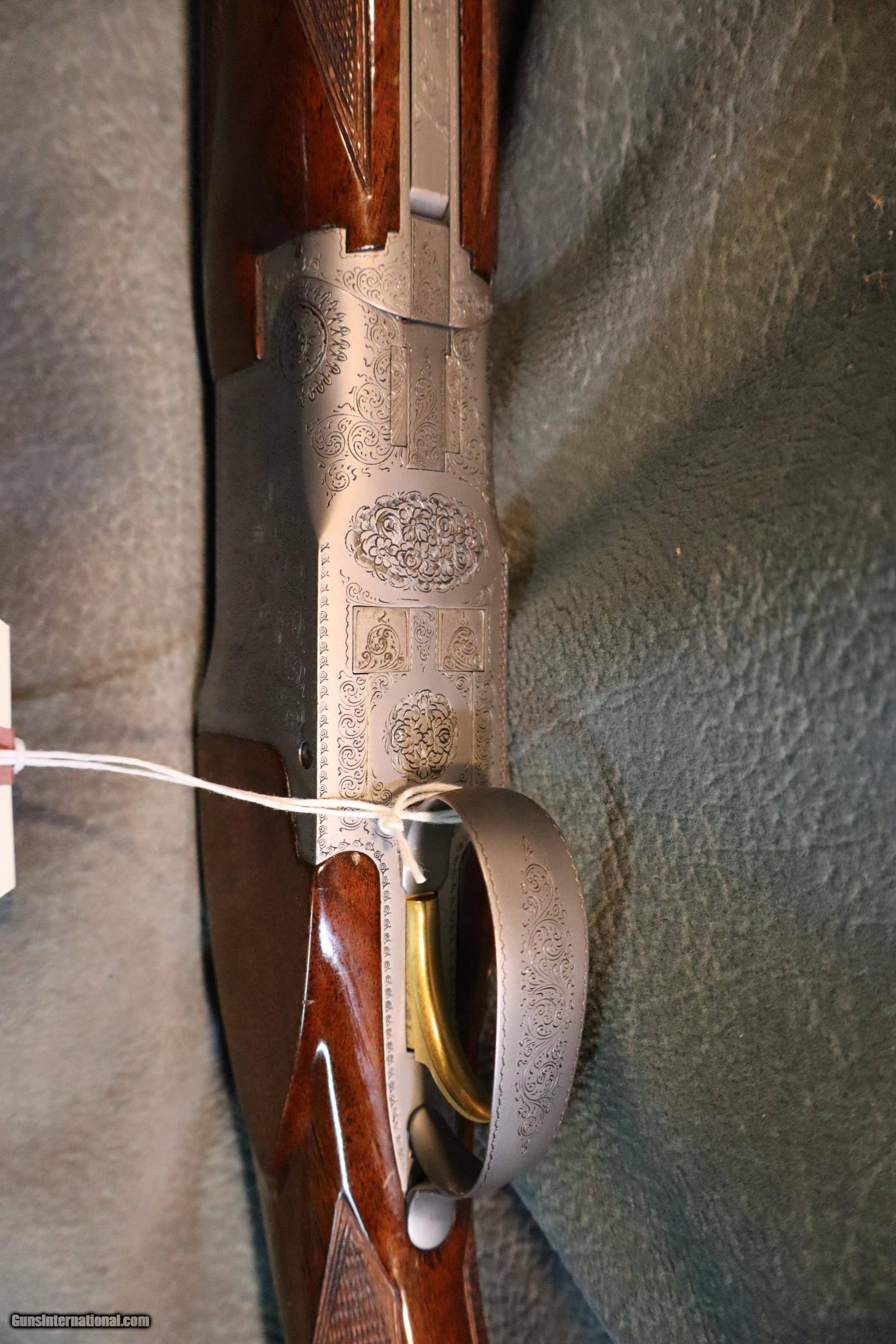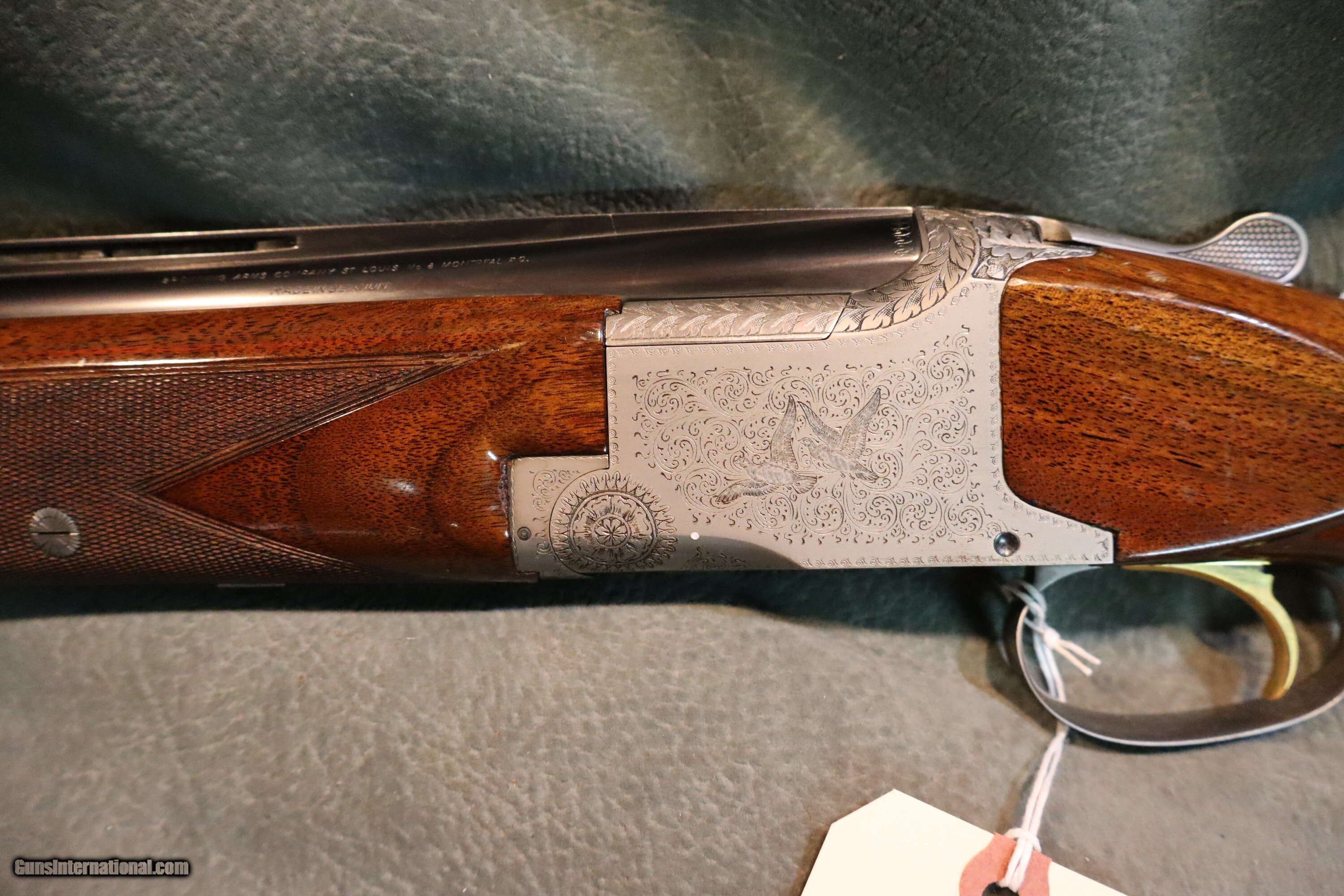 Belgium Browning Pigeon Grade Superposed 12ga 2 3/4",26 1/2", Imp/Mod barrels,silver engraved receiver with scroll and Pigeons,pretty feather crotch walnut stock with Browning factory pad,round knob pistol grip,made in 1967,95% bluing.