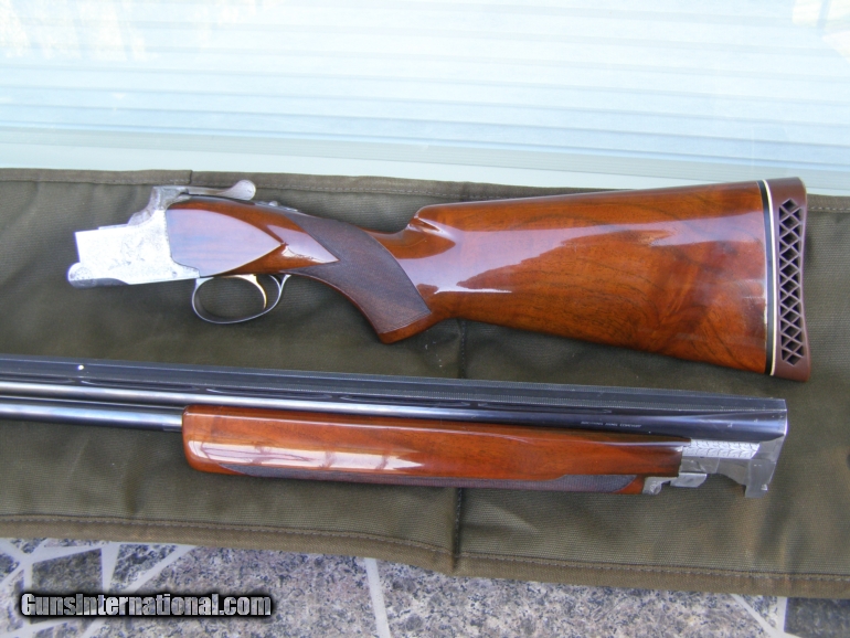 Description: BELGIAN BROWNING B-25 Superposed 12 ga "Broadway" "Pigeon" trap gun. 32" bbls choked IM/Full. Gun has apparently been shot a bit but locks up tight, on face w/no play in bbls. 14 3/8" lop. Wood is in very good condition w/great bores. Great for trap singles, doubles, wobble & bunker. Please add $45 for shipping & insurance to your lower 48 FFL dealer. SOLD |