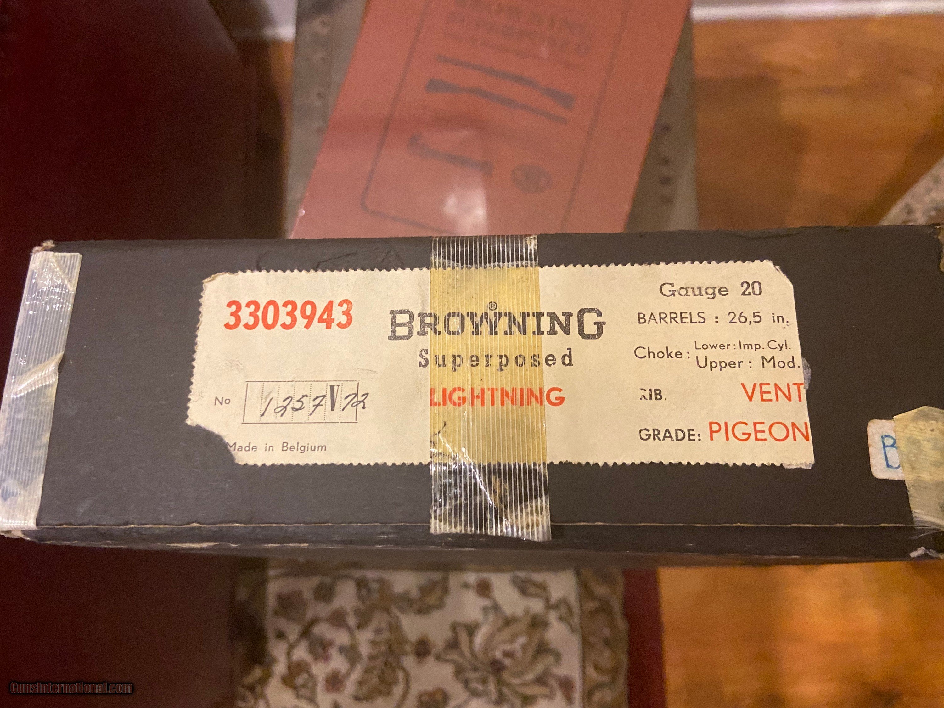 Description: An extremely nice 1972 Pigeon Grade 20ga Browning Belgium Superposed. Exc Tight Gorgeous wood. 2 3/4 & 3 inch IC/M. original buttplate. 14 1/4 LOP SOLD Shotgun Gauge: 20 Gauge Manufacturer: Browning Model: Superposed Condition: Exc Metal Condition: Exc Wood Condition: Exc Bore Condition: Exc |