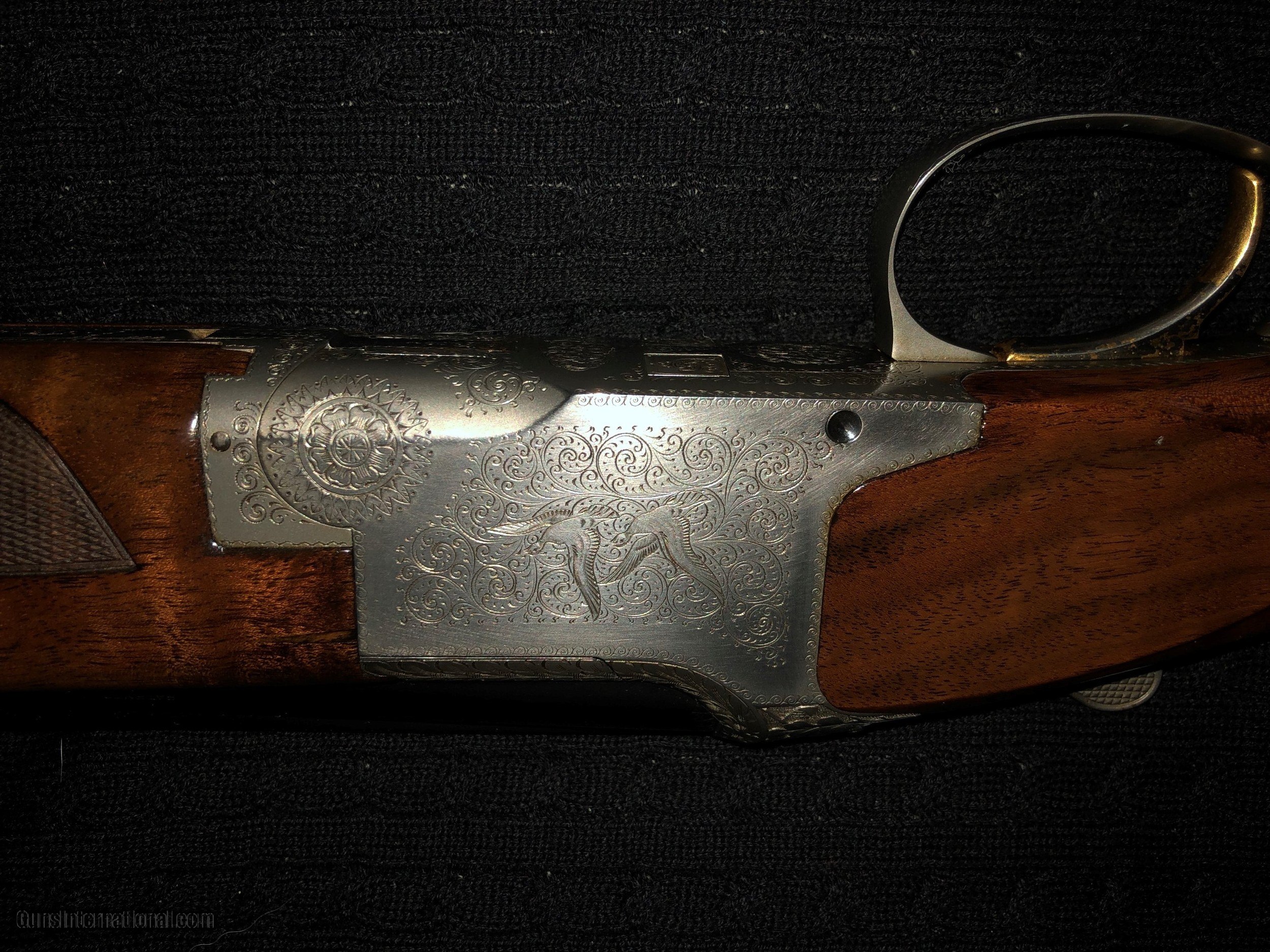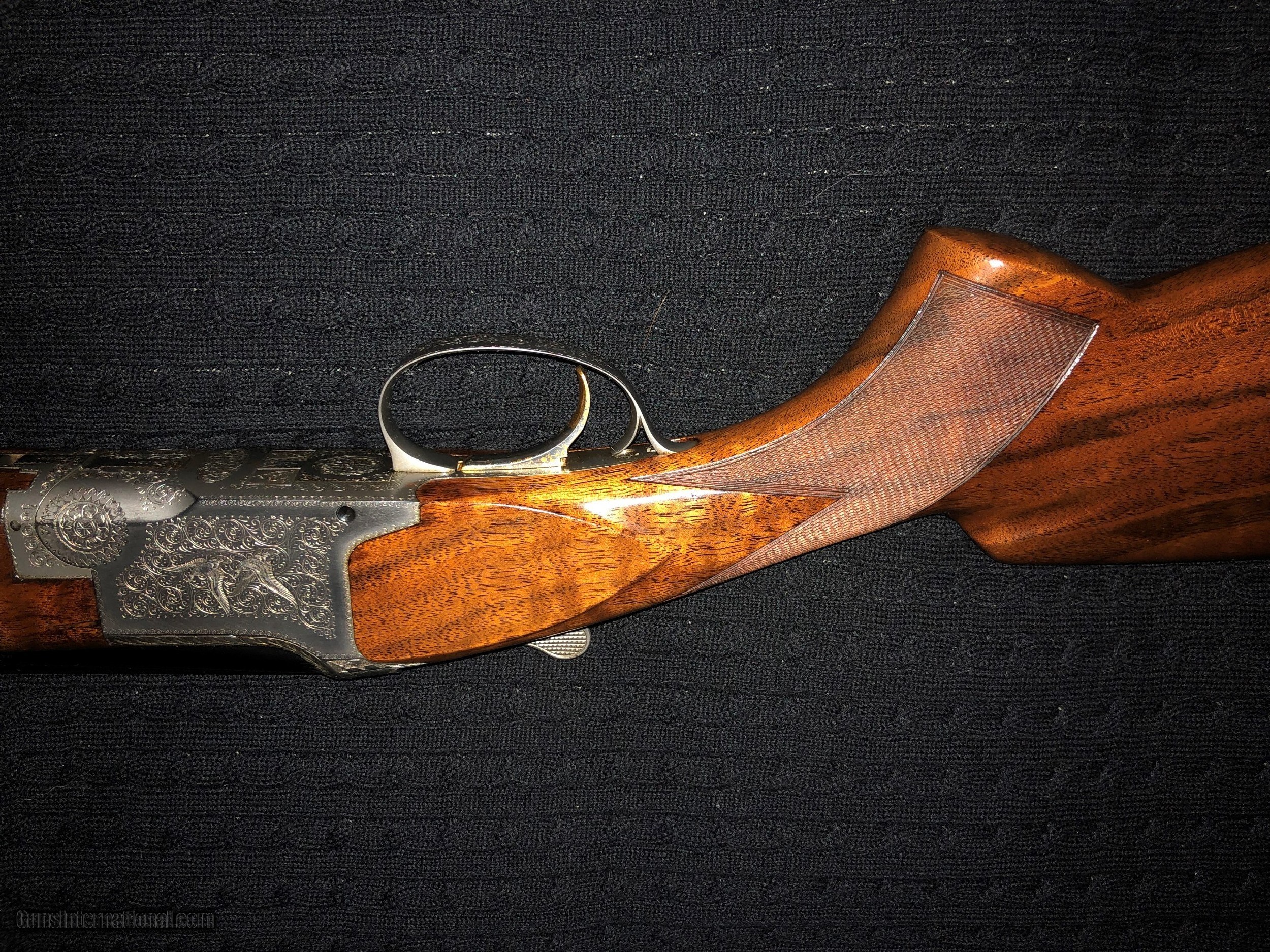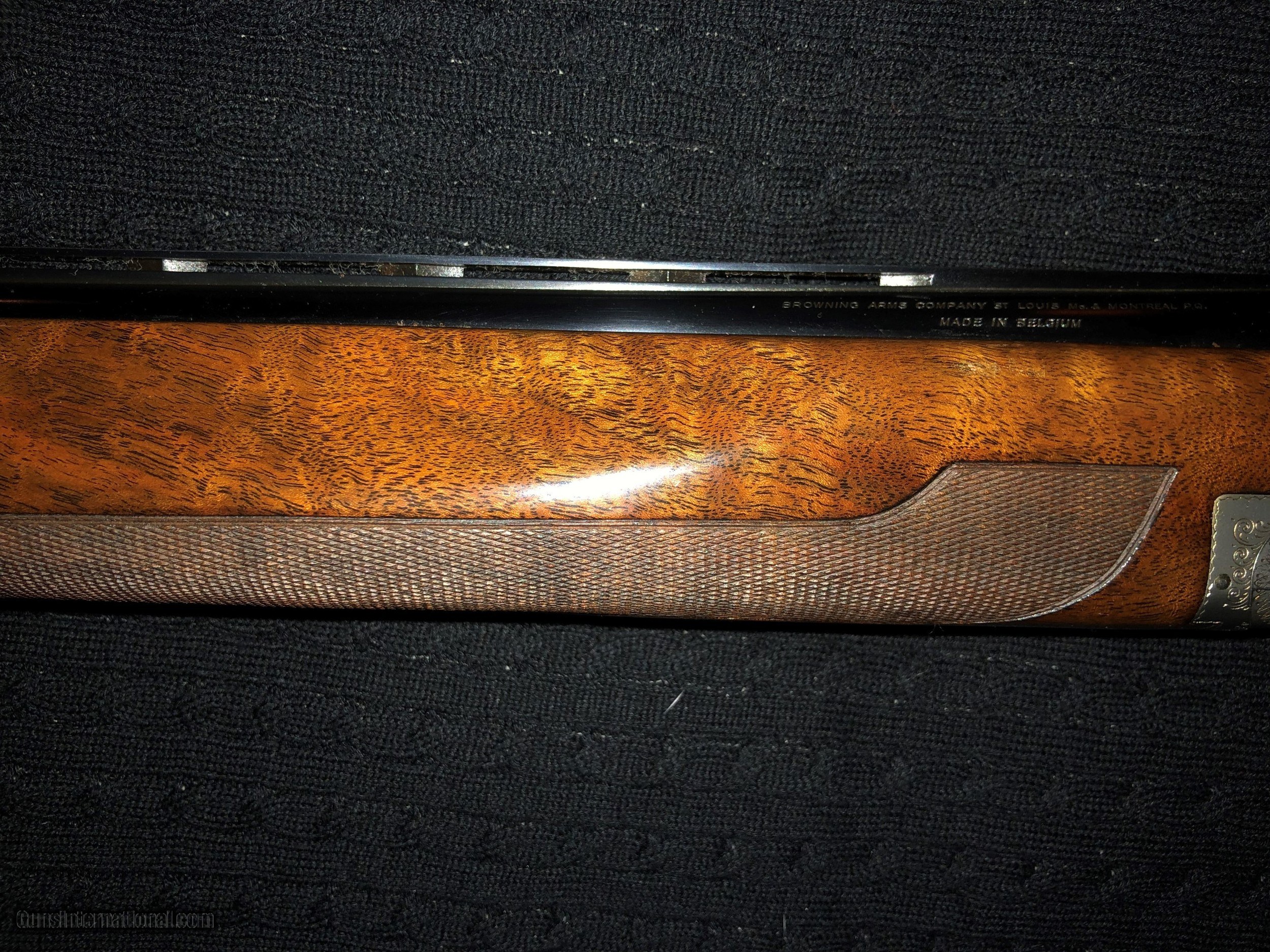 Description: 2/12 update. I had an expert review this gun and he says it is a salt gun and has a small amount or corrosion on it. Therefore I am DRASTICALLY reducing the price. It is a beautiful gun even with a couple of minor flaws. The price was $8900 and I am reducing to $5400. Rare 28 gauge Pigeon grade Browning. The French Gray receiver is engraved with fine scroll and two pigeons in flight on both sides of the receiver. The gun has a figured walnut stock with a new model style (beavertail) fore end and short tang, flat knob butt stock. I don't know it this was a salt gun. It has no rust and was either never a salt gun or had the wood replaced. It is in fine condition. Appraised for insurance by LL Bean for $16,000. SOLD Manufacturer: Browning Model: Pigeon Serial Number: 2906F70 Condition: fine Barrels: 28 Barrel Type: skeet Gauge Info: 28 Stock Comb: 1 3/8 Stock Heel: 1 7/8 Butt Pad: yes Browning Manufacture Date: 1970 Chokes: skeet Engraving: yes Case: yes: Browning soft leather Item Location: Maine |