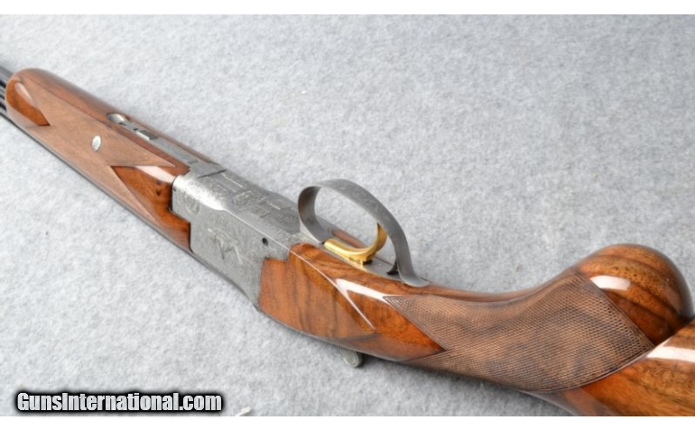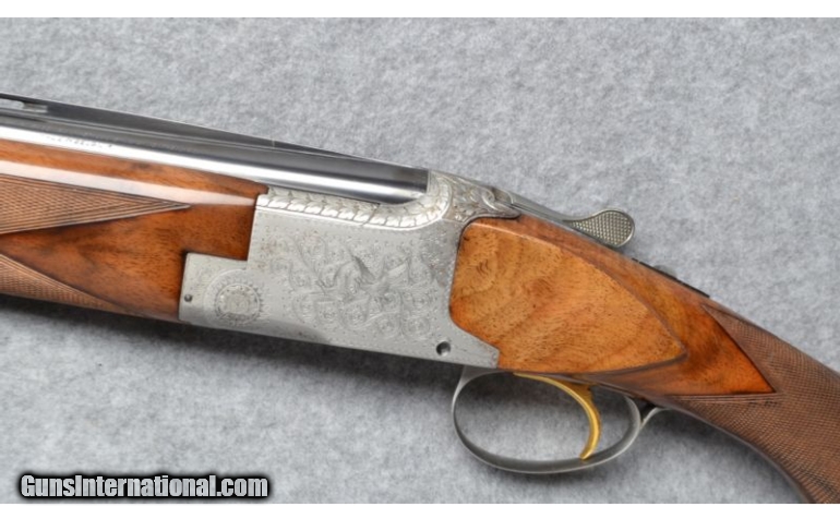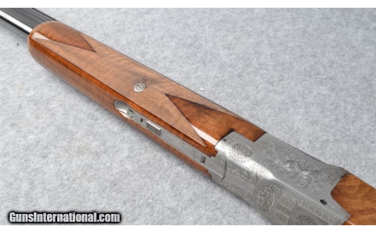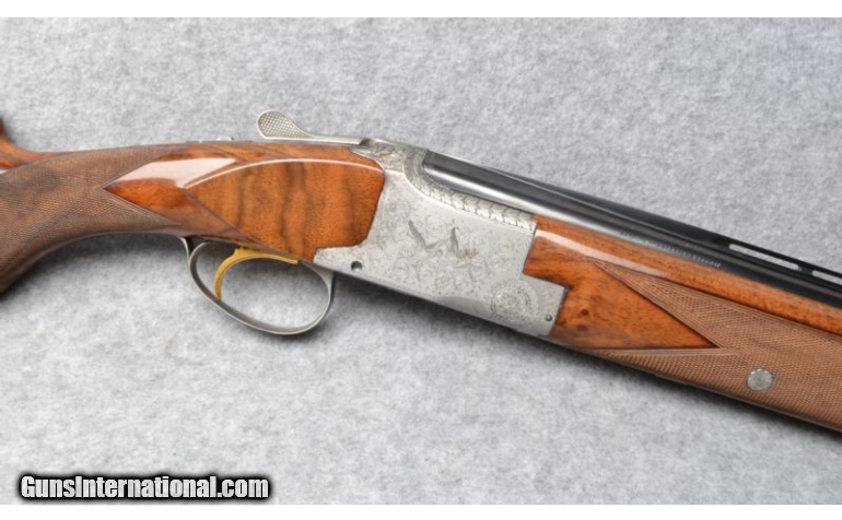 Description: Browning Super Posed Pigeon Grade Made in Belgum SOLD Manufacturer: 1967 Caliber Info: 20 ga. Chambers: 3 Metal Condition: Slight Evidence of Salt wood effect Wood Condition: Very Good Bore Condition: Bright and Shiny Barrels: 26 Triggers: Single Selective Stock: Walnut (Salt Wood) Stock Dimensions: 14 1/4" LOP Fore End: Checkered Walnut Butt Pad: Browning Sights: Front Bead Chokes: Full and Improved Modified. Extras: Original Carton and Paperwork Item Location: Cheektowaga, NY |