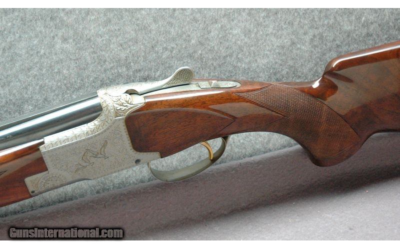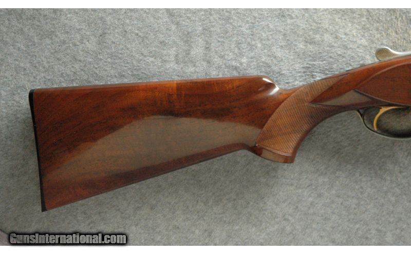 Description: Browning SuperposedPigeon Grade shotgun20 Ga. An incredible little over / under with fixed improved cylinder and modified chokes. Weighing in at six and a half pounds and featuring French grey action, gold single select trigger, ejectors, Pigeon Grade engraving, and short tang. Stock and forearm are made of fancy walnut. . The general dimensions are as follows: , DAC 1 14", DAH 2" , LOP 14 ¼", cast off approximately 1/4 inch. 26" Barrels. 20 Gauge SOLD Metal Condition: Excellent, Light Wear & Handling Marks Wood Condition: Stock is in Excellent Condition Barrels: 26 Triggers: Factory Trigger Stock Dimensions: 14 1/4" LOP Fore End: Checkered Butt Pad: Factory Butt Plate Sights: Single Silver Bead Chokes: Fixed IC / Mod Item Location: La Vista, NE |