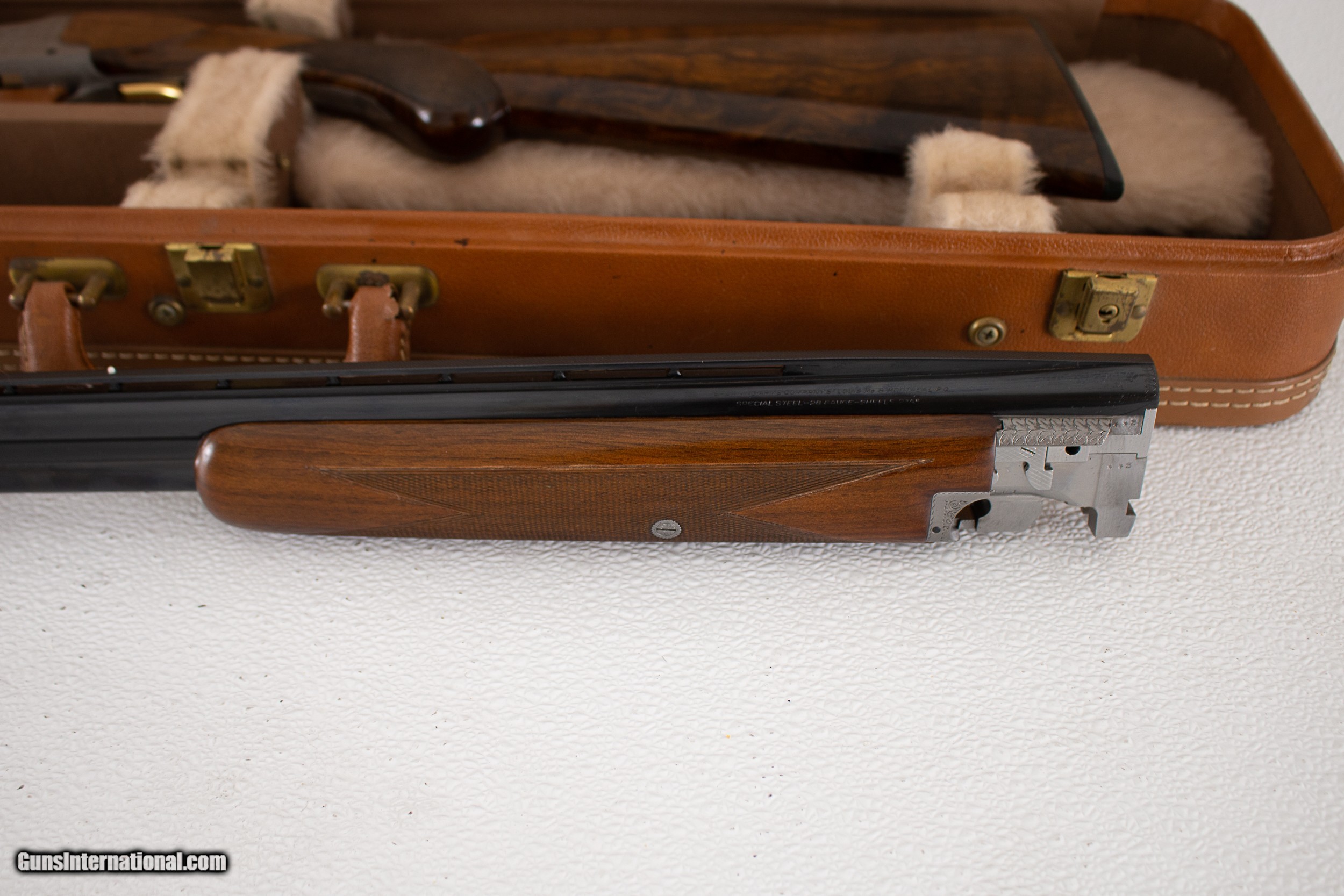 Description: MADE IN BELGIUM IN 1959. BARRELS ARE 28'' WITH A VENT RIB AND CHOKED SKEET/SKEET. THIS GUN IS THE FIRST YEAR WITH SERIAL NUMBER 1. THATS RIGHT YOU LOOKING AT THE FIRST 28 GA SUPERPOSED MADE. PLEASE CALL WITH ANY QUESTIONS. SOLD Curio/Relic: Yes Shotgun Gauge: 28 Gauge Manufacturer: BROWNING Model: SUPERPOSED Condition: EXCELLENT Metal Condition: EXCELLENT Wood Condition: EXCELLENT Bore Condition: EXCELLENT Action: O/U Triggers: SINGLE/GOLD LOP: 14 3/8'' |