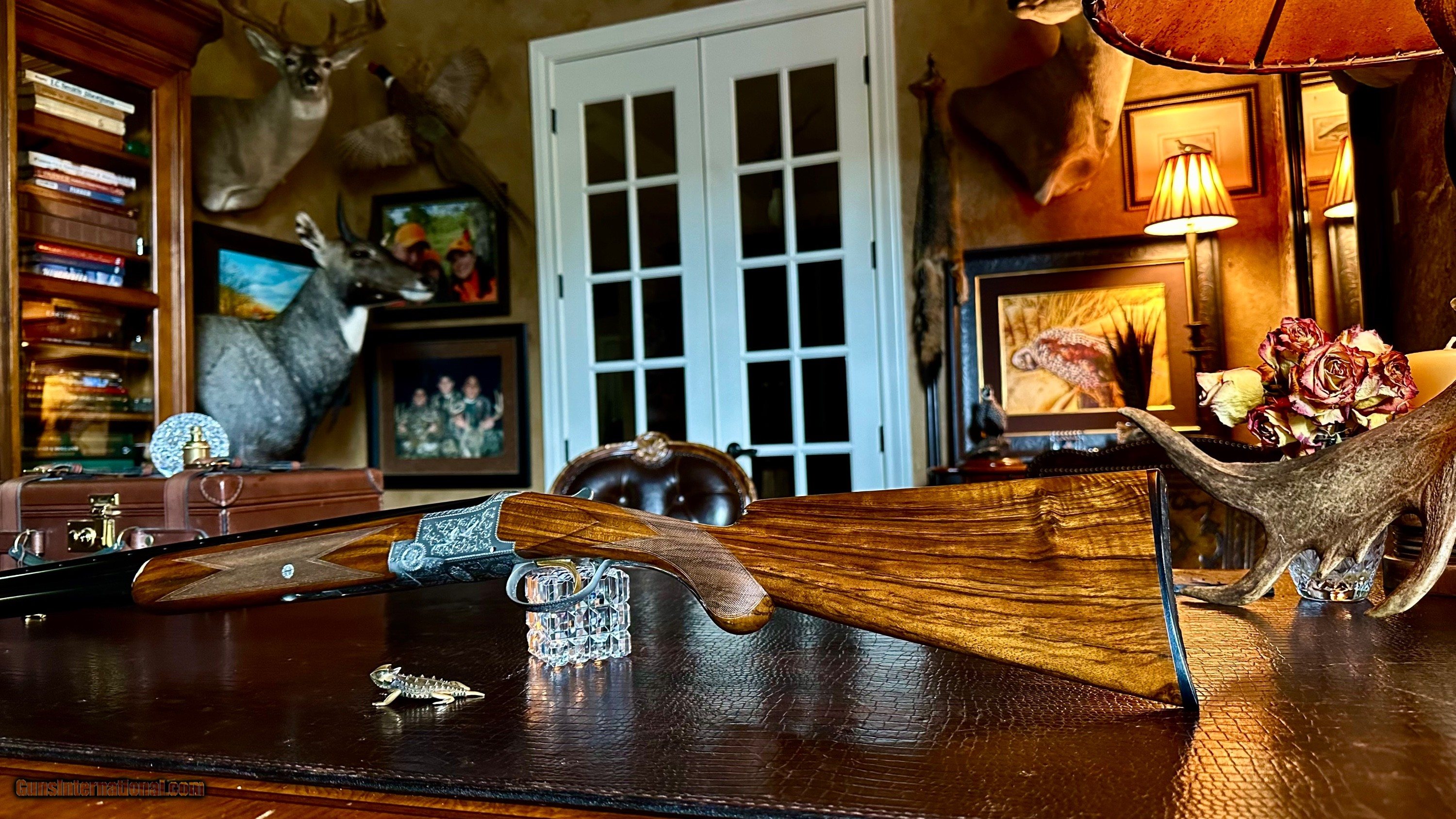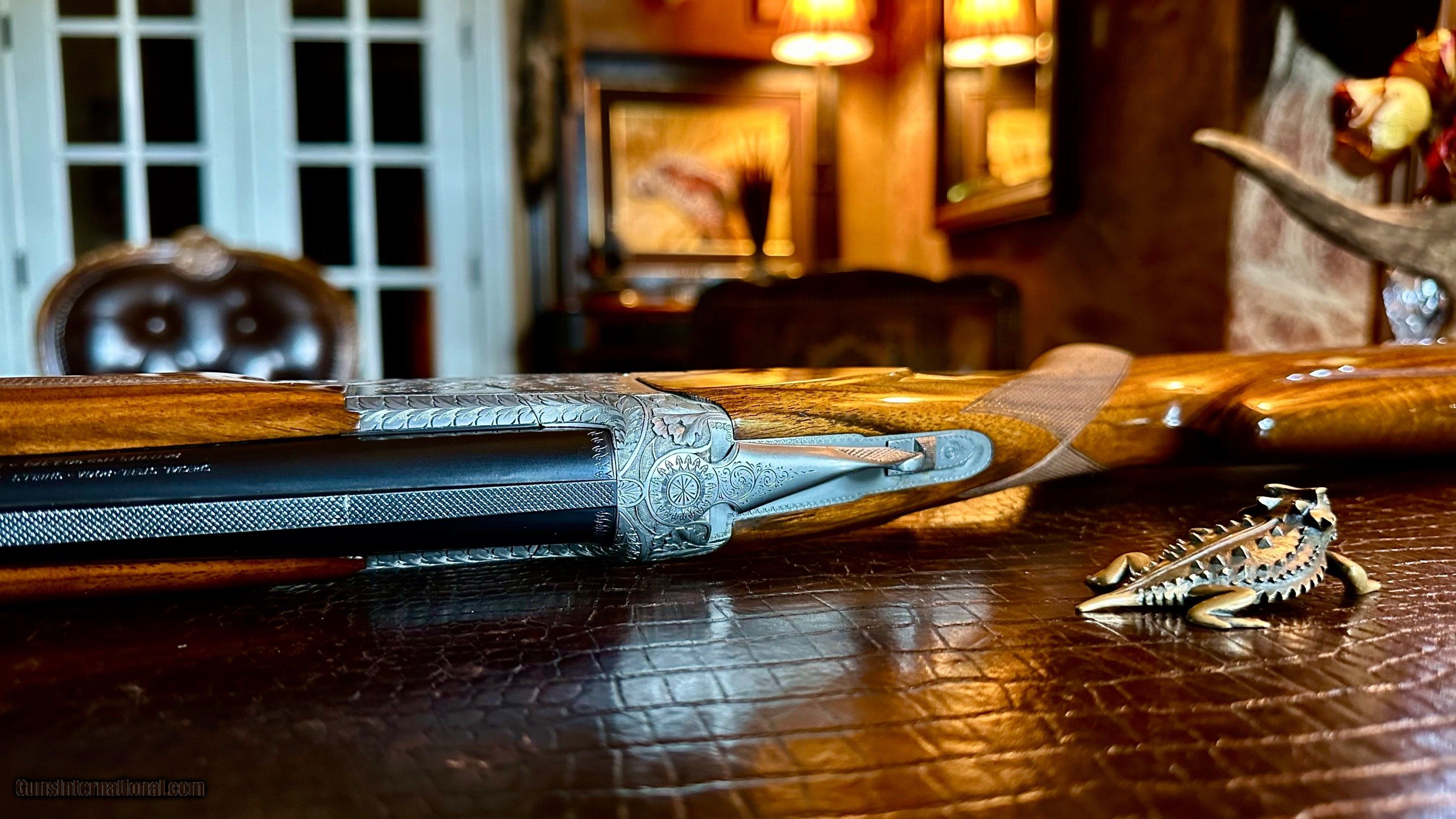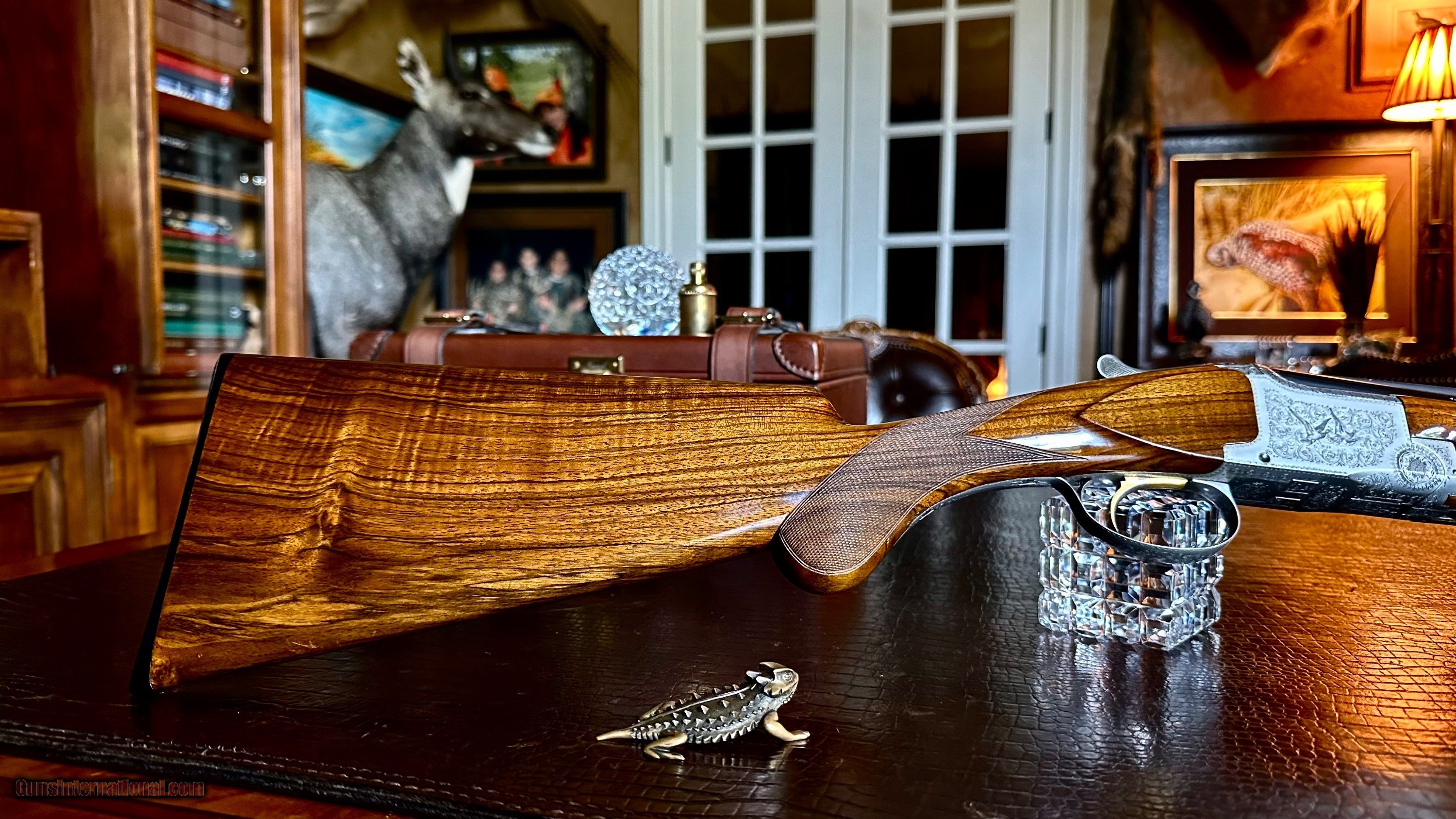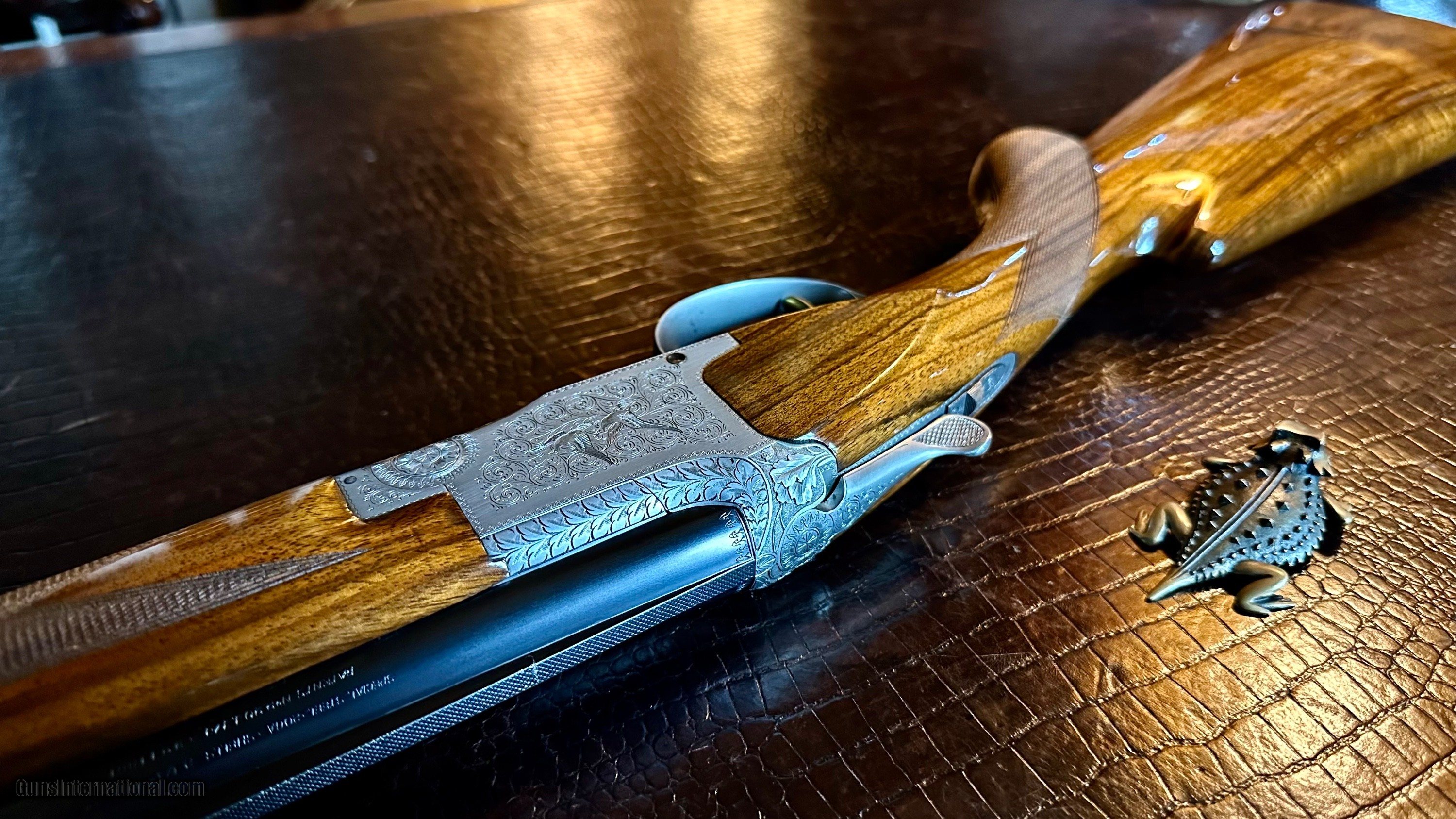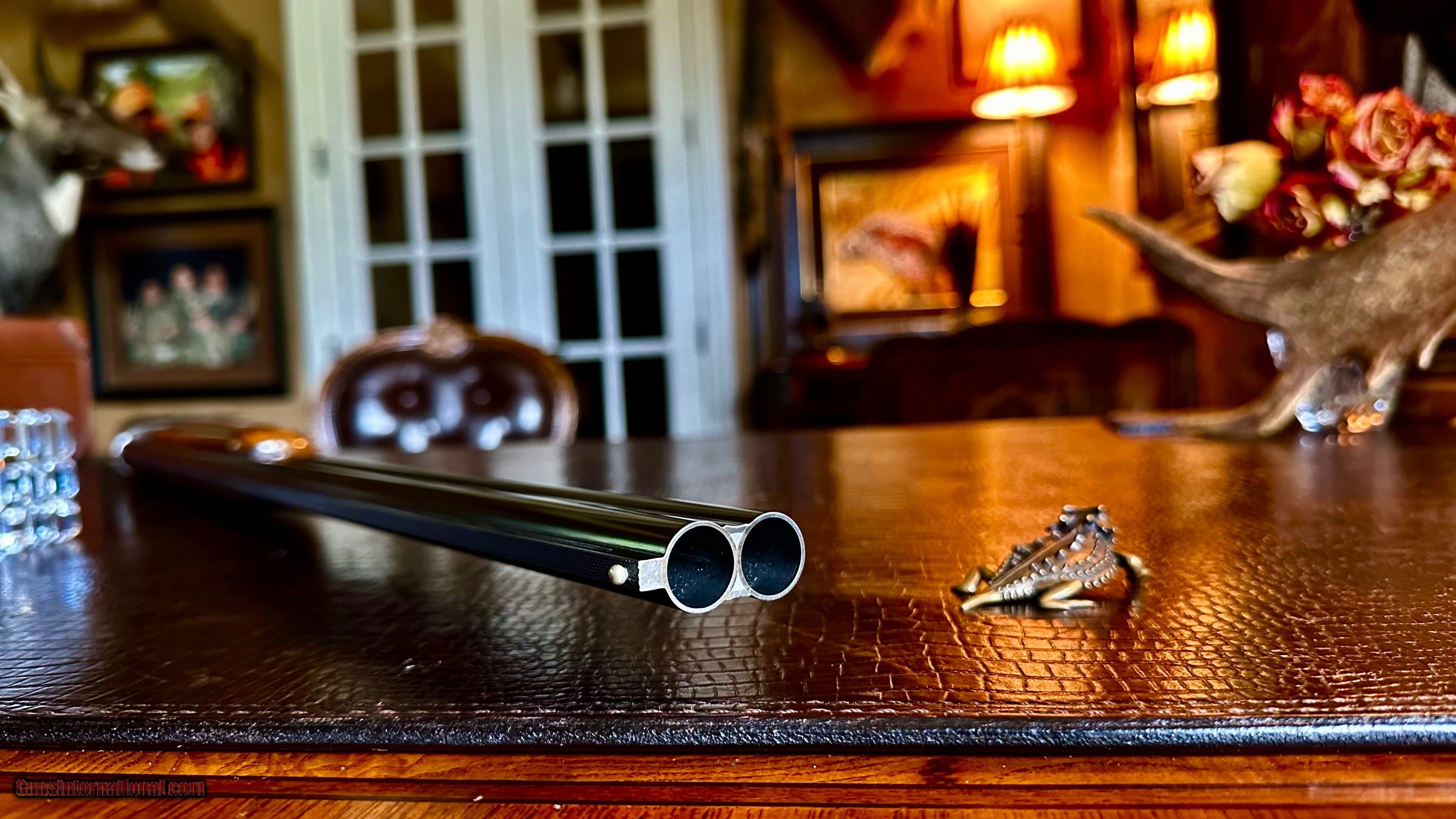 Description: Browning Superposed Pigeon 20ga - ca. 1965 - 26.5” - Sk/Sk - 98% - Tight Action - Finest Walnut Pigeon Grade Conidtion: nice nice nice shotgun - never seen a pigeon grade gun with factory wood this nice - the most collectible era in a superposed - the only wear I see is slide marks on bottom barrel from forend movement and some early stages of gold tarnish on the trigger... might be couple more mall things but not significant to mention. EFFECTIVE APRIL 2024: