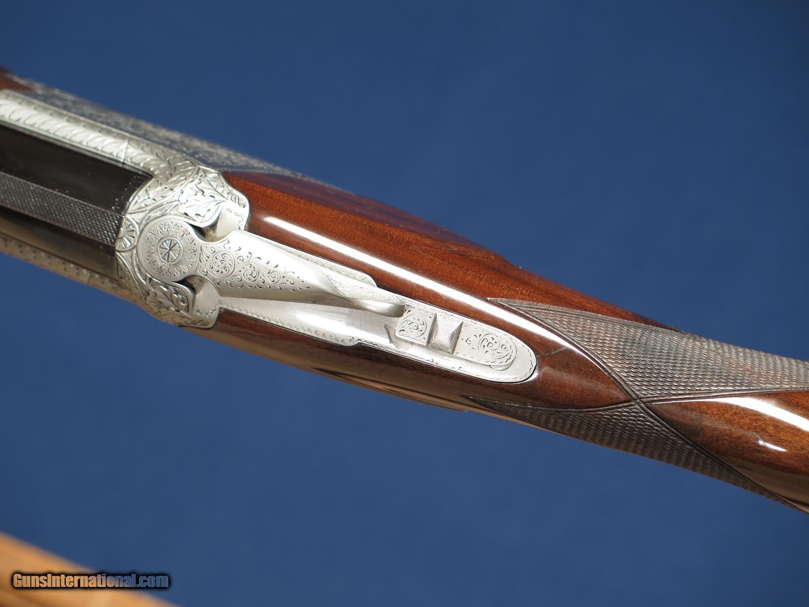 Description: Browning Superposed Pigeon grade 12ga 2 bbl set. SN 67,9XX 1958 mfg. Round knob, long tang. 28 inch IC & Mod + 30 inch Mod & Full. Looks like factory restored. Small varnish crack by top tang. Excellent condition and bores. 14 3/8 LOP butt plate. SOLD |