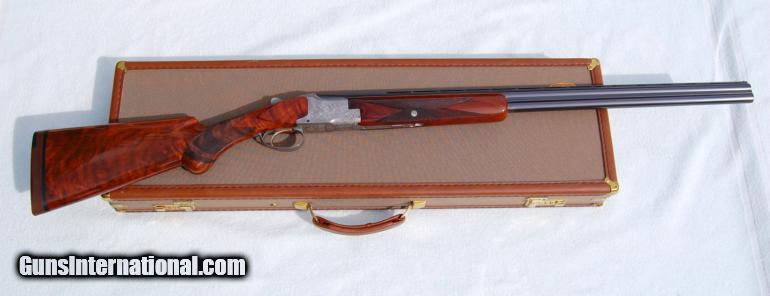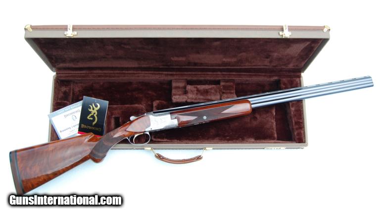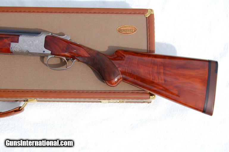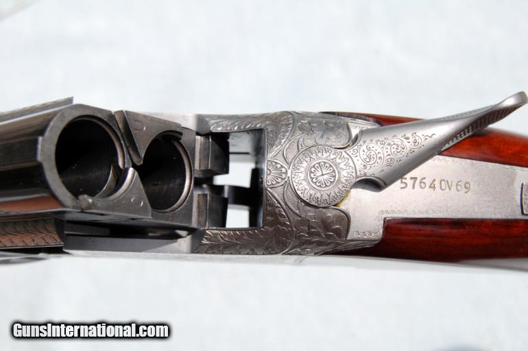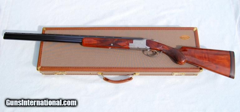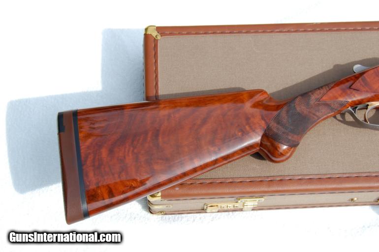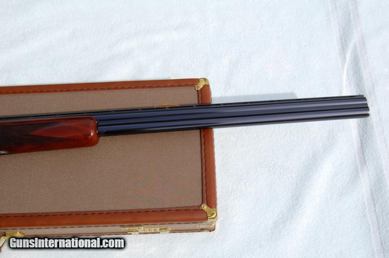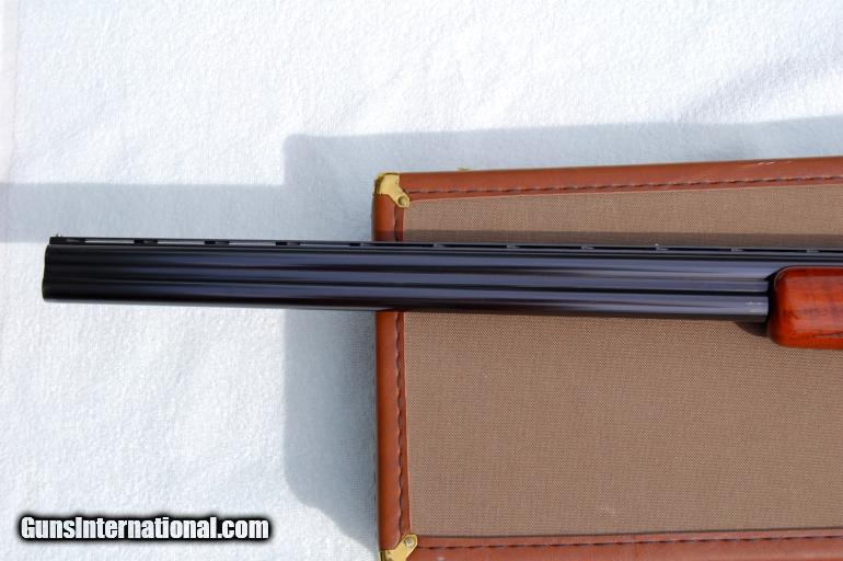 Description: This beautiful condition, gently used Superposed, was made in 1969. It is chambered for 2 ¾ “ or 3” shells, has 28” barrels topped with a ventilated rib, two sight beads and screw in choke tubes. It has a single selective trigger and fully automatic ejectors. The top tang safety/barrel selector is manual, which means it does not go to safe automatically every time the breech is opened. This manual safety feature is preferred by most serious shooters. The nicely figured stock and forearm are carved from a gorgeous reddish hue walnut. Length of pull is 14 3/8”, drop at comb is 1 3/8” and drop at heel is 1 7/8”. Includes the original owner’s manual and comes in a factory Browning hard case. Shipping is $35. SOLD |