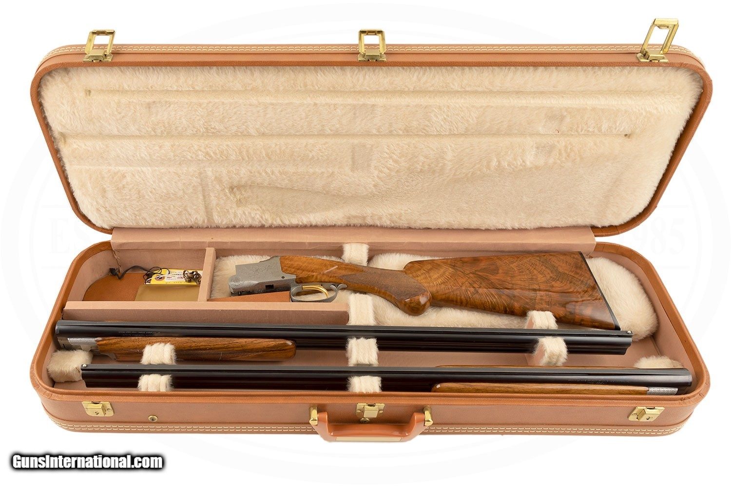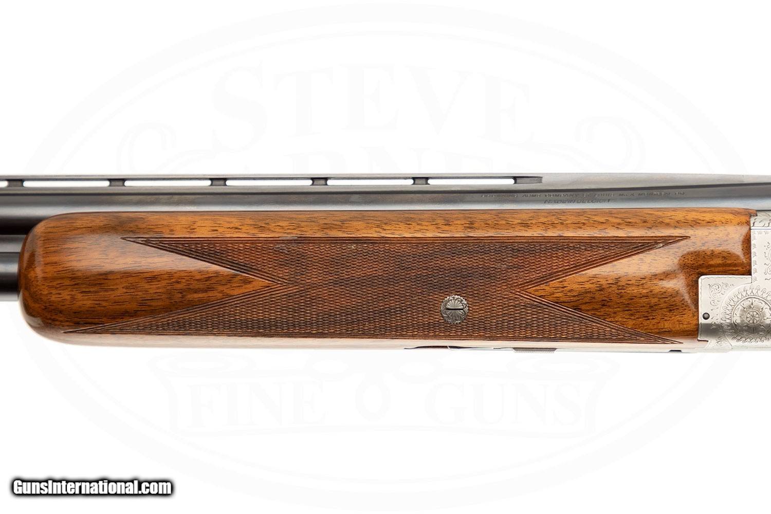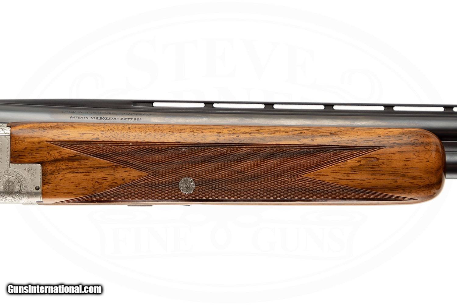 Description: SN# 444XXV7 MADE 1967 SILVER NITRATE TESTED FOR SALT - NO SALT THIS IS SOME OF THE BEST WOOD WE HAVE EVER SEEN ON A SUPERPOSED 28" VENT RIB BARRELS IC AND MOD (.005 AND .015 CONSTRICTIONS) 3" CHAMBERS 28" VENT RIB BARRELS MOD AND FULL (.015 AND .027 CONSTRICTIONS) 3" CHAMBERS SINGLE SELECT TRIGGER EJECTORS FIELD FOREARM RKST PISTOL GRIP BROWNING BUTT PLATE EXCELLENT AS NEW CONDITION FACTORY BOX CASED 6LBS 7 OZ 6LBS 8 OZ 2 1/4" DAH 1 7/16" DAC 14 1/4" LOP SOLD |