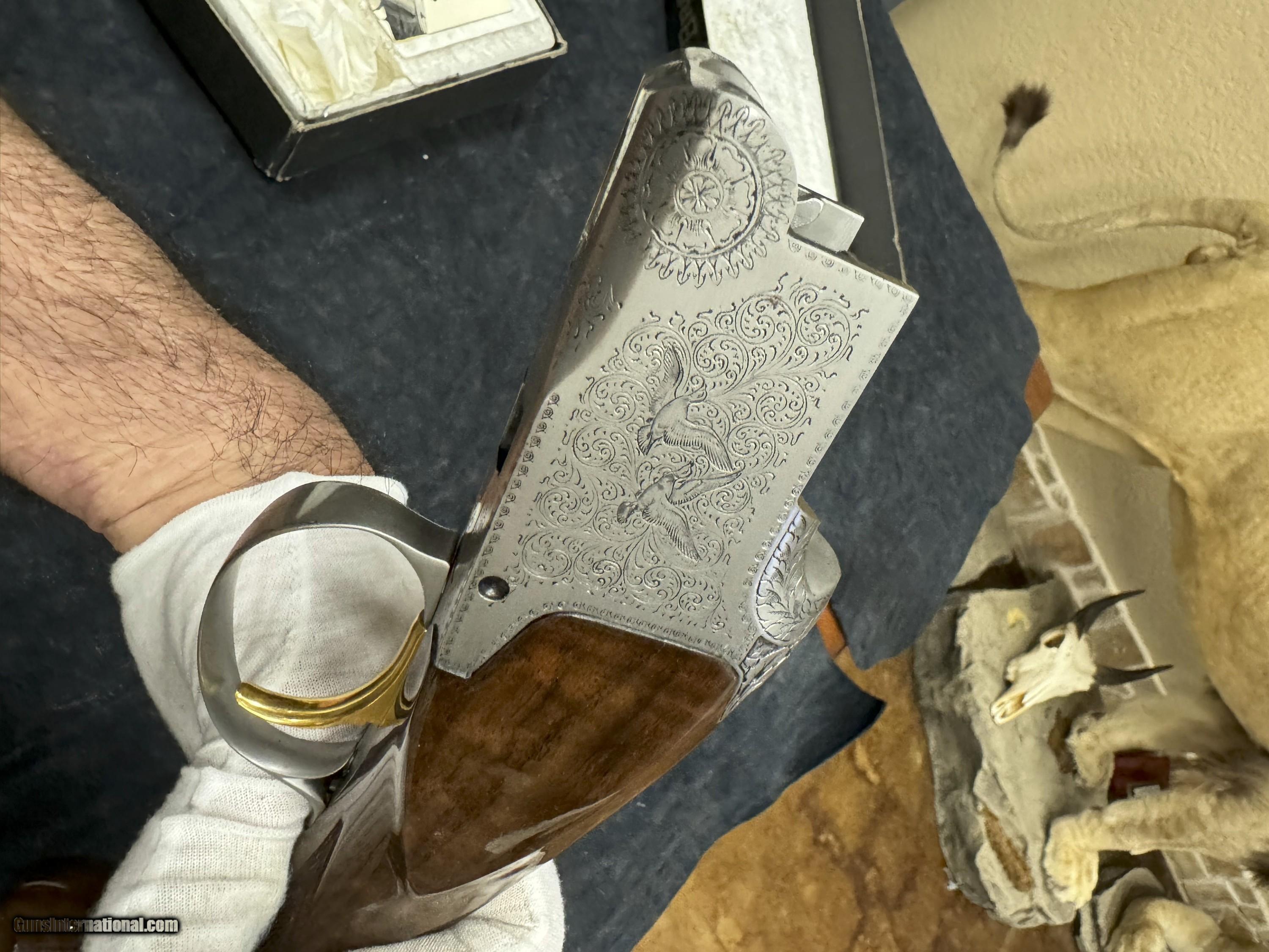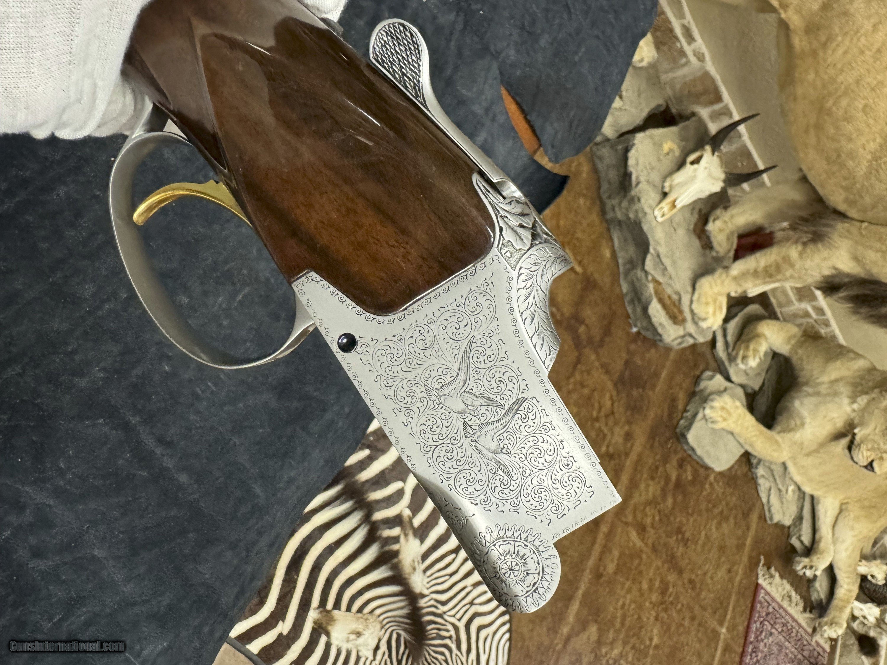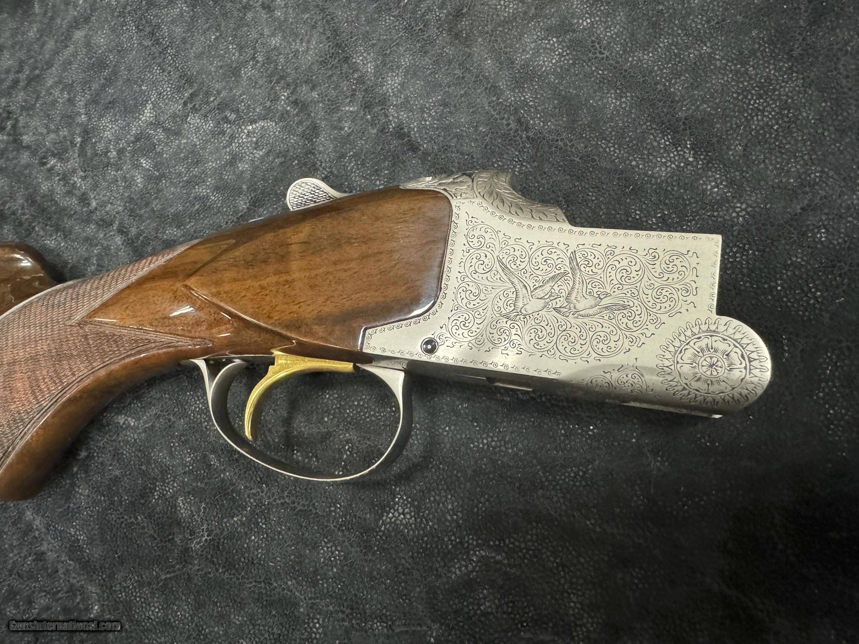 Description: Belgium Browning Superposed Pigeon Grade 28 Gauge, 28 Inch Barrels, Choked: Skeet / Skeet, Vent Rib, Steel Front Bead, Flat Knob, Short Tang, Gold Trigger ( Mechanical ), Browning Plastic Butt Plate, Flat Knob / Short Tang ( Beautiful Wood ) Bores and Chambers are Bright and as new, 14 1/4 LOP, Weight: 6 Lbs 9 Oz, Guns shows very little use and in 98% Condition. Comes with a Box that is period correct but non-matching serial numbers. Serial Number is 1405 F6 ***SALE PENDING**** SOLD Shotgun Gauge: 28 Gauge |