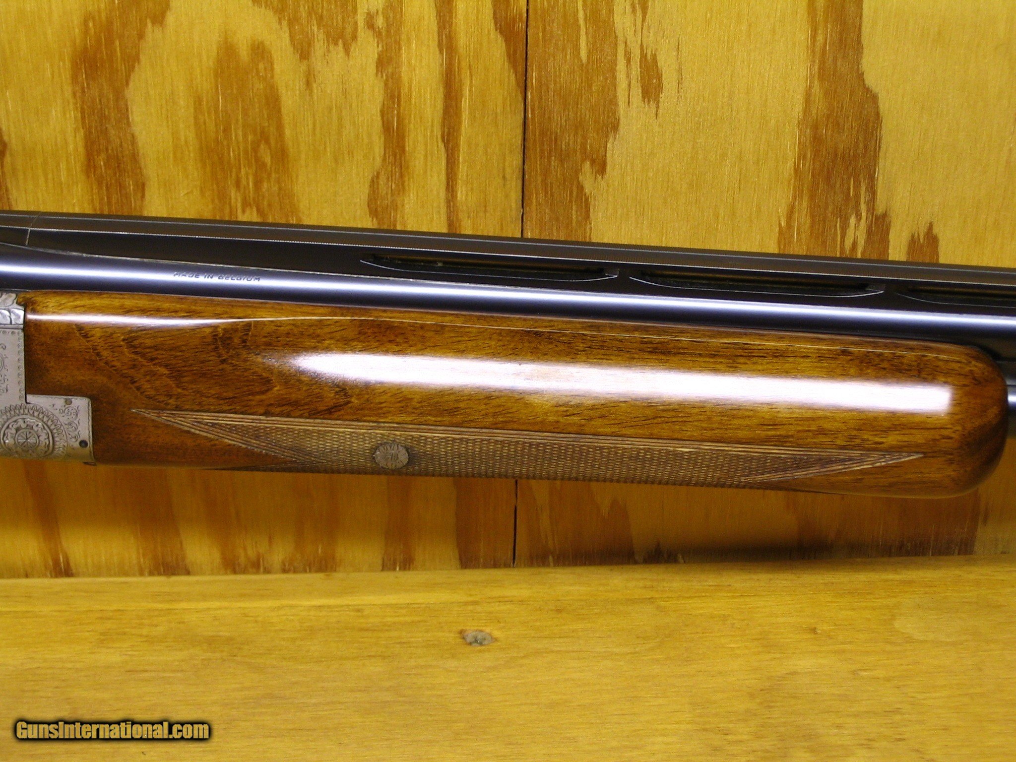 Description: Browning Superposed Pigeon Grade Trap - 12 ga. 2-3/4" chambers with 32" Broadway rib barrels choked full and full - Long tang flat knob stock with Browning trap pad 14-1/2" length of pull - Stock and semi-beavertail style fore-end of nicely figured American Walnut - Receiver, fore-end iron and trigger guard are original factory engraved in the Pigeon pattern. - 1961 Belgium mfg., the 1st year of the Broadway Rib Superposed. Serial # 92XXX This Superposed Pigeon Grade Broadway Trap is in close to new condition. No dents, dings or damage to the stock or fore-end. The engraved receiver, fore-end iron and trigger guard are 99% grey finish. The barrel blue is at 98%. The opening lever is over to the far right just as a new gun would be. The pictures show accurate details and condition. Compare price with a Grade I Superposed 20 ga., a high grade Citori or high grade BT 99. Given reasonable care, this Belgium Superposed Pigeon will appreciate and not depreciate in value. Payment of $3485.00 plus the actual shipping and insurance in the form of a Cashier's Check or Postal Money Order along with a signed current FFL copy is required. Upon receipt of payment, the Superposed will be properly packed, fully insured and promptly shipped to the FFL. SOLD |