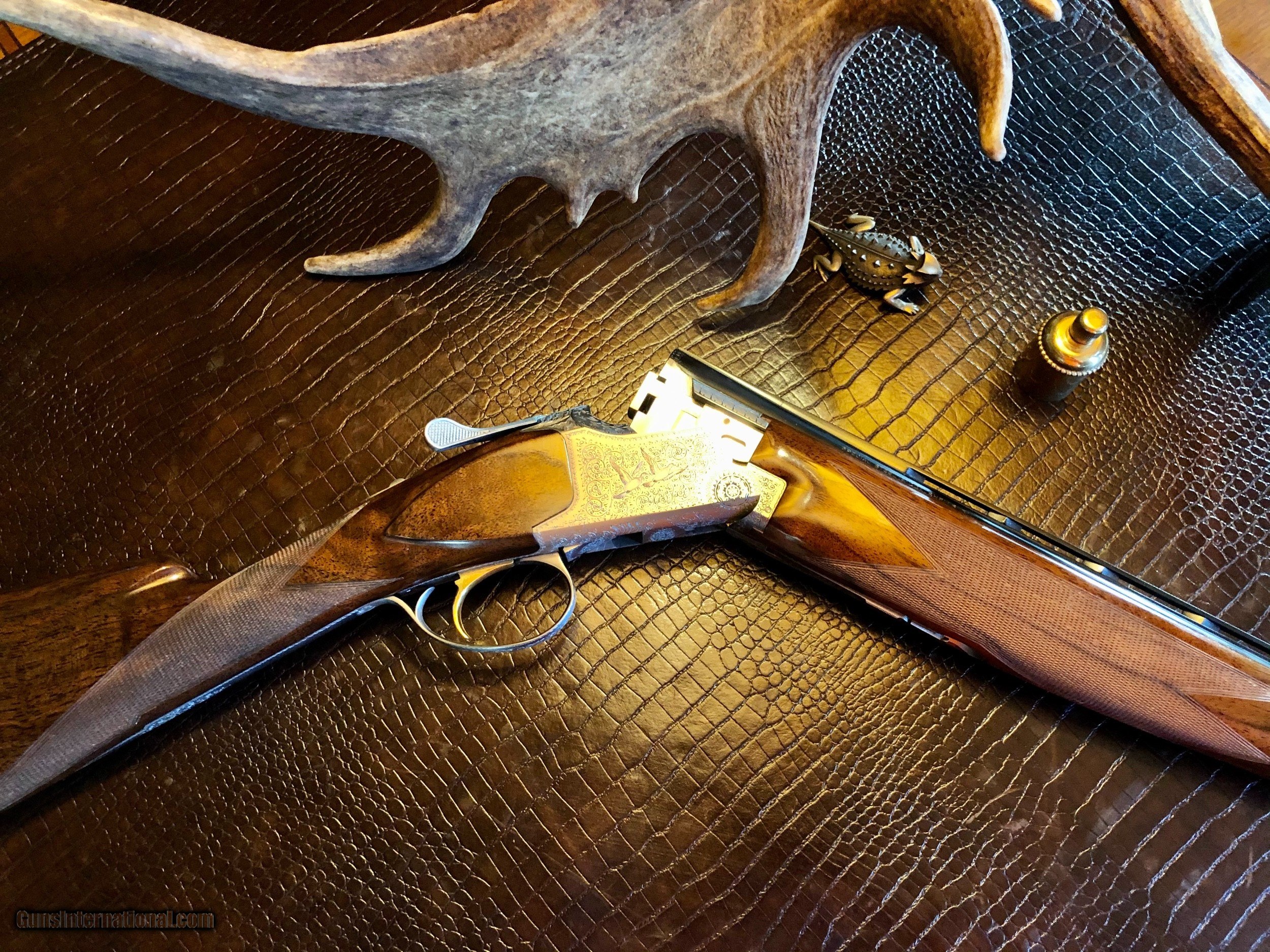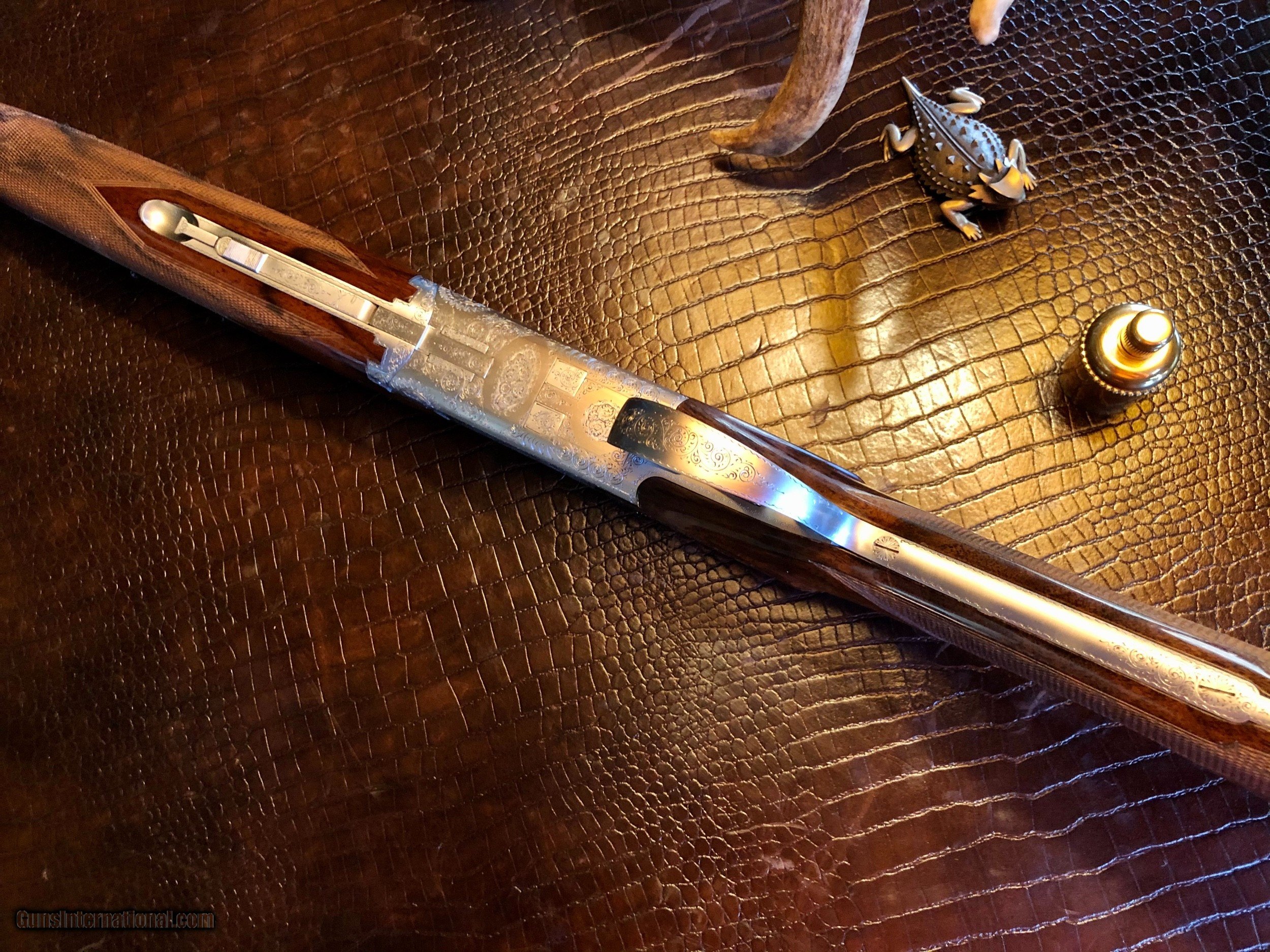 Description: Browning Superposed Superlight Pigeon - 410ga - 28” - M/F - Hartmann Airways Case - Gun and Case Like New - Rare Shotgun - these guns were made in 1983 for a dealer that ordered them in all pertinent grades with 28" barrels - they are special guns with the rarest of configuration. Meticulously Engrave by J.P. Baimy - beautiful. 14 1/8 x 1 3/8 x 2 1/4 - 6.4 lbs - SN: 542J83 The Quillen-Worfe Private Gun Collection - Guns International page – please read prior to making a purchase:
