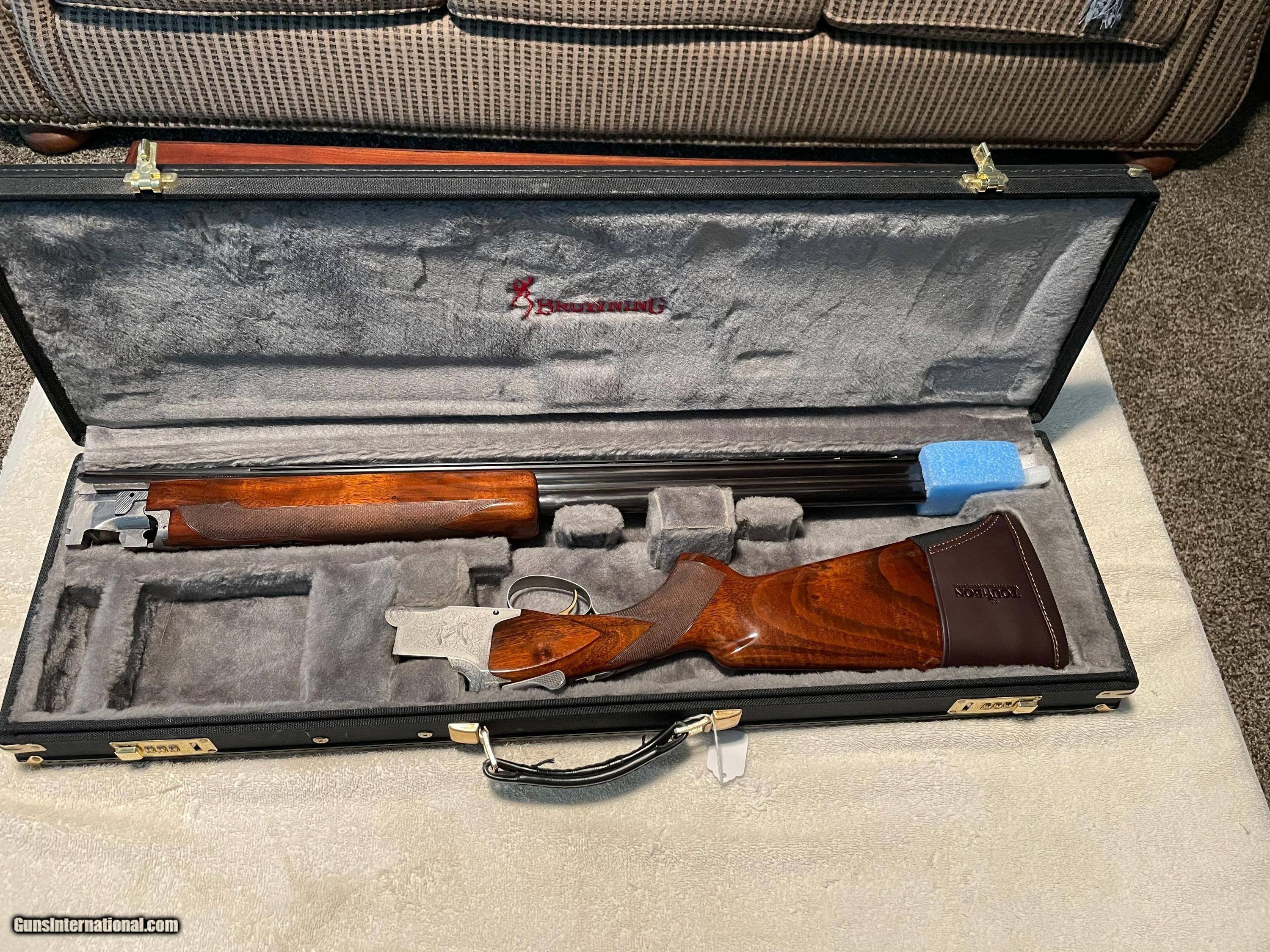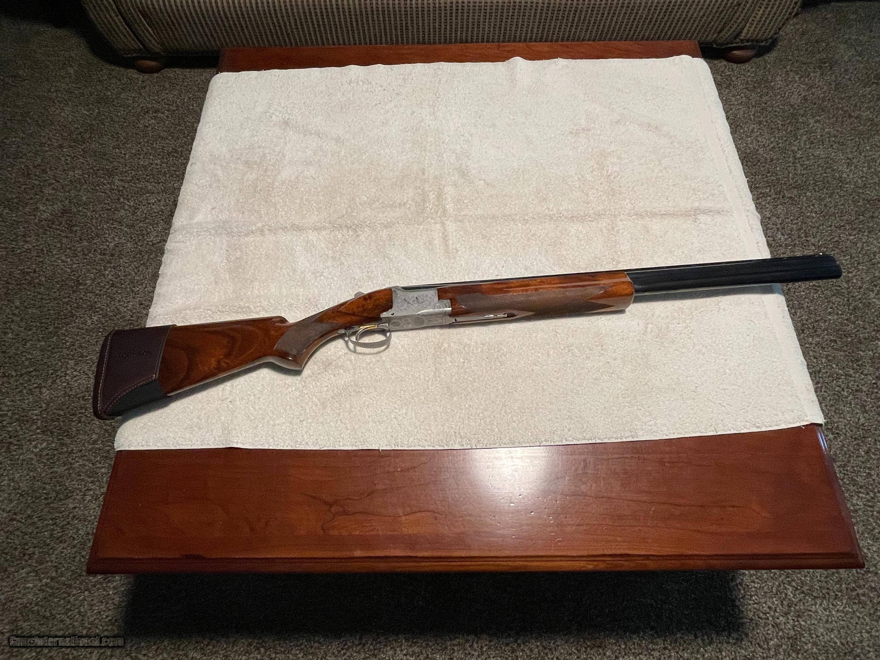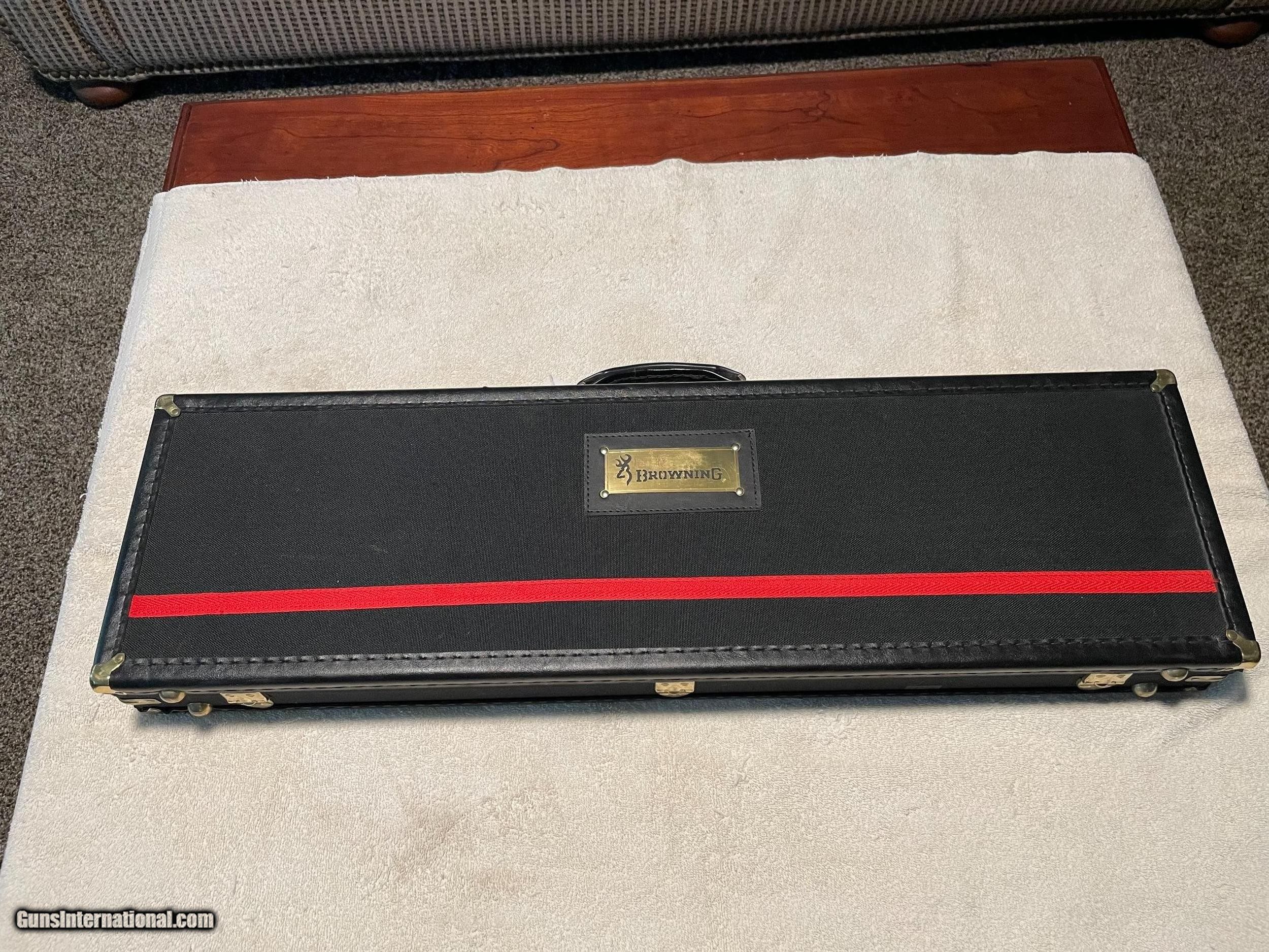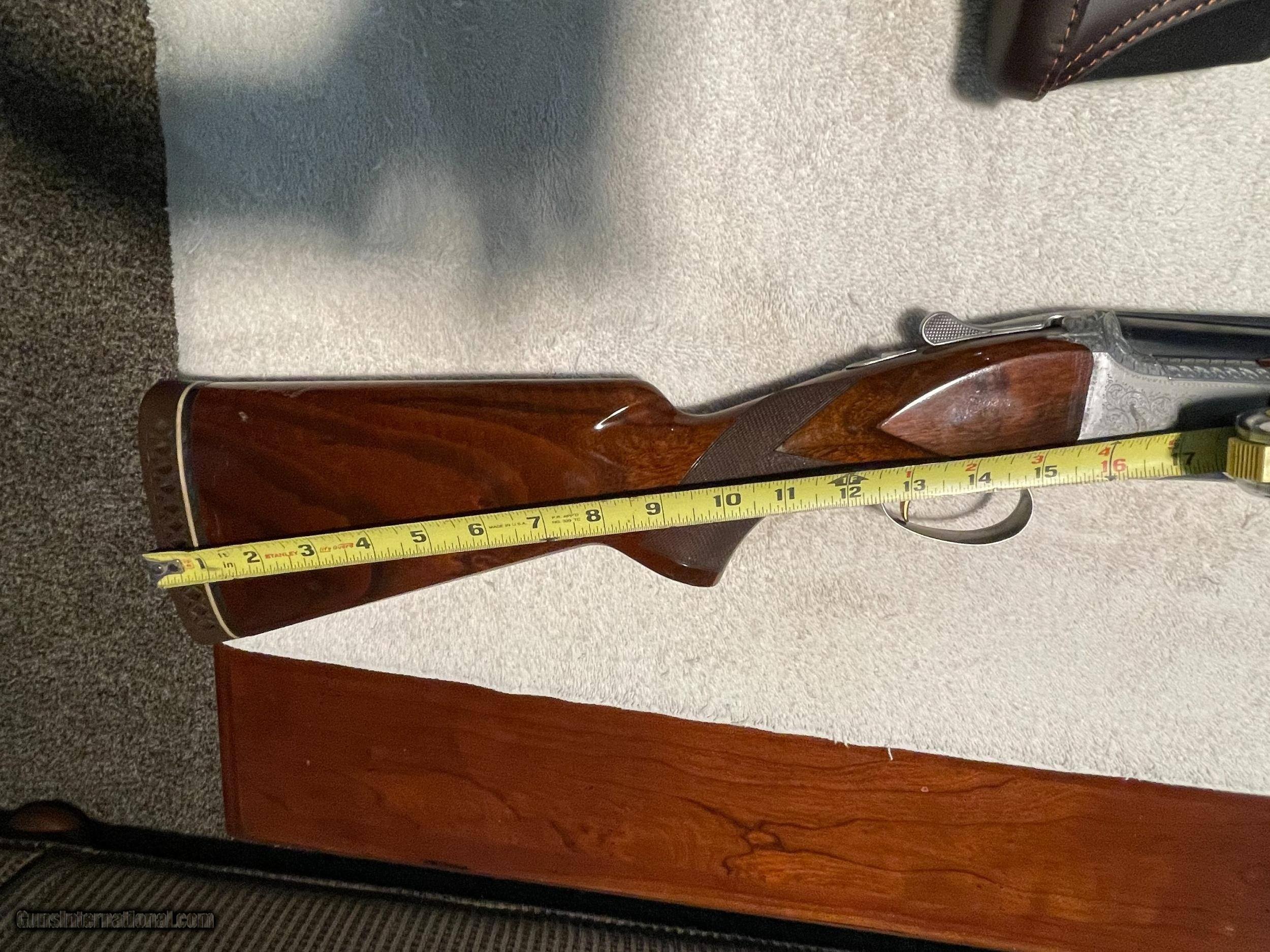 Description: Browning Superposed Pigeon Skeet, Belgium (1969) 12ga., 26 1/2" SK/SK barrels, FKST. Lightly used; action remains factory stiff. Approx. 13 1/4" LOP to Browning pad, 14 1/4" LOP to slip on pad. Minor handling marks with 2 small scratch in fore end groove. No rust or pitting. Beautiful gun in Browning case. Price includes shipping to your FFL dealer. SOLD Shotgun Gauge: 12 Gauge |