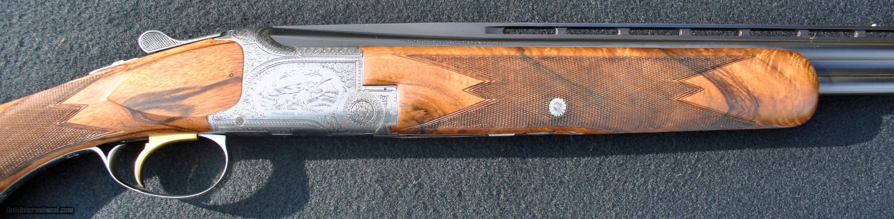 Description: Belgium Browning Pointer Grade .410 skeet & skeet, 26 1/2" barrels, French marble cake walnut, round knob, long tang, single trigger, as new $12,500. SOLD Curio/Relic: Yes |